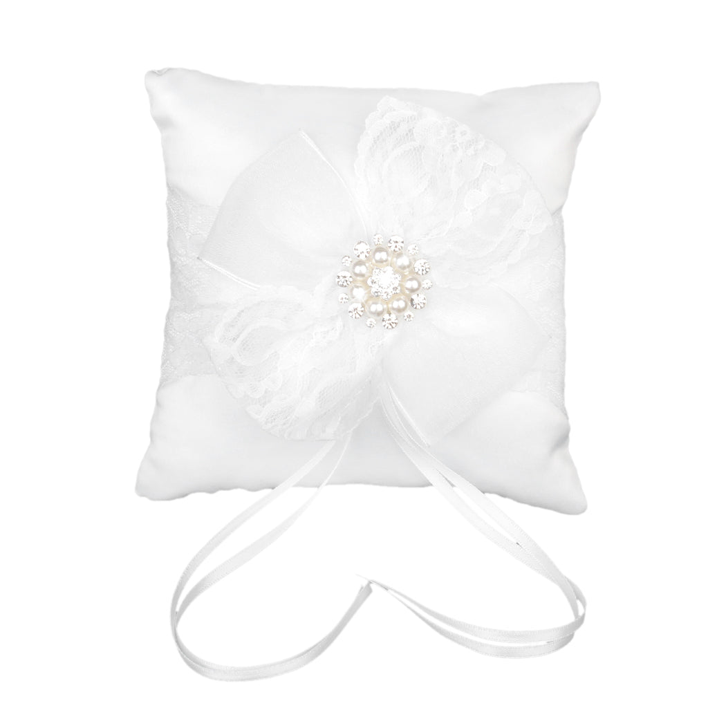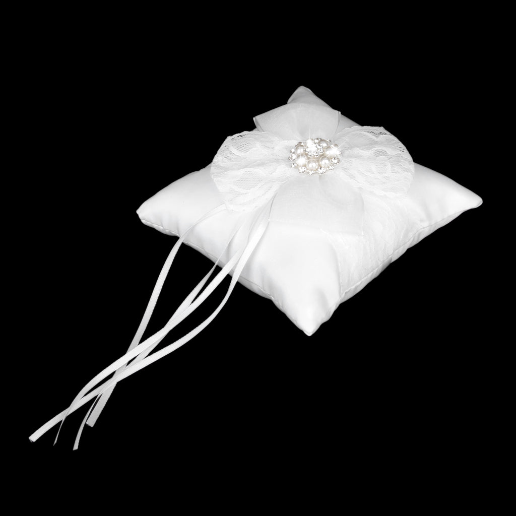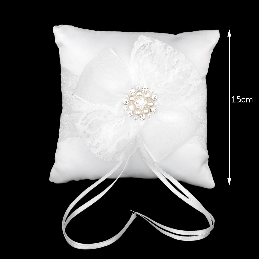Lovely White Bow Flower Diamante Wedding Ring Pillow Cushion 15cmx15cm