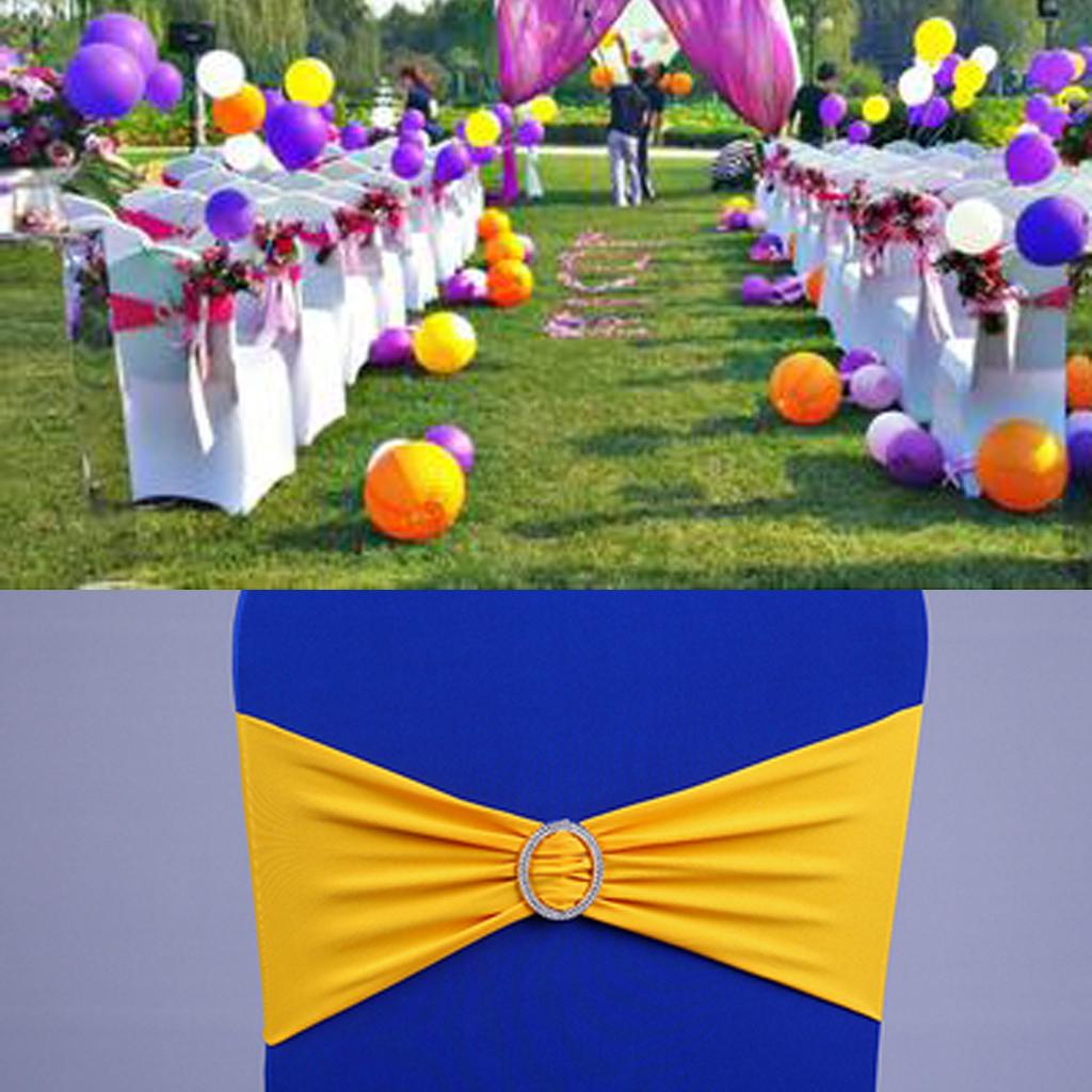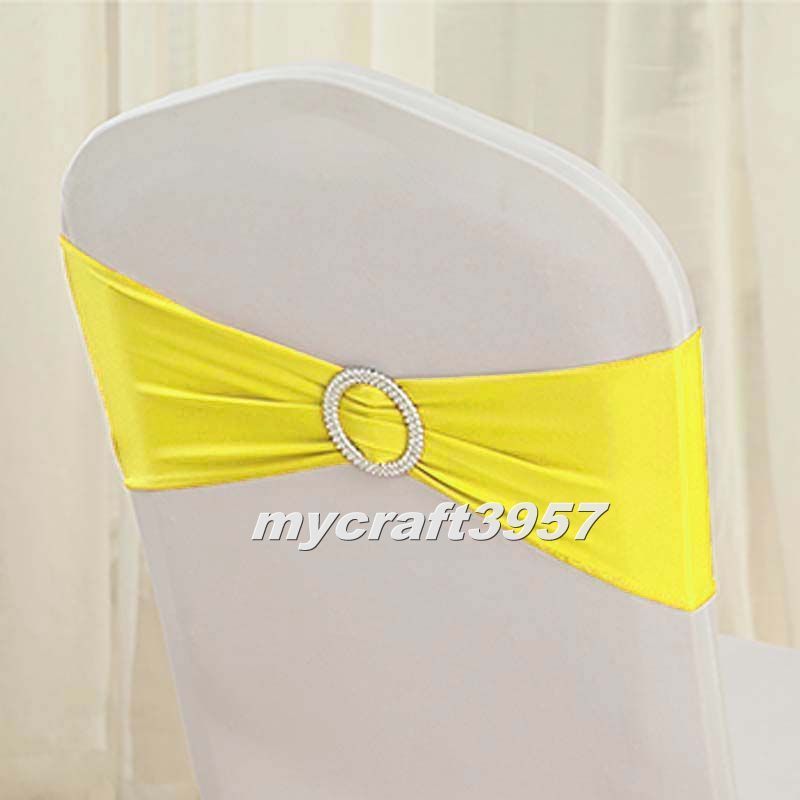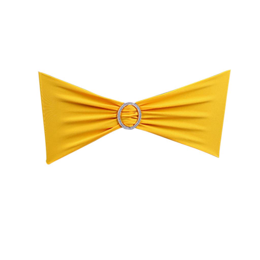 Lycra Spandex Chair Back Wedding Party Sash Band with Buckle Decor Yellow