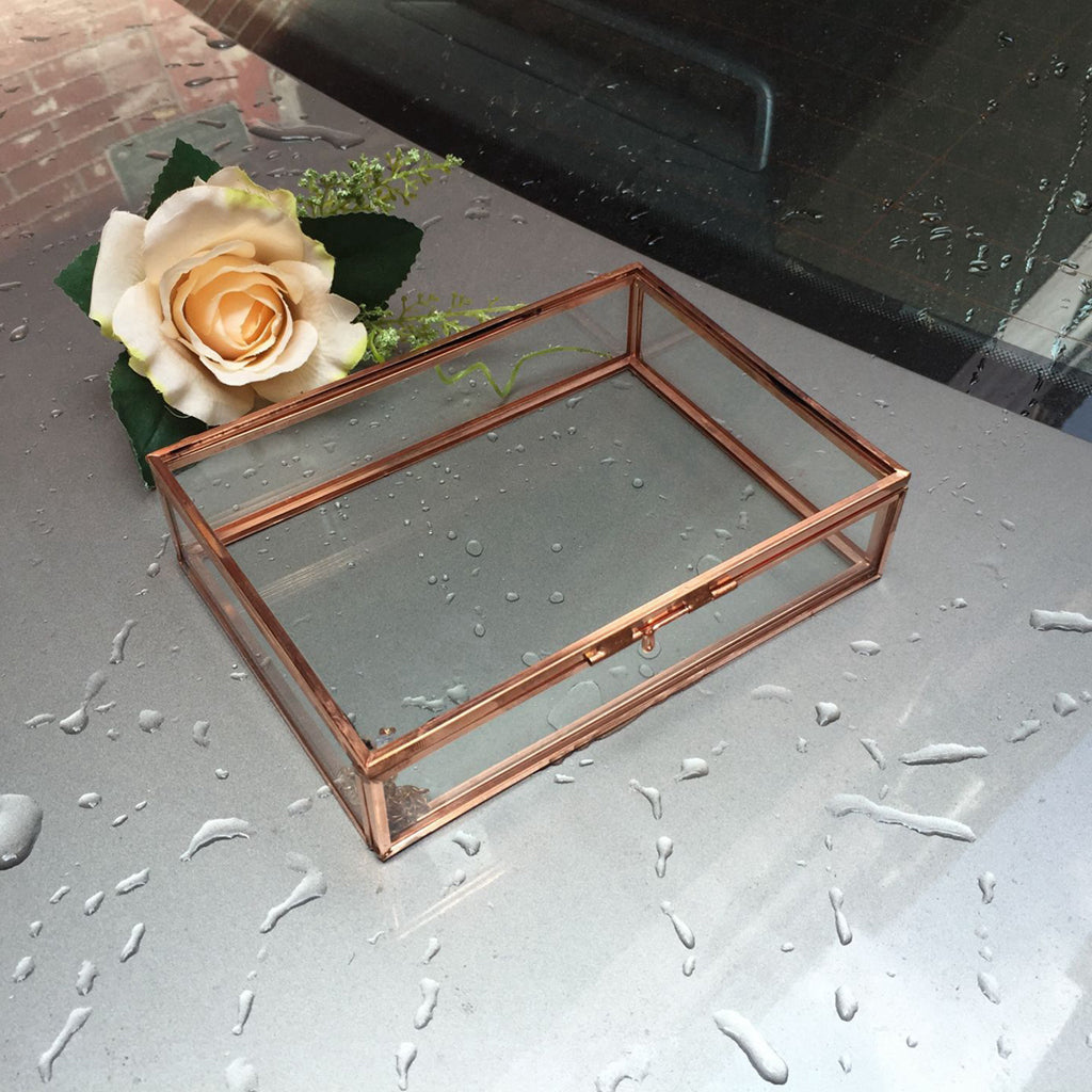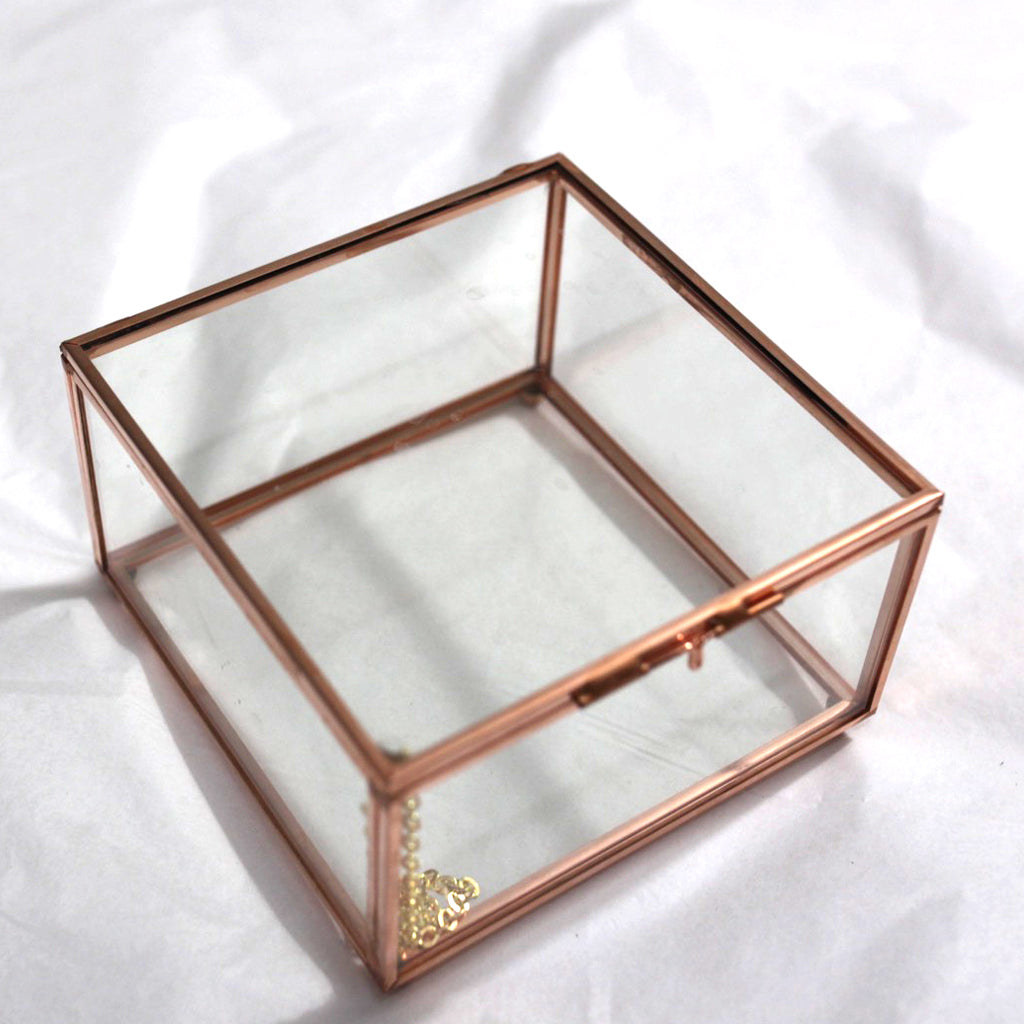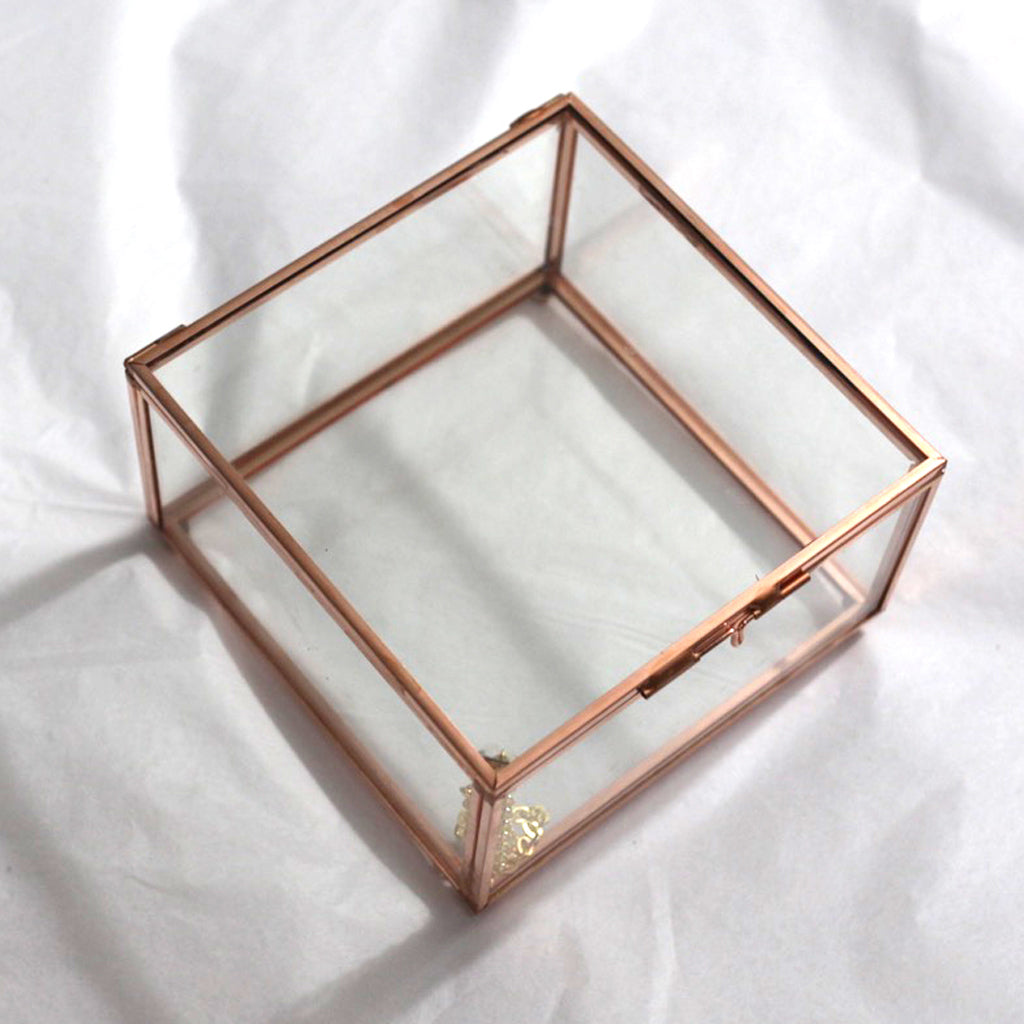 Classic glass geometric terrarium box with a sturdy metal frame and flat corner.