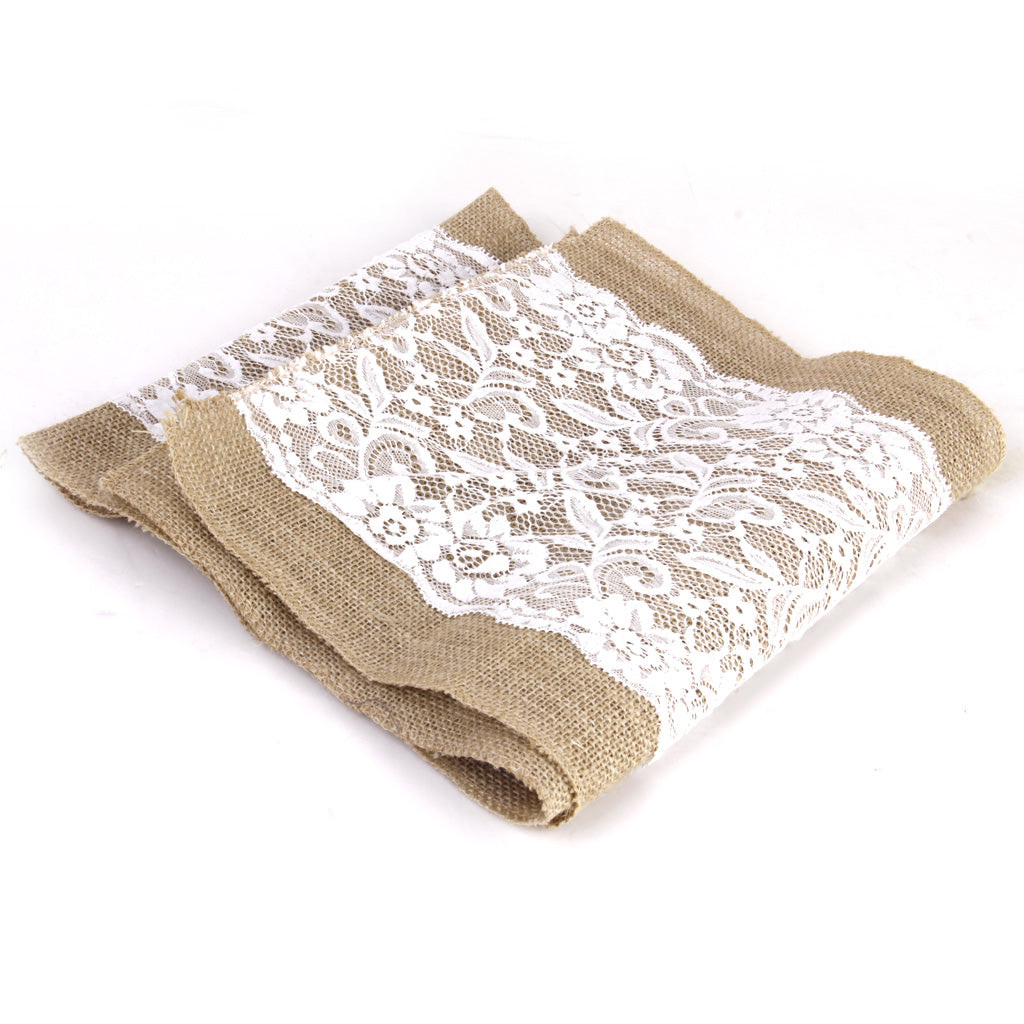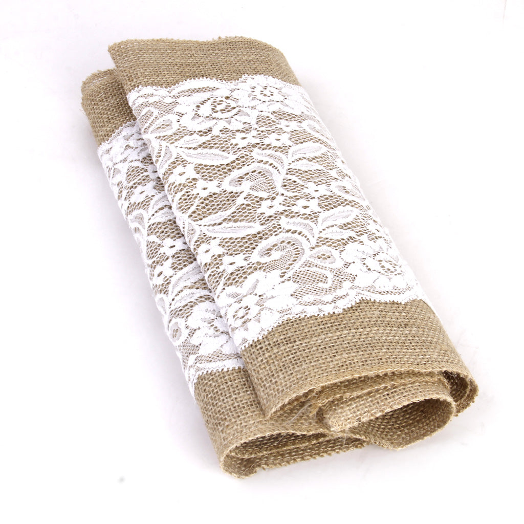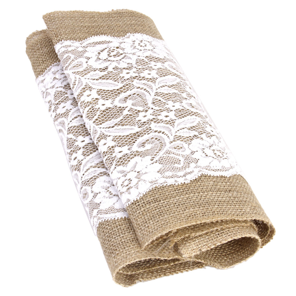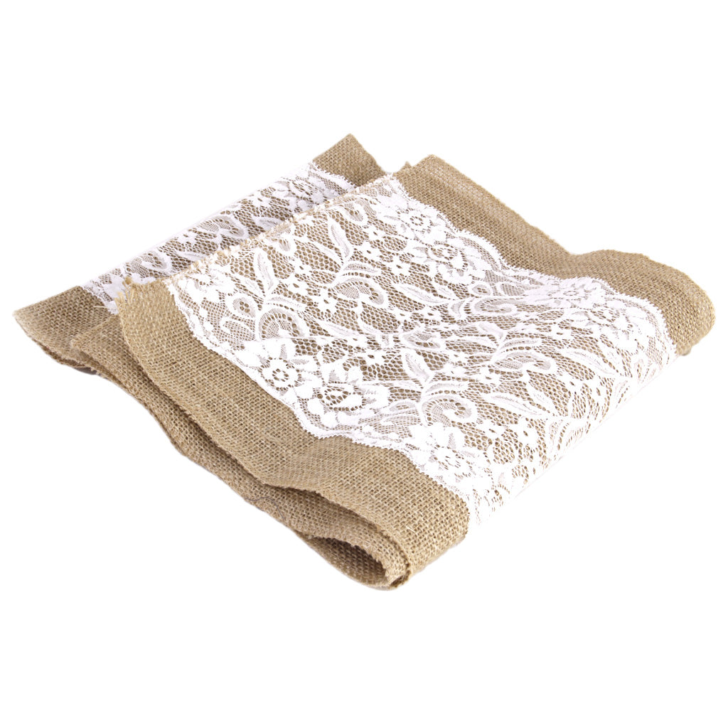 Natural Jute Burlap Lace Tablecloth Wedding Decor Rectangular 108cm