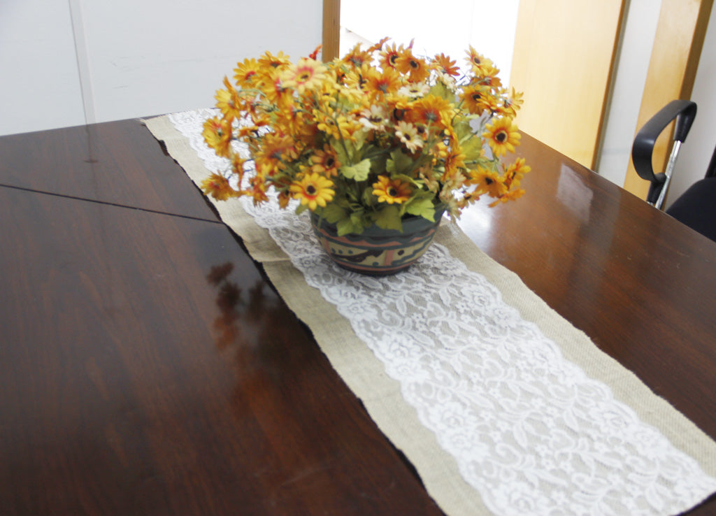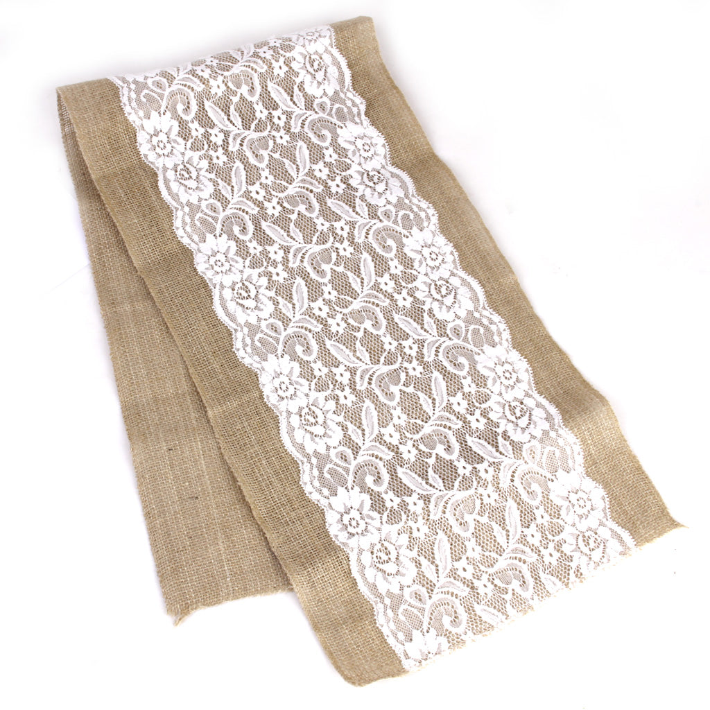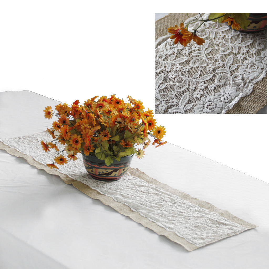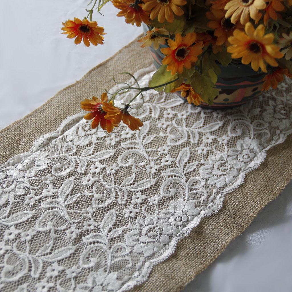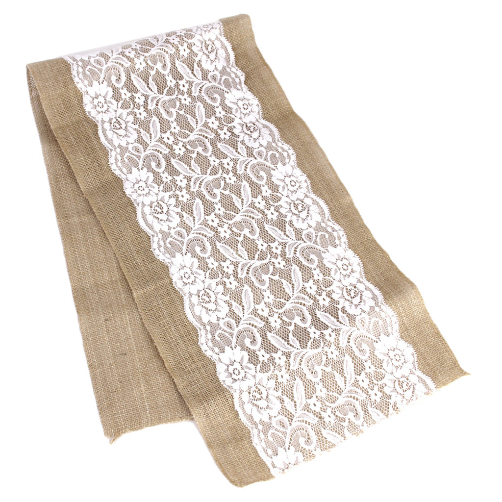 Natural Jute Burlap Lace Tablecloth Wedding Decor Rectangular 108cm