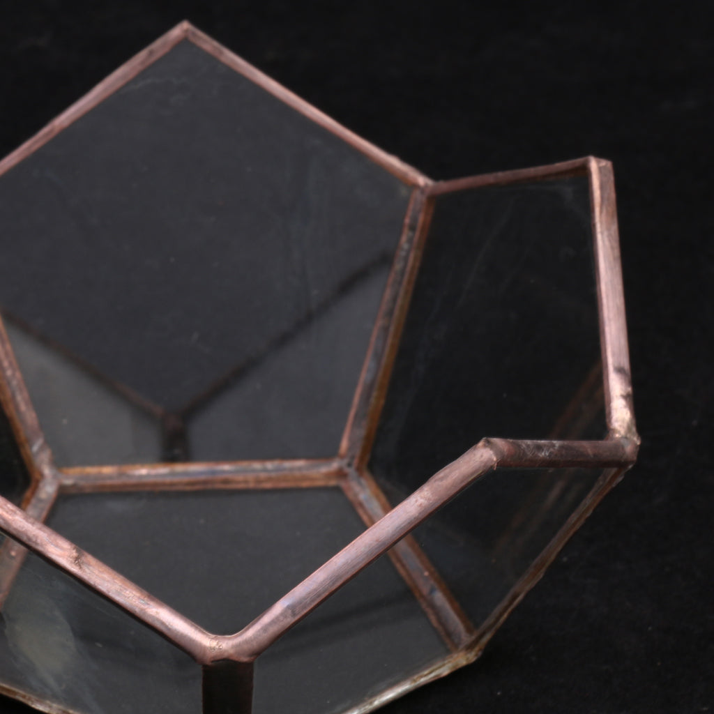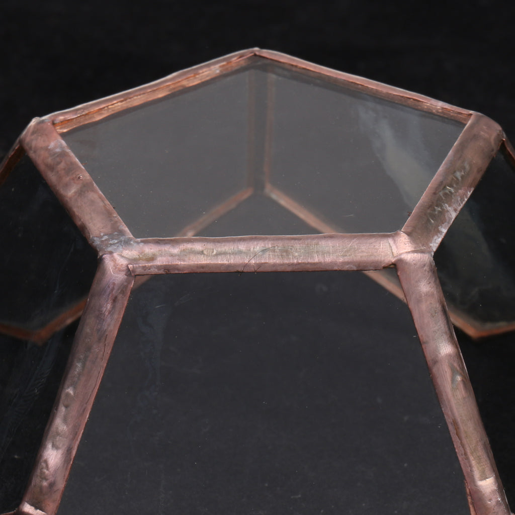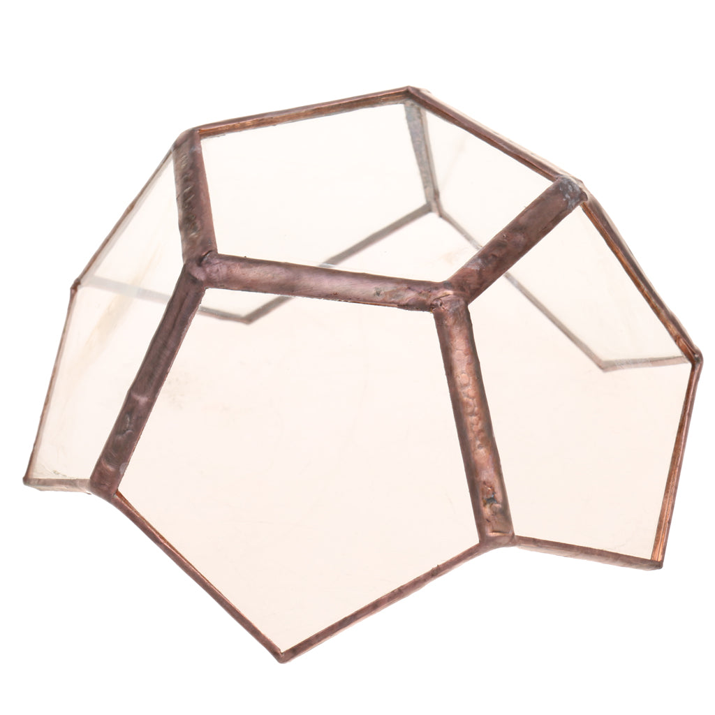 Classic glass geometric terrarium box with a sturdy metal frame and flat corner