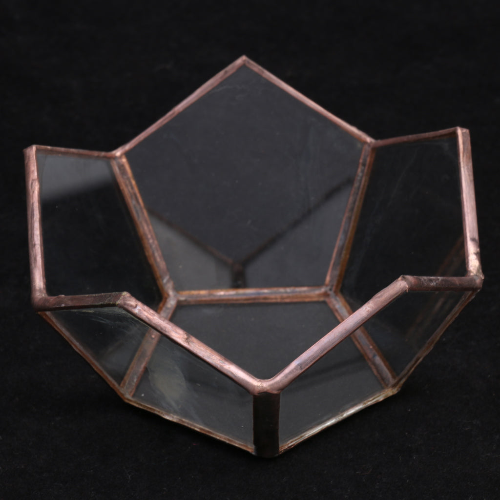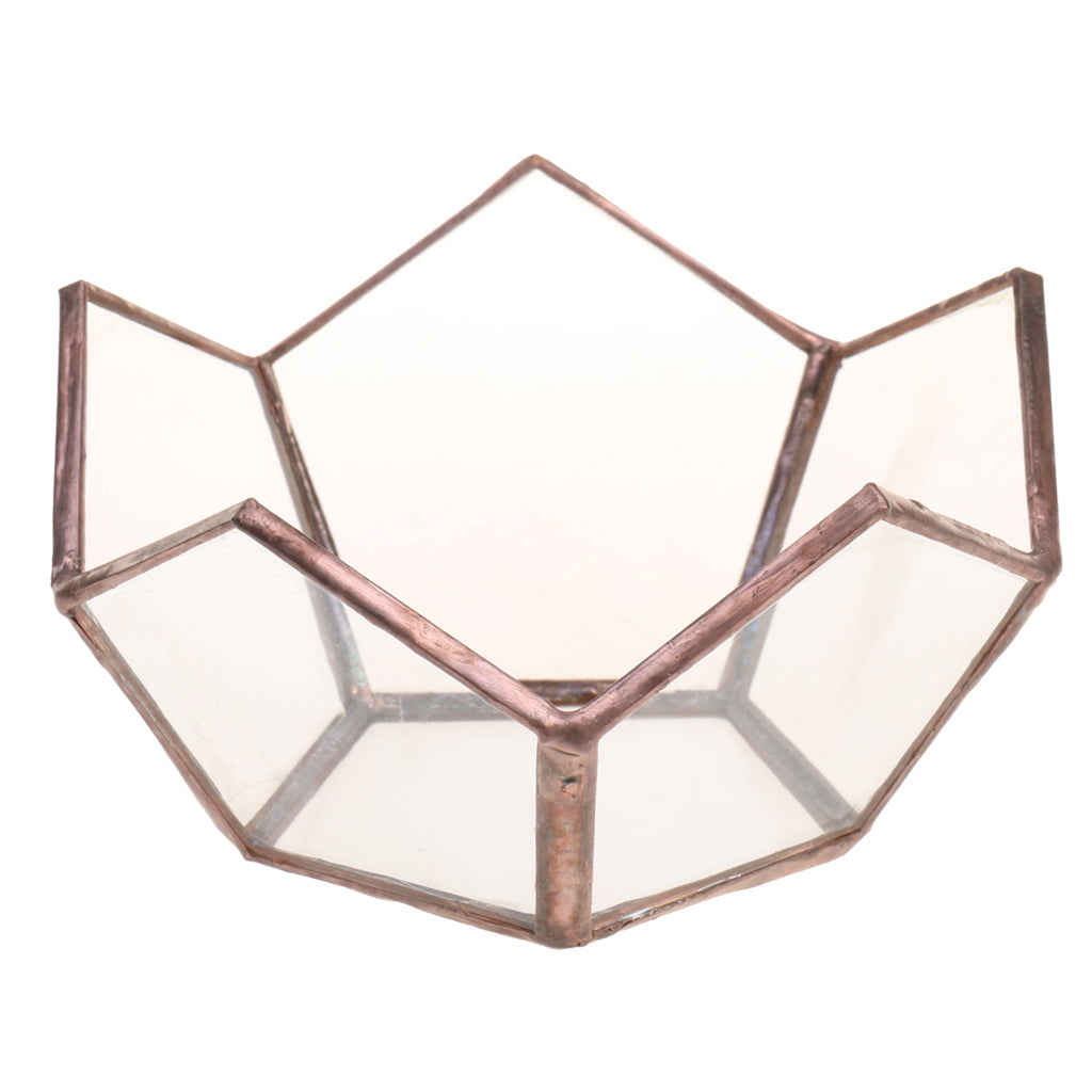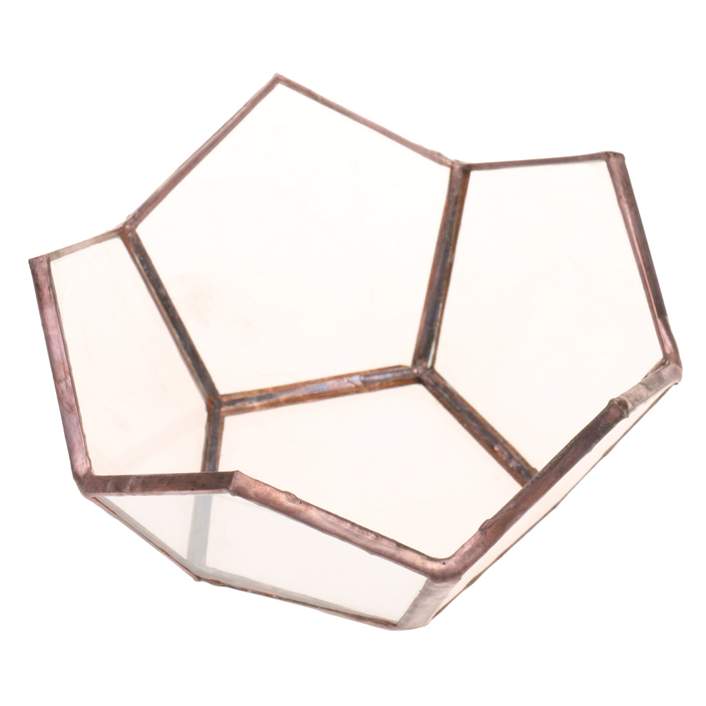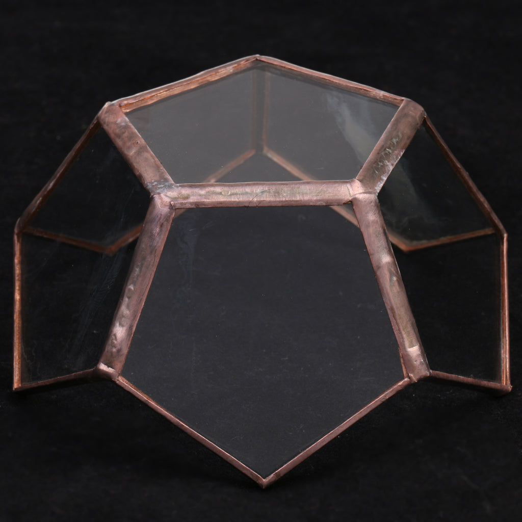 Classic glass geometric terrarium box with a sturdy metal frame and flat corner