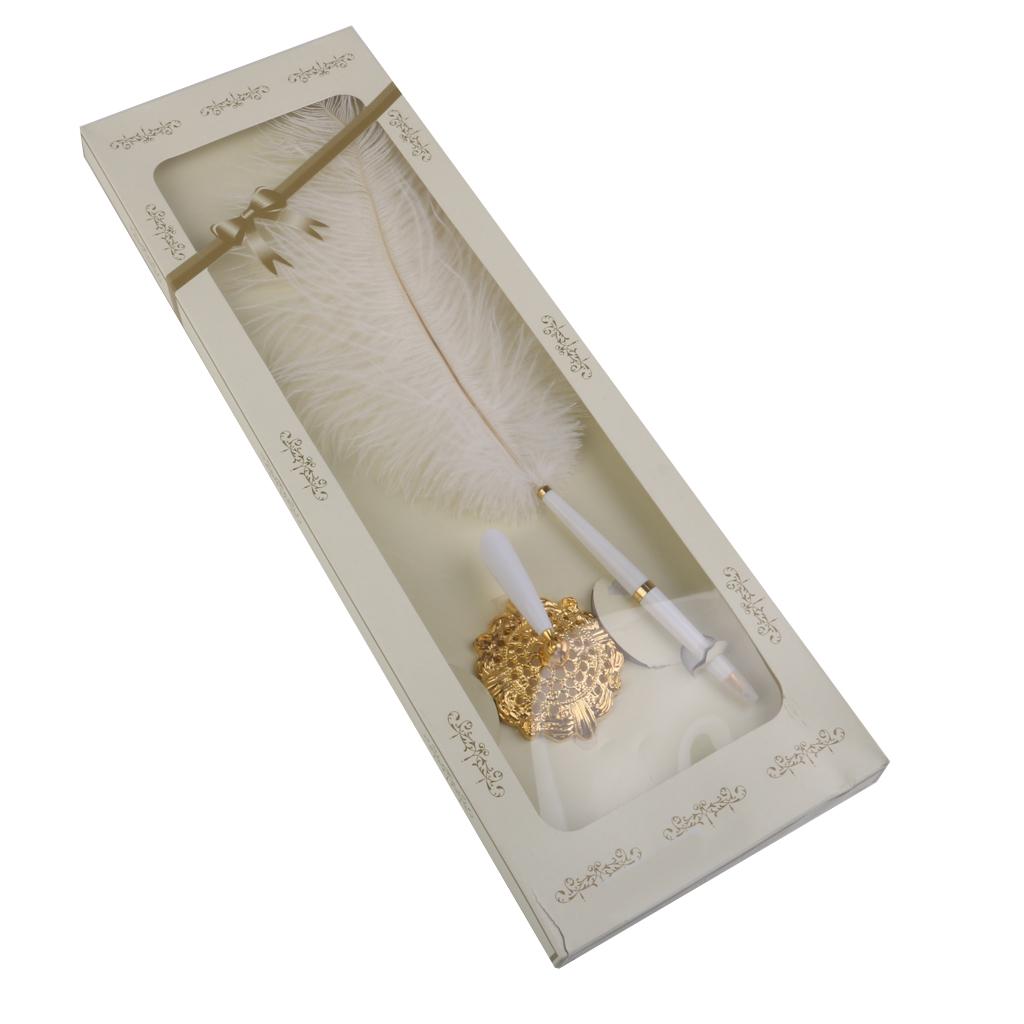 Ostrich Feather Quill Signing Pen with Metal Holder Wedding Pen Set S White