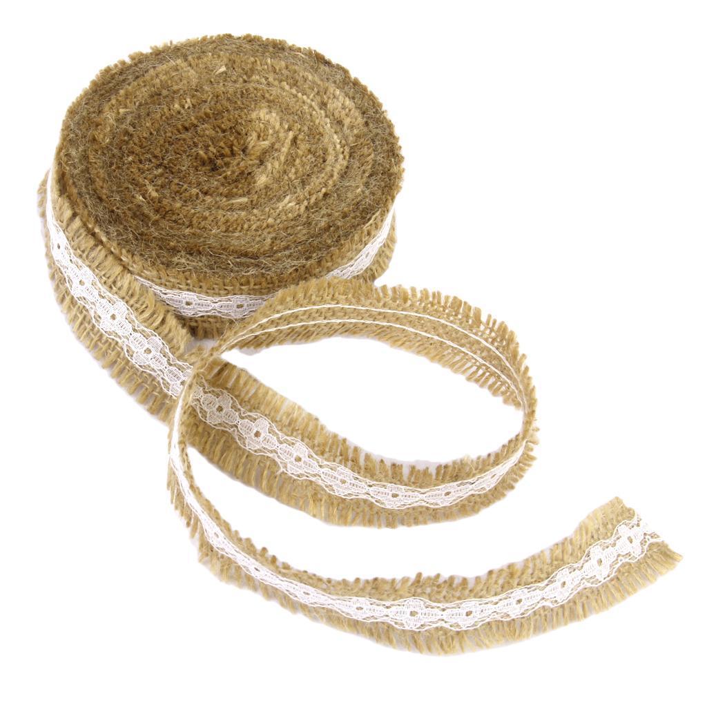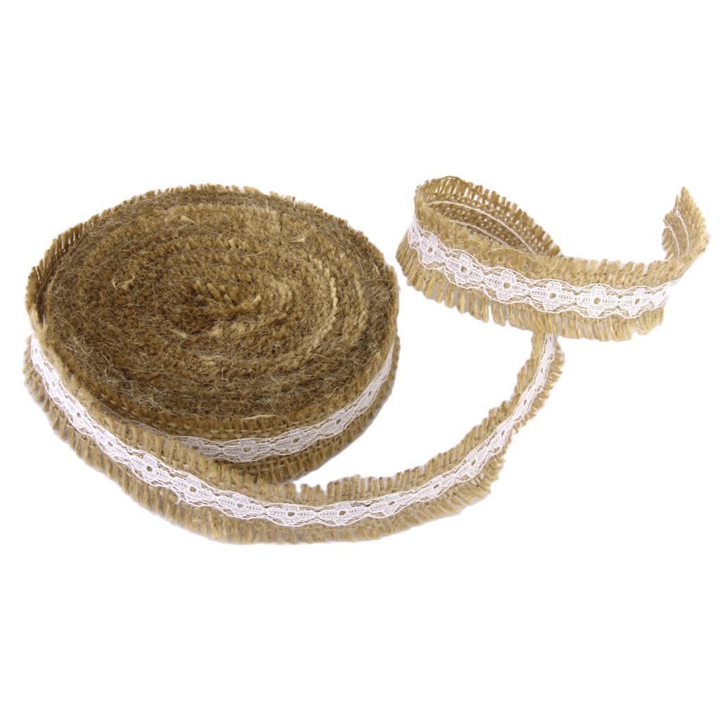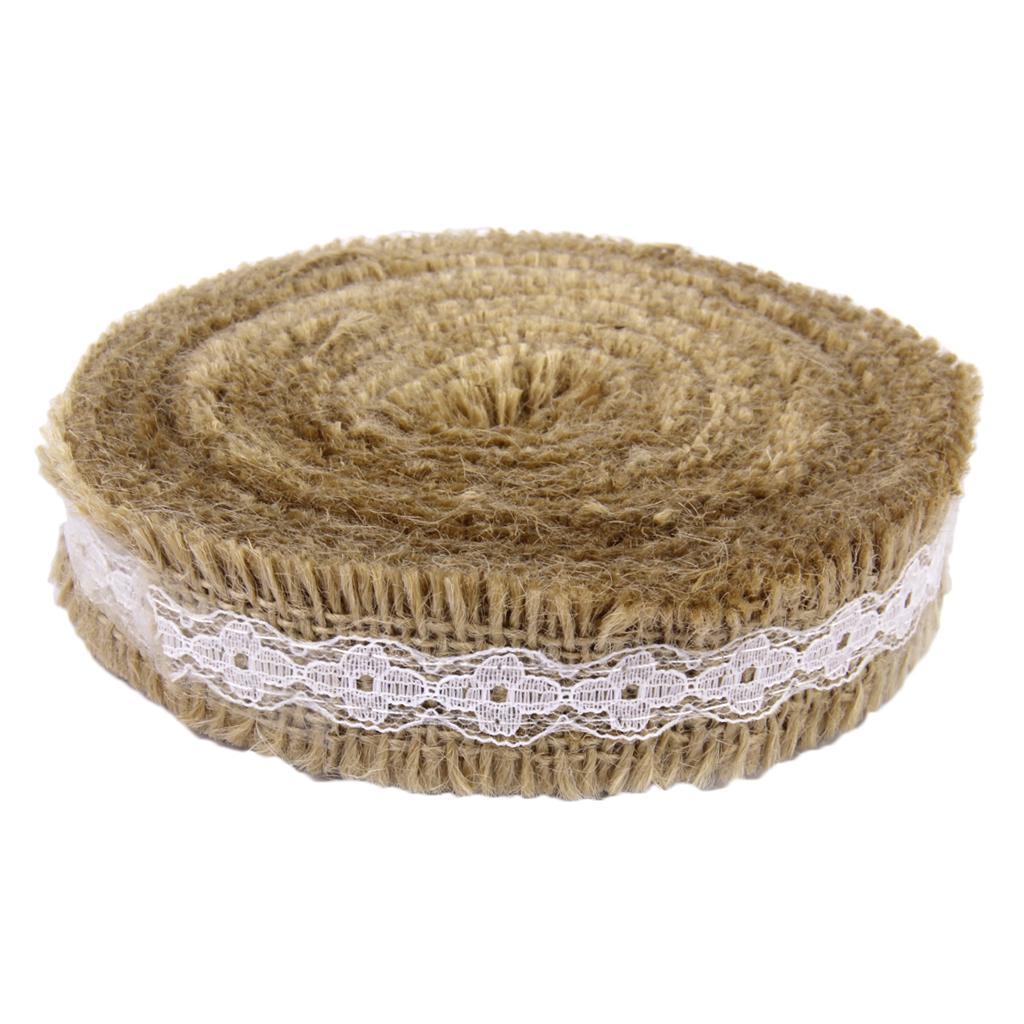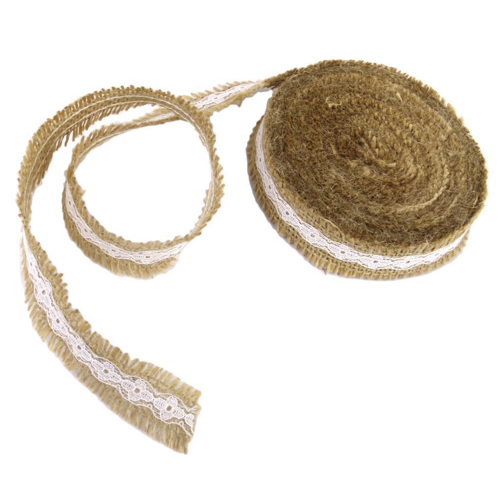Phenovo Hessian Burlap Lace Craft Ribbon with Frayed Edge Wedding Decor 10M