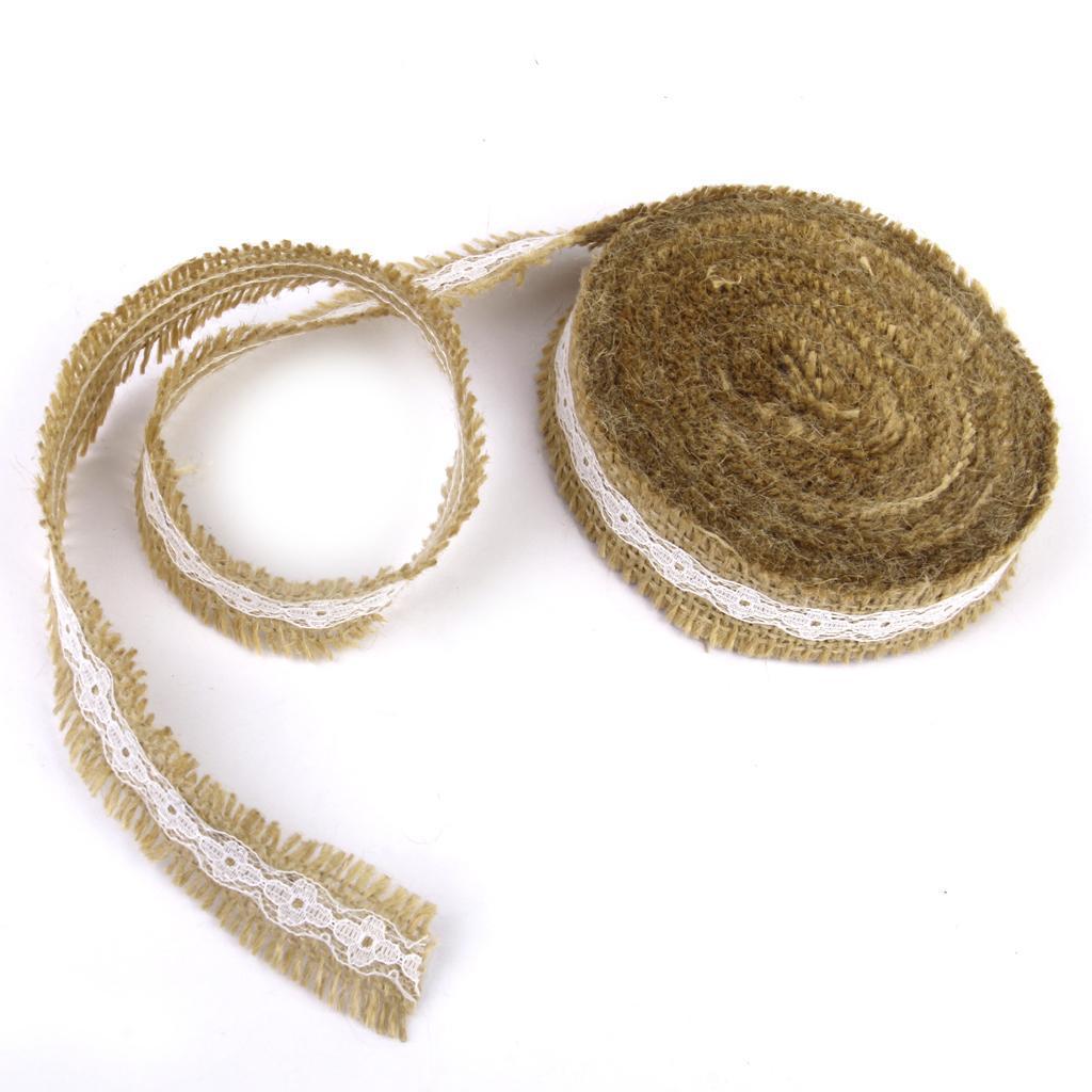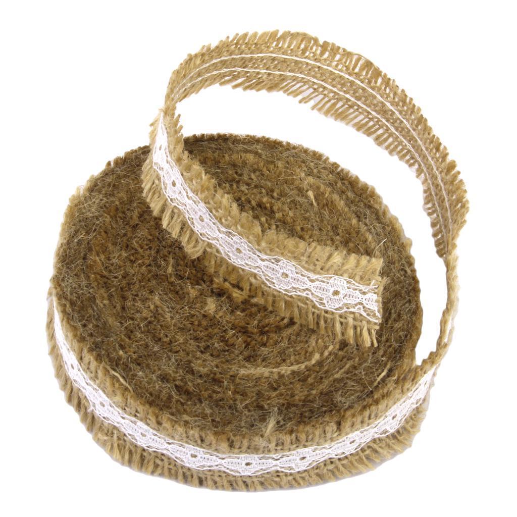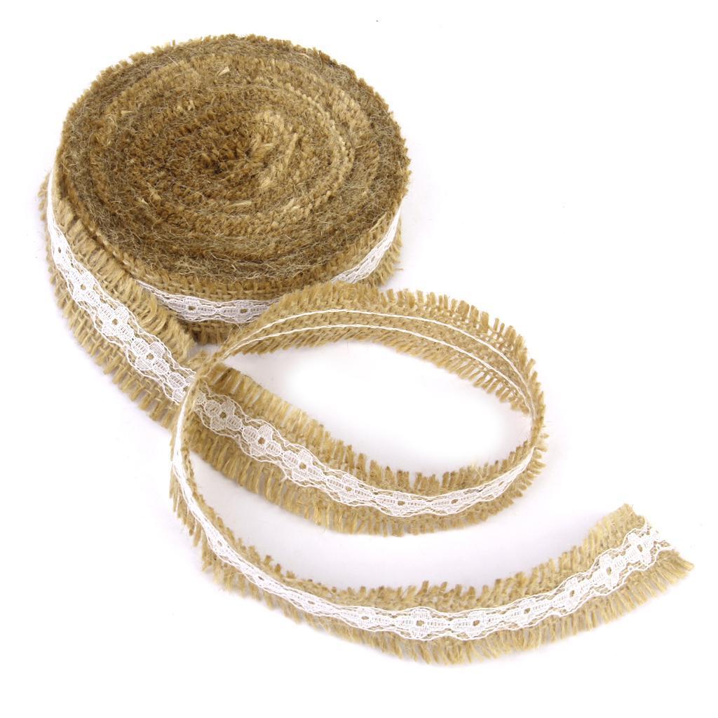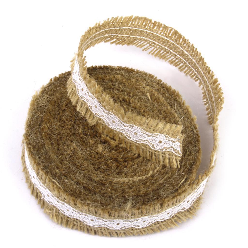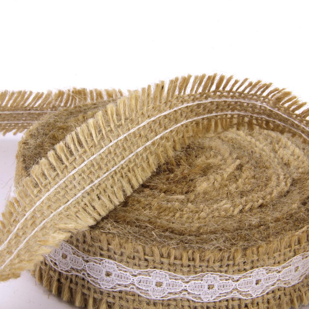 Phenovo Hessian Burlap Lace Craft Ribbon with Frayed Edge Wedding Decor 10M