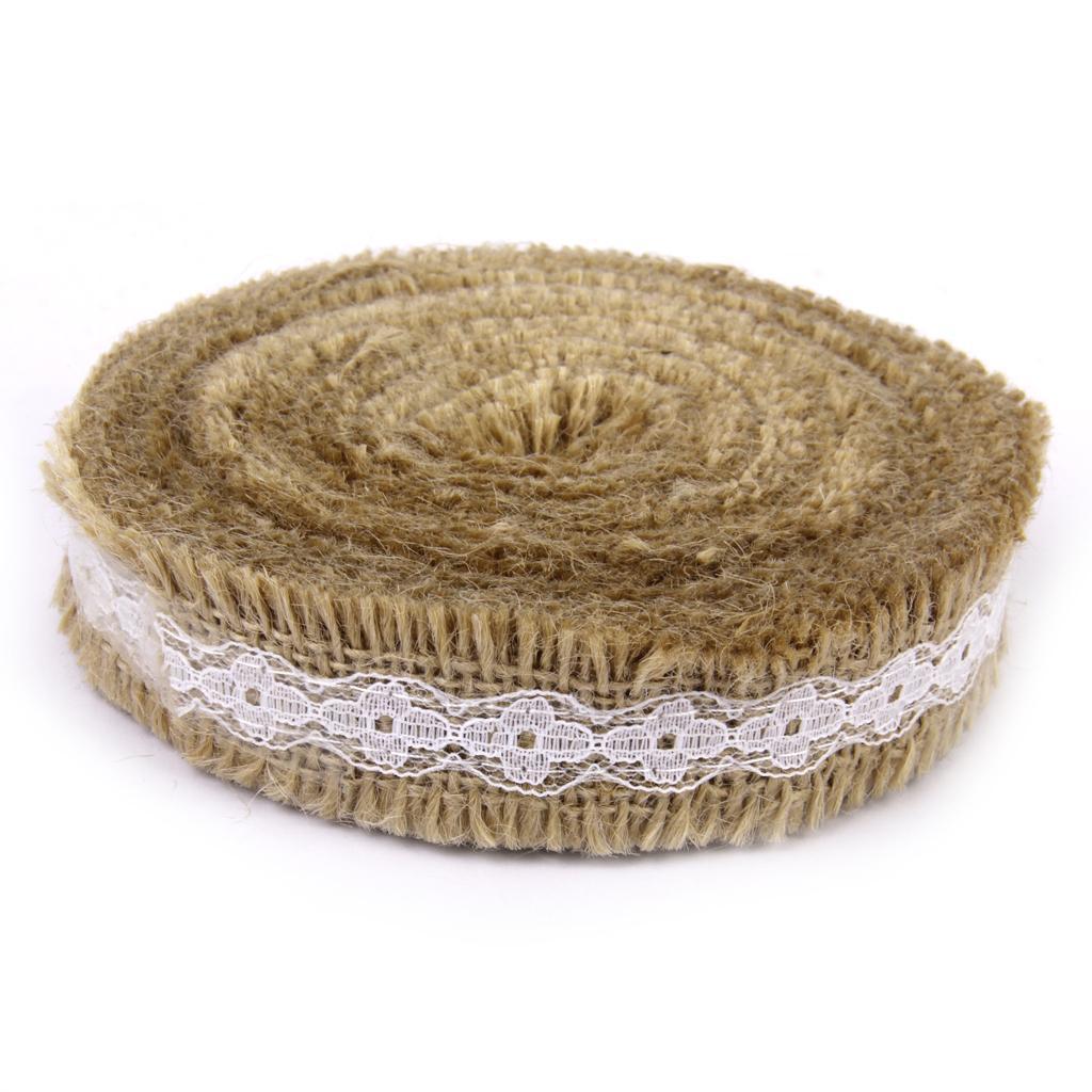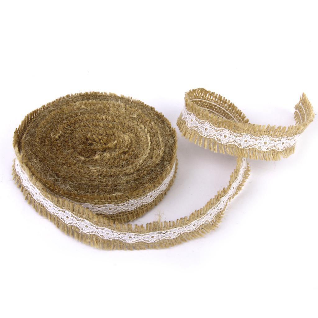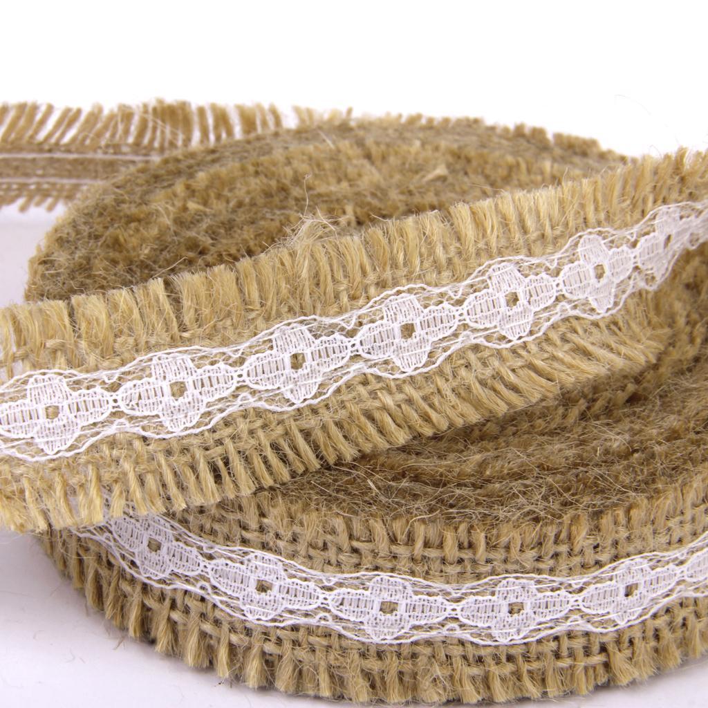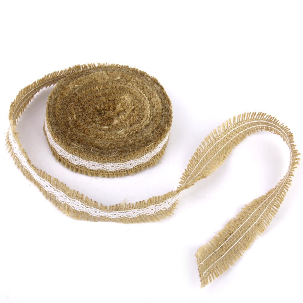Phenovo Hessian Burlap Lace Craft Ribbon with Frayed Edge Wedding Decor 10M