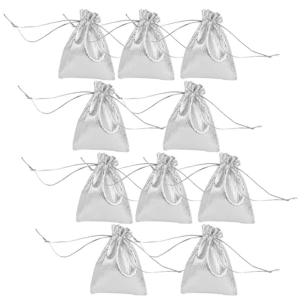 Phenovo Organza Bags Jewelry Pouches Drawstring Gift Candy Bag 10PCS Silver