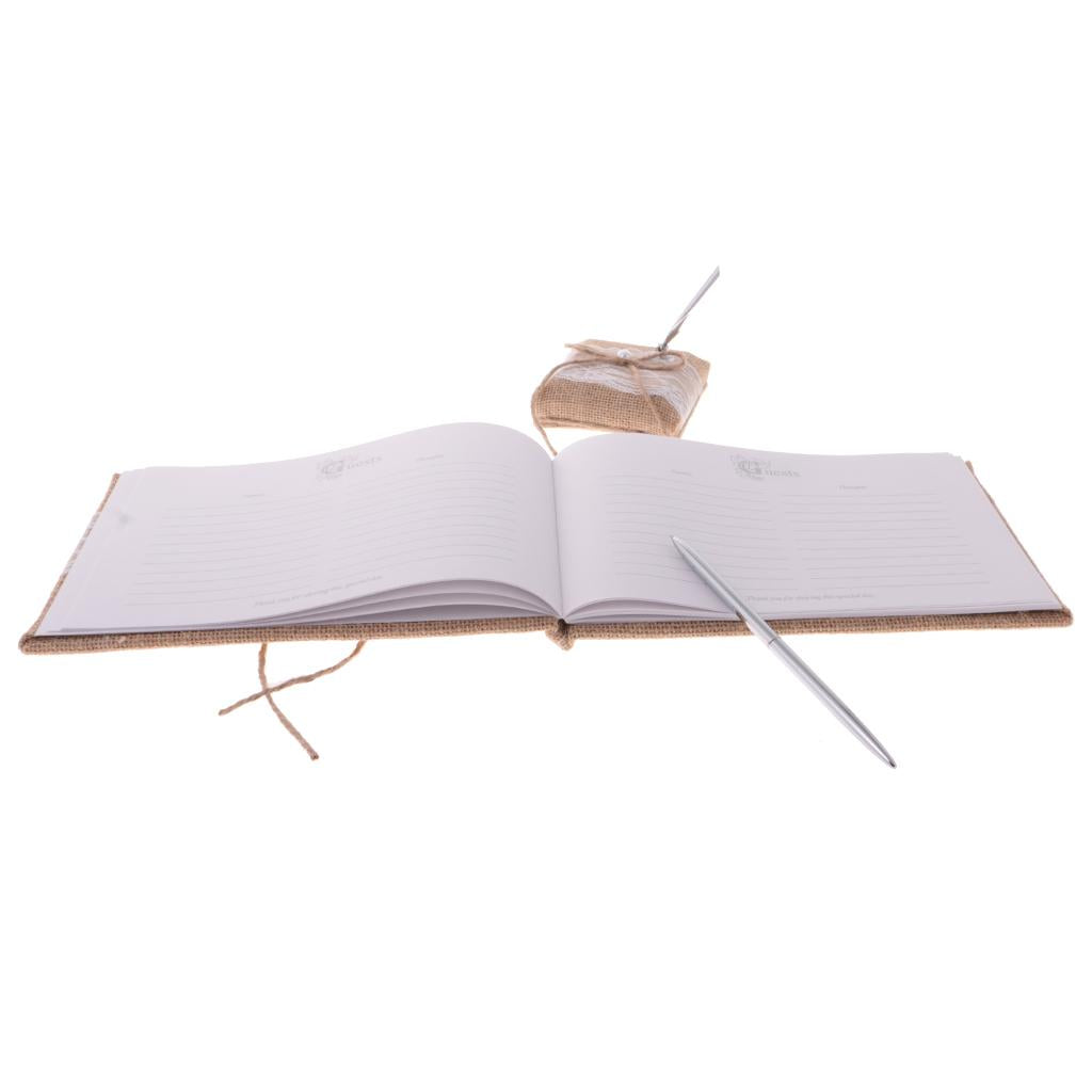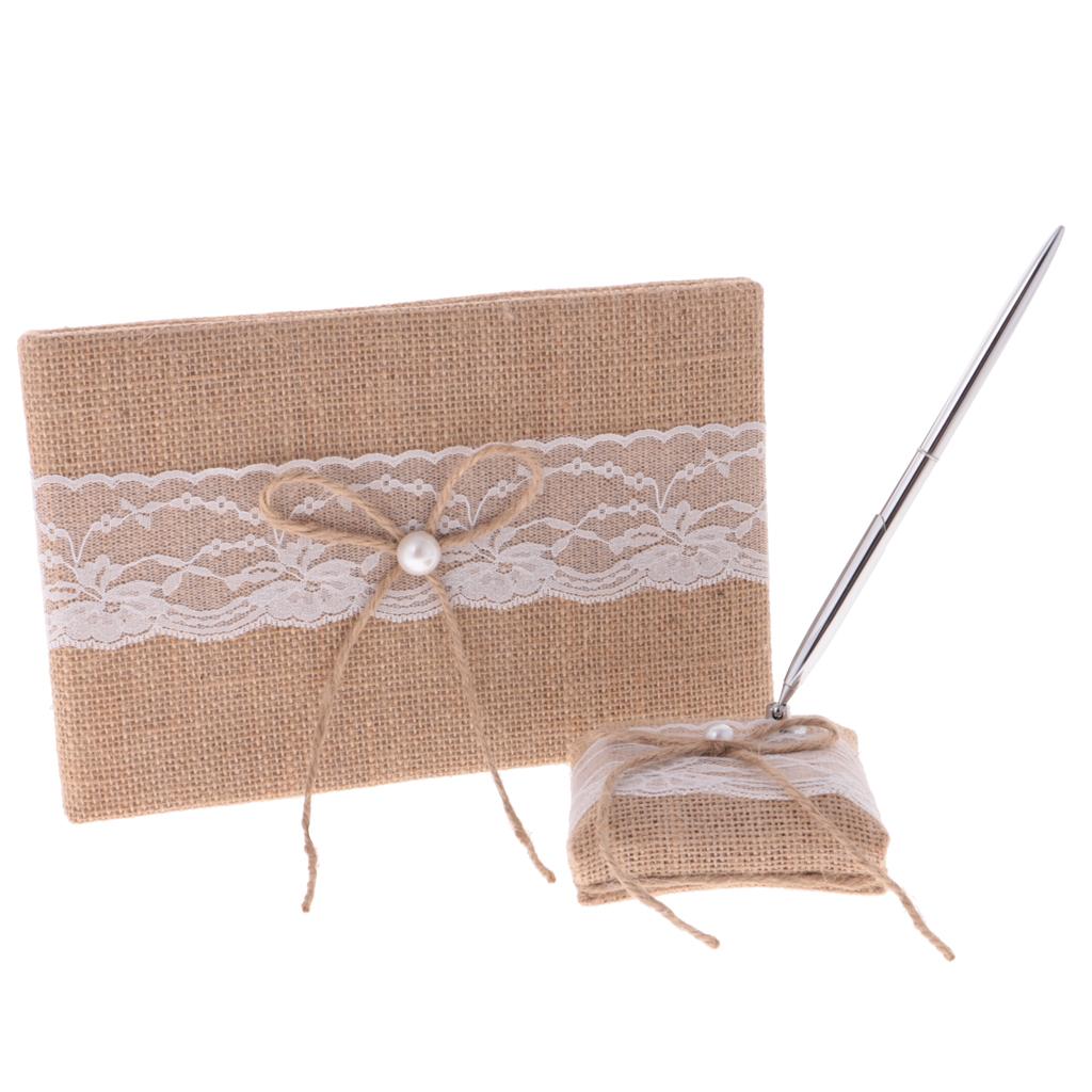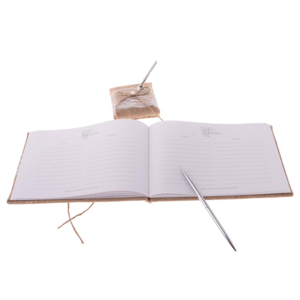 Vintage country style chic hessian lace bowknot guestbook will preserve history forever.