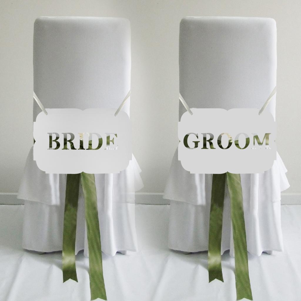 • Romantic BRIDE and GROOM chair hanging sign, perfect for wedding reception, engagement, parties etc.