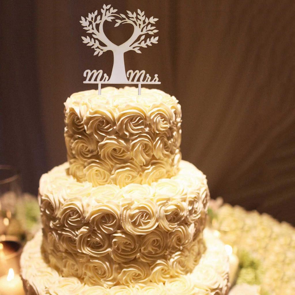 Romantic Cake Decorating Big Tree mr and mrs Wood Cake Topper Wedding Favor