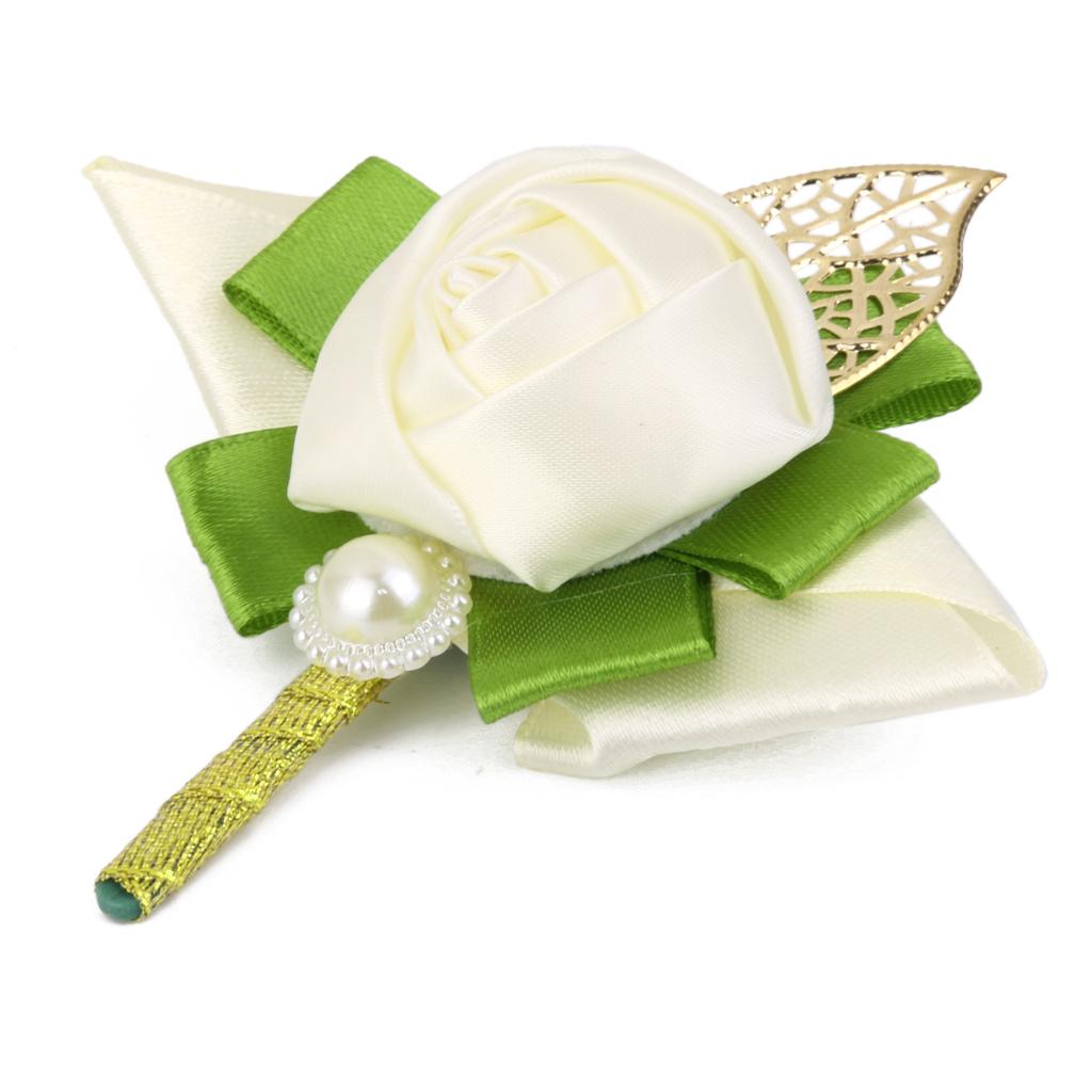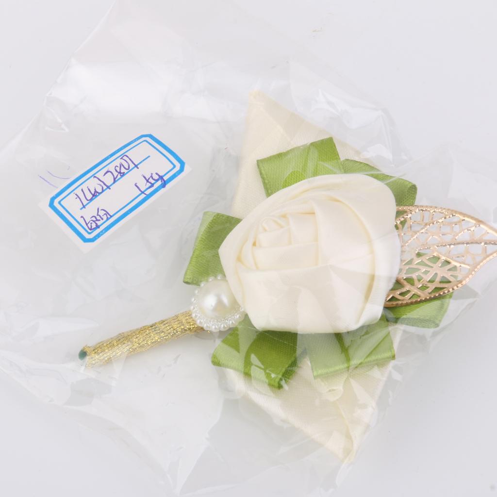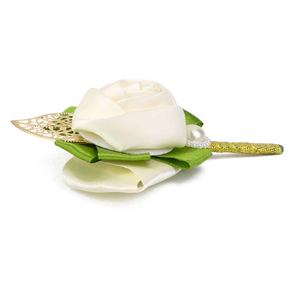 Rose Boutonniere Groom Bridal Corsages Brooch Clip Pin Wedding Decor White
