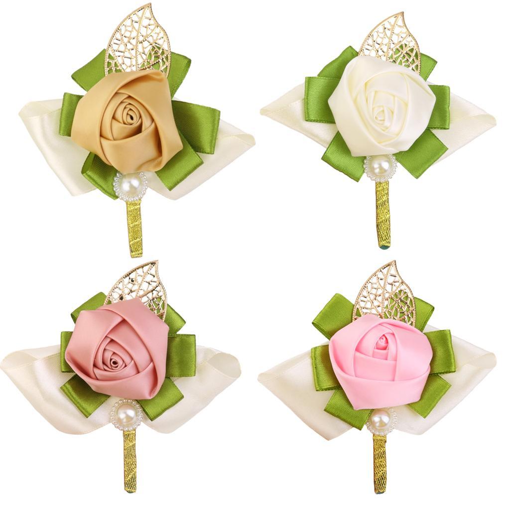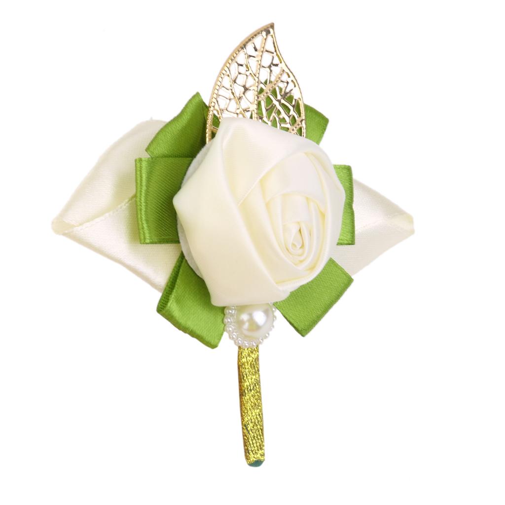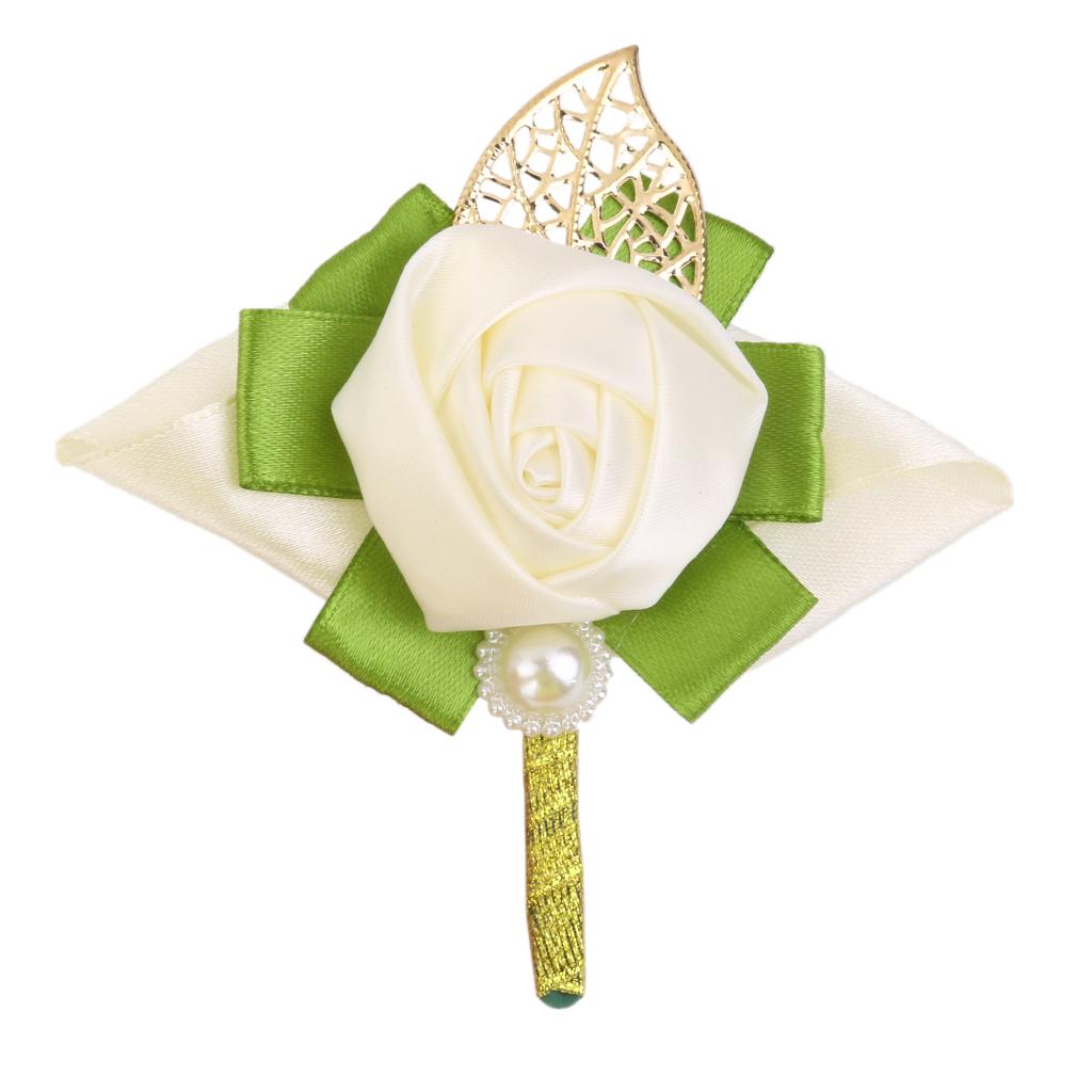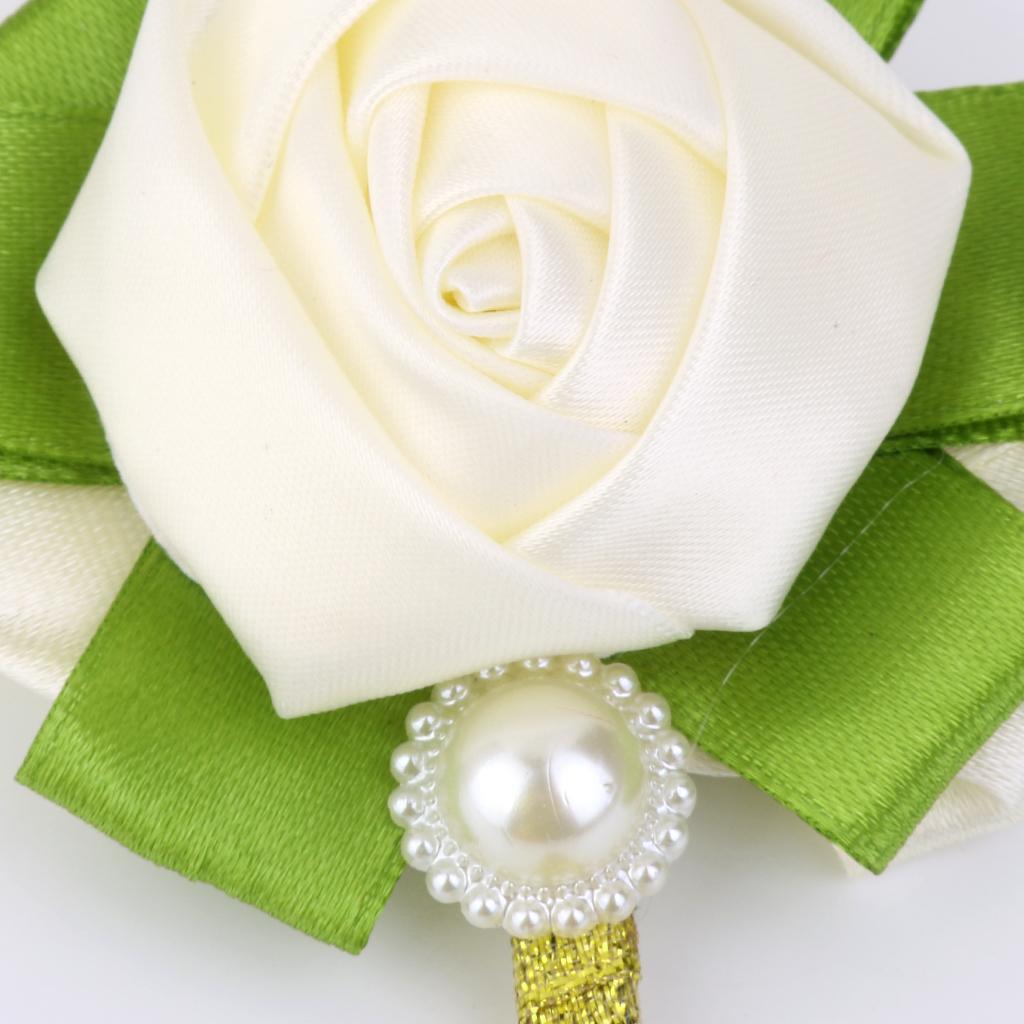 Rose Boutonniere Groom Bridal Corsages Brooch Clip Pin Wedding Decor White