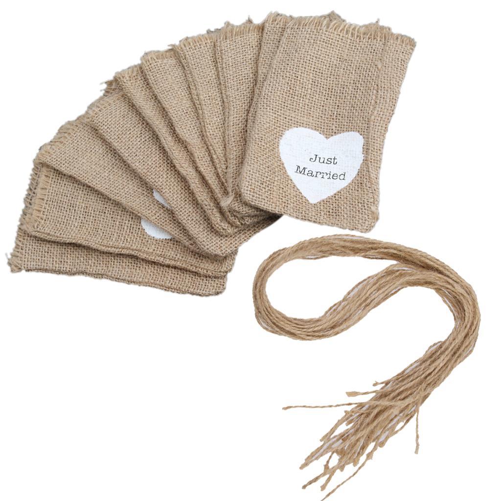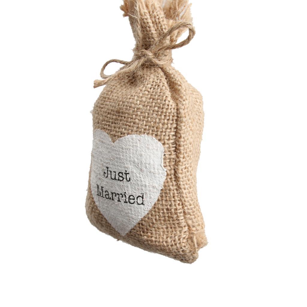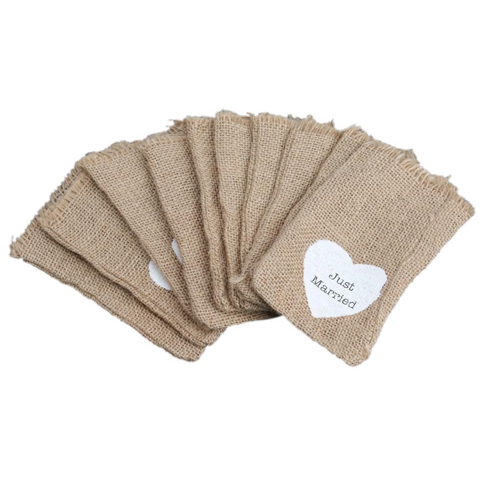 Rustic Wedding Favor Burlap Bags Jute Sack Candy Pouch Just Married Print Pack Of 10