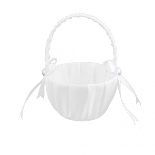 • White flowergirl basket with faux pearl flower embellishment