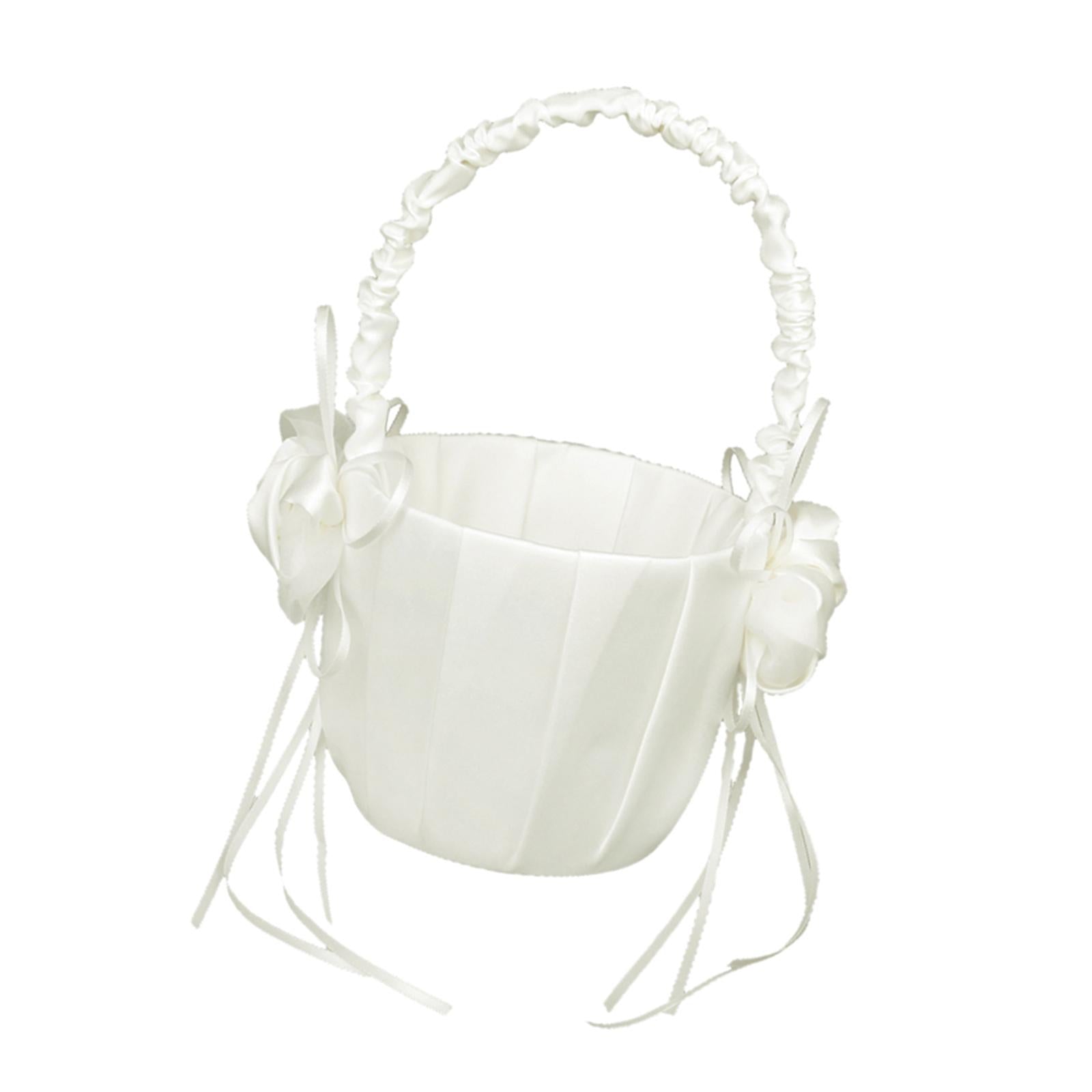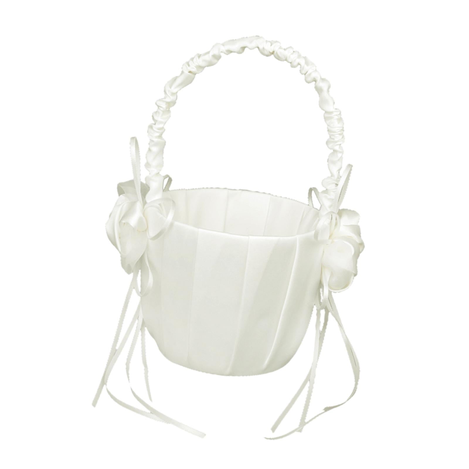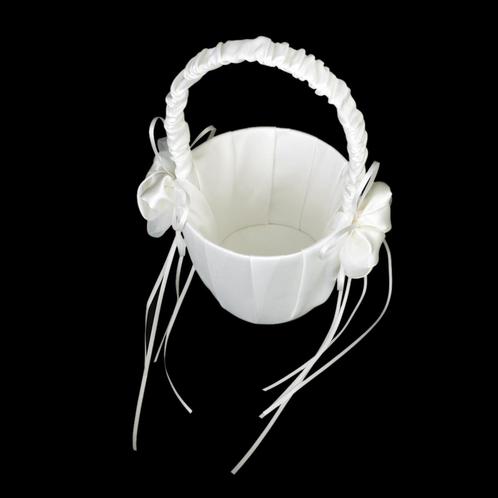 Satin Lovely Ivory Bud Wedding Flower Girl Basket