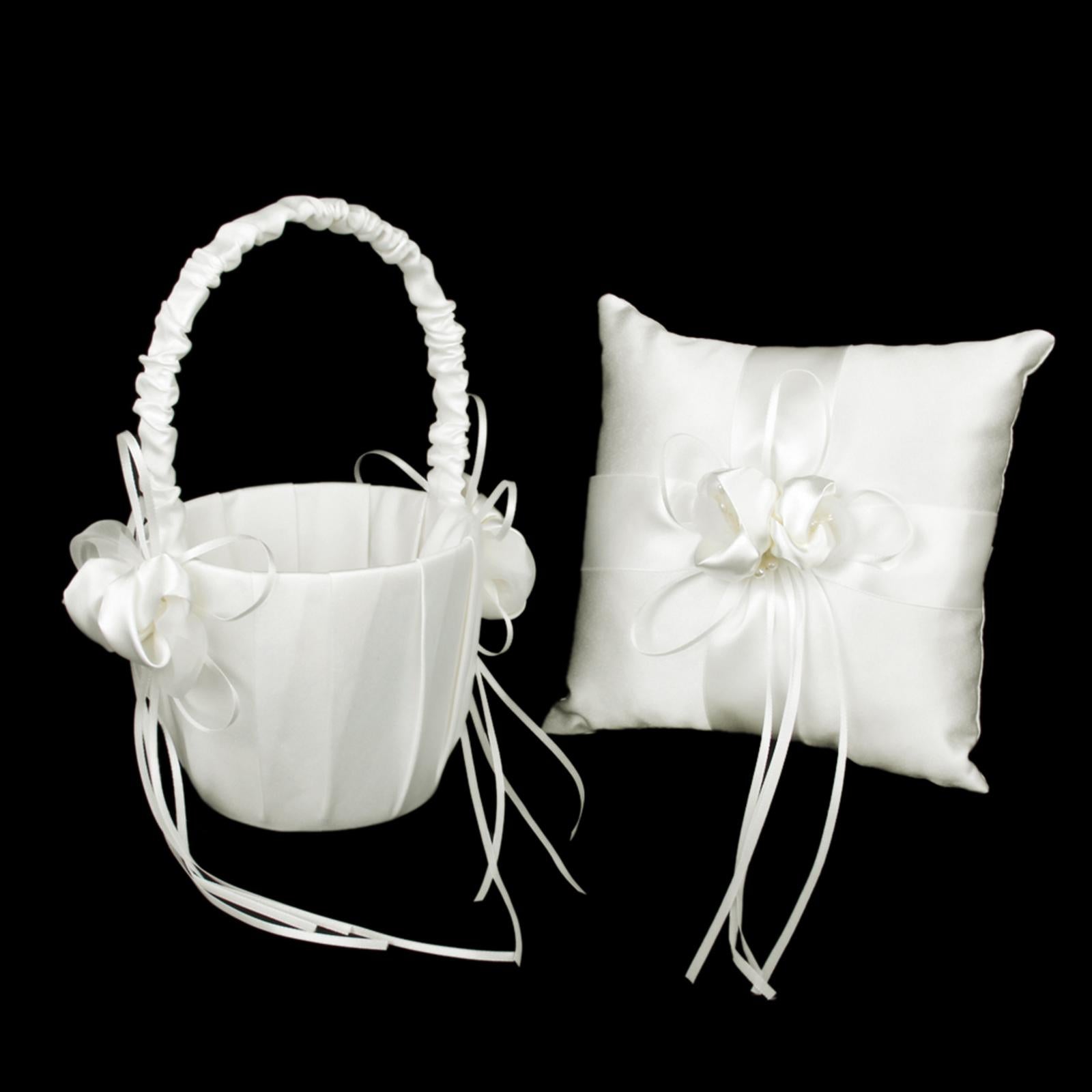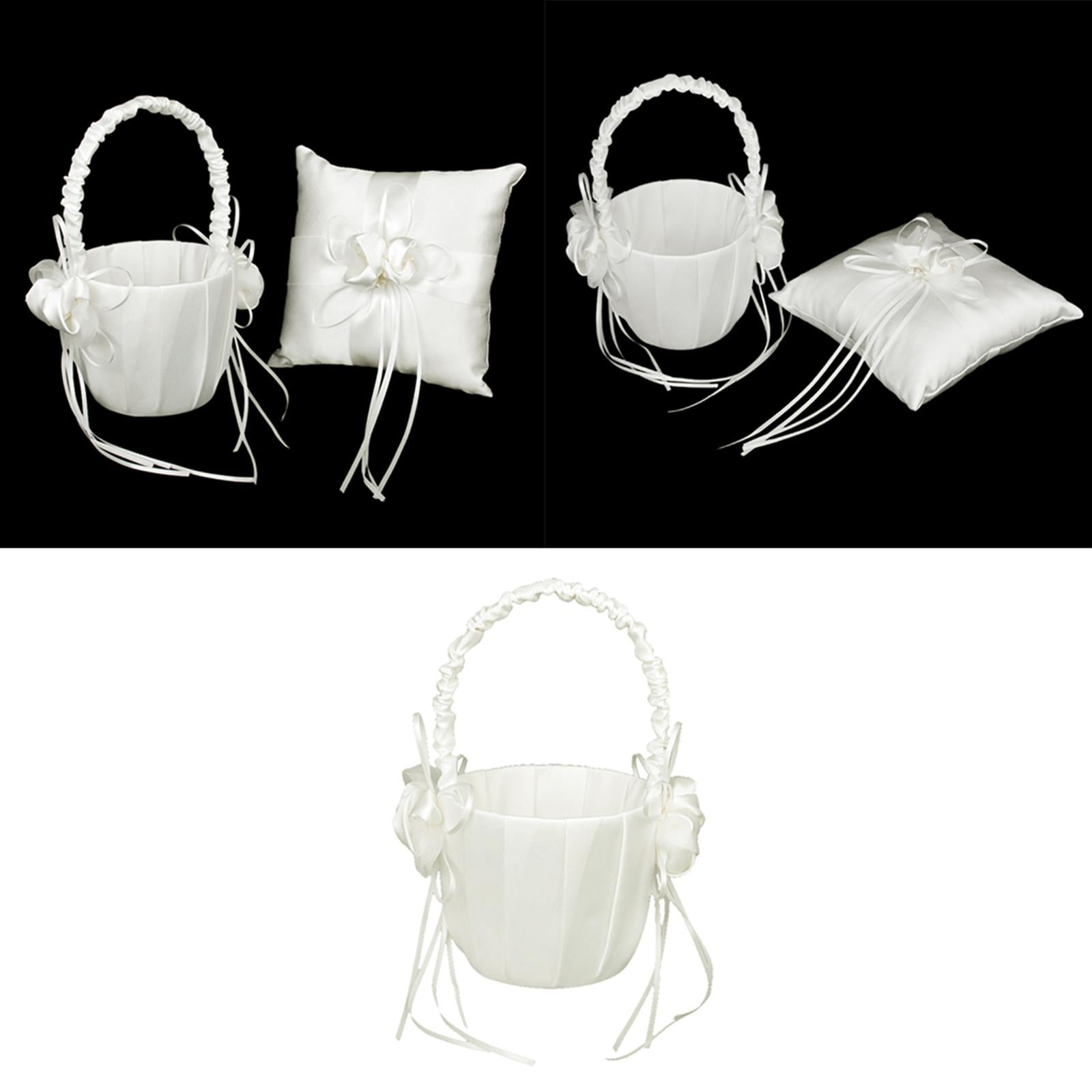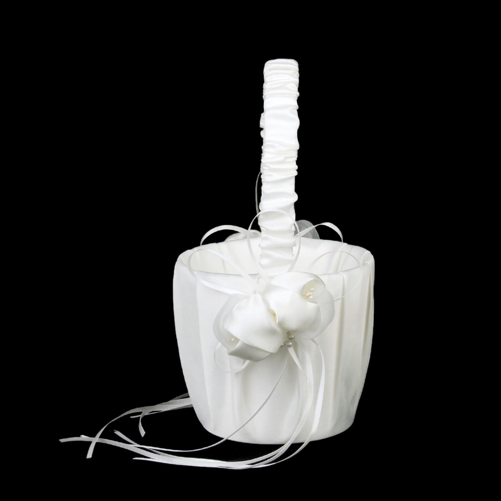 Satin Lovely Ivory Bud Wedding Flower Girl Basket