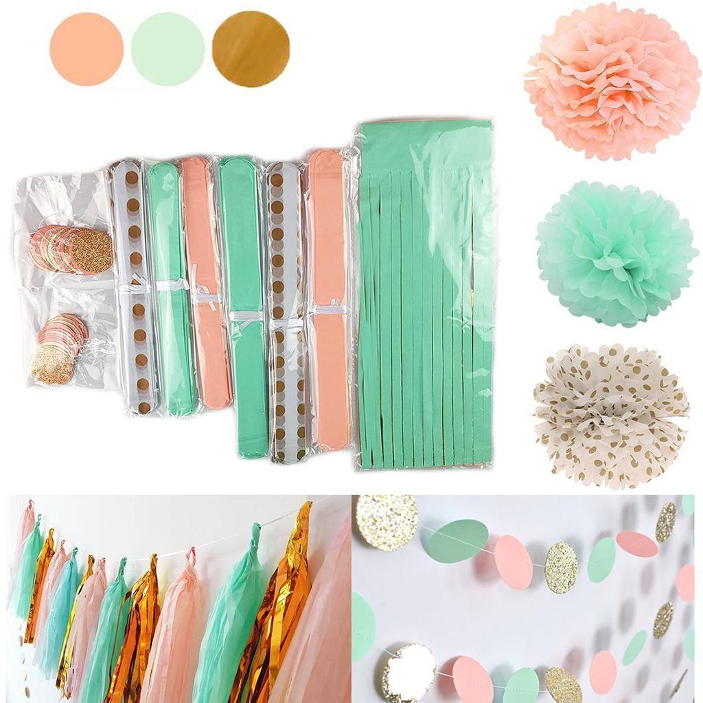 Mixed style tissue paper fowers balls and paper tassel garland sets