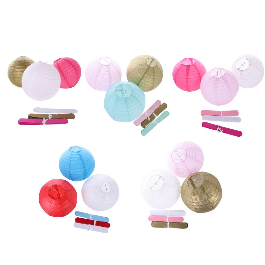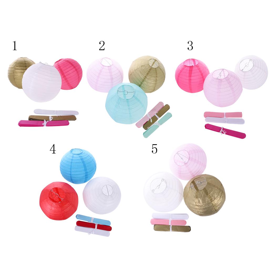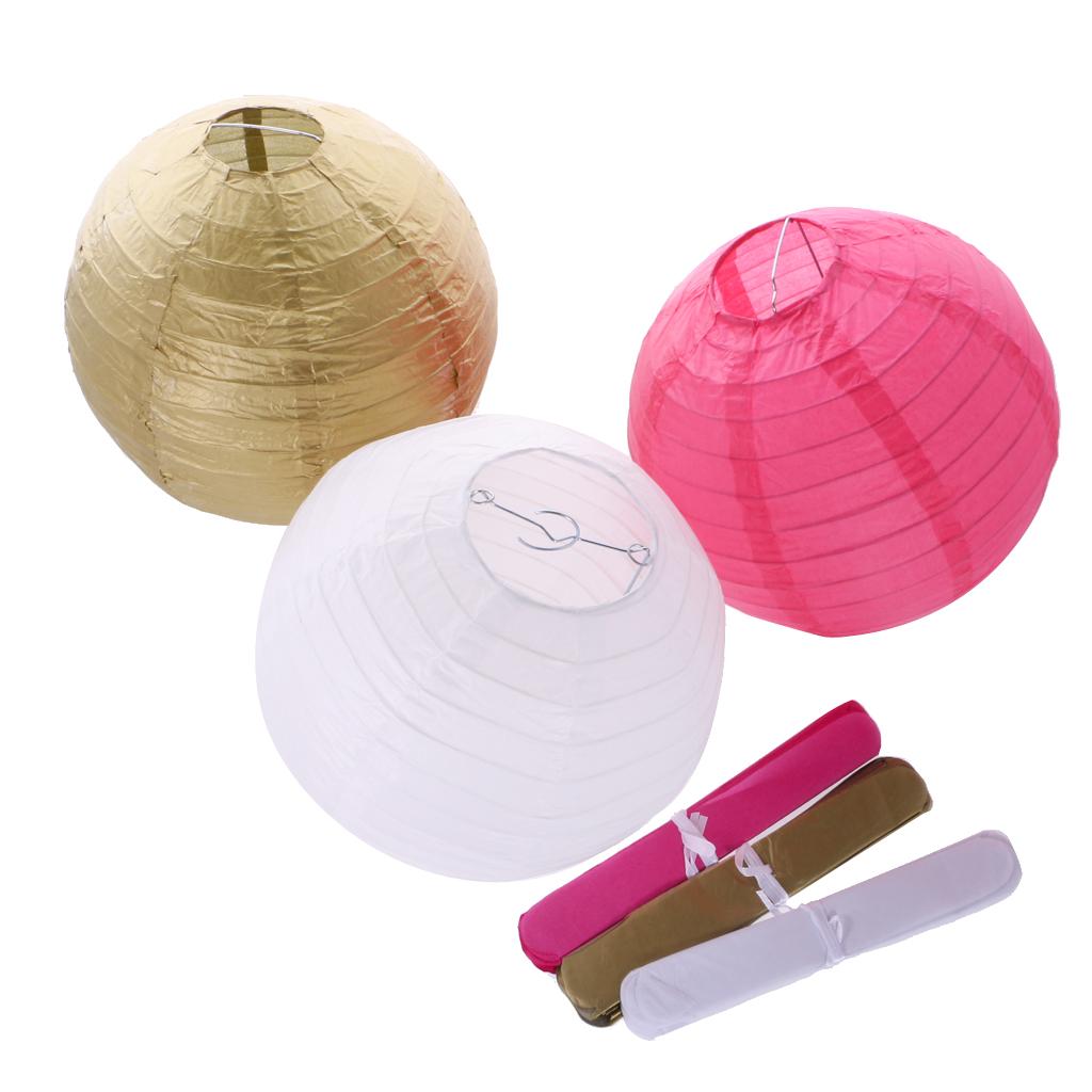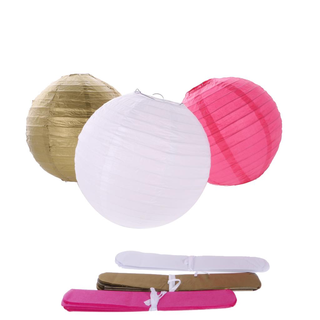 Set Of Mixed Style Paper Pom Poms With Lanterns Wedding Birthday Party Baby Shower Party Decor Rose White Gold