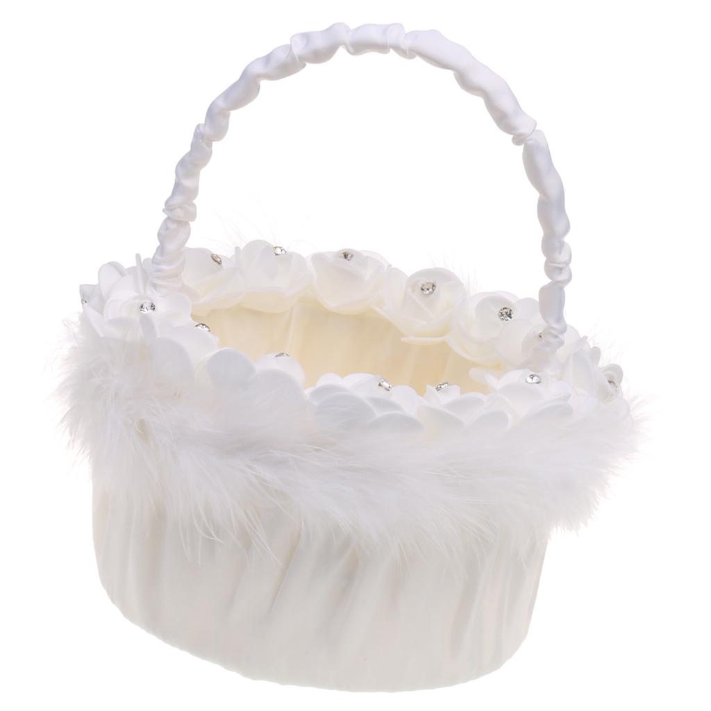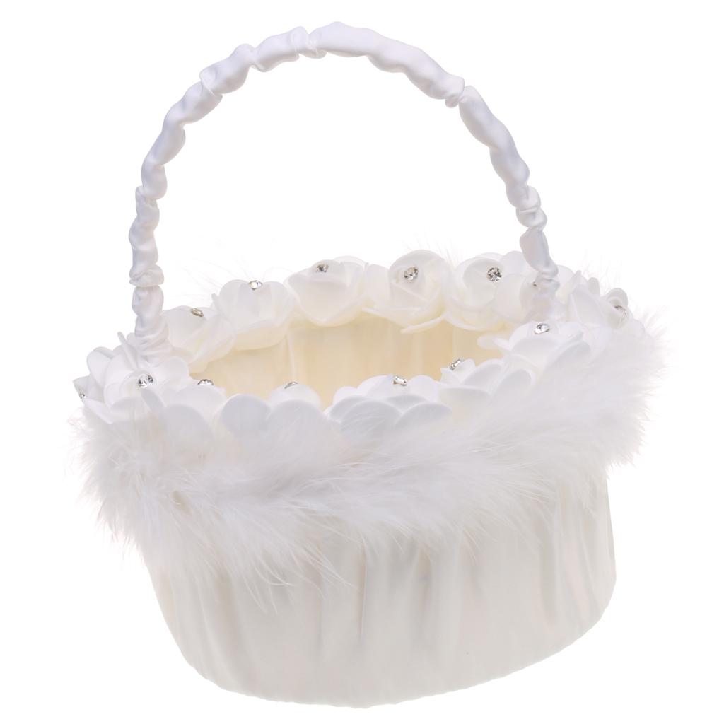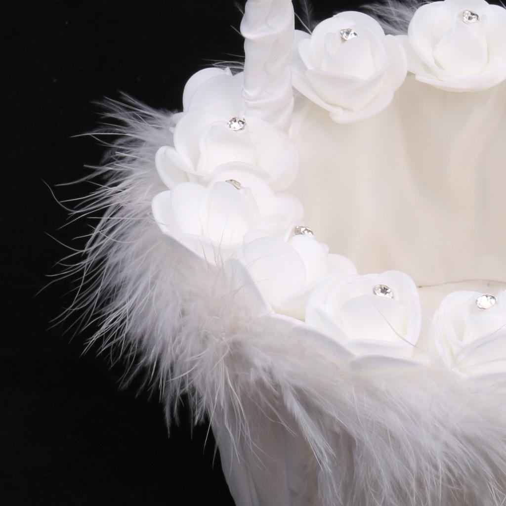 The listing comes with a chic feather rose flower girl basket for a perfect wedding party. Graceful white color, smooth satin material, diamante flower and soft white feather, add a permanent wonderful memory for your big day.