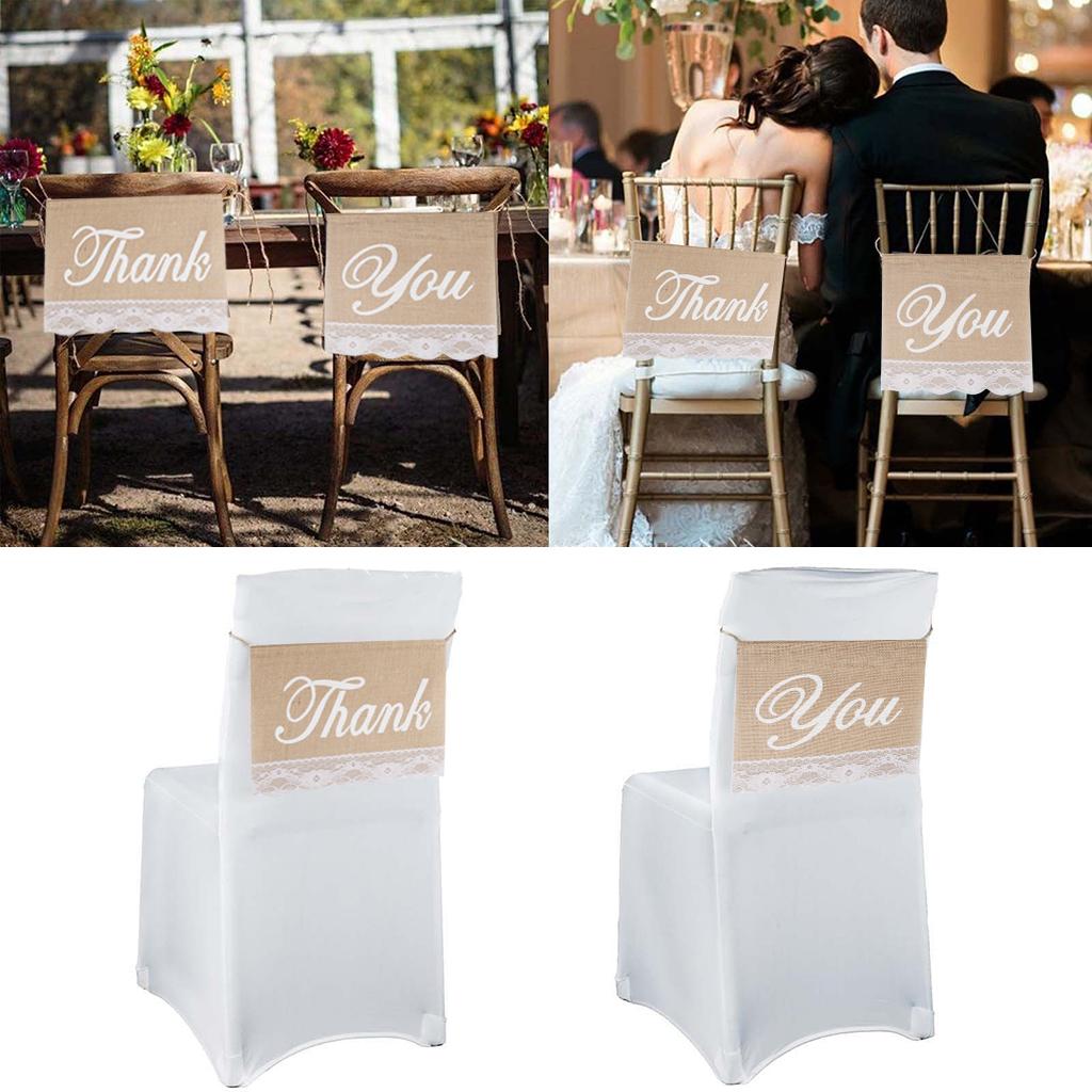 Thank & You Signs Hessian Burlap Chair Banner Rustic Wedding Decoration