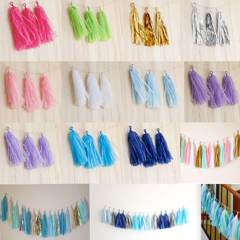 Tissue Paper Tassels Rose Red for Wedding Party Garlands Bunting Pom 5pcs