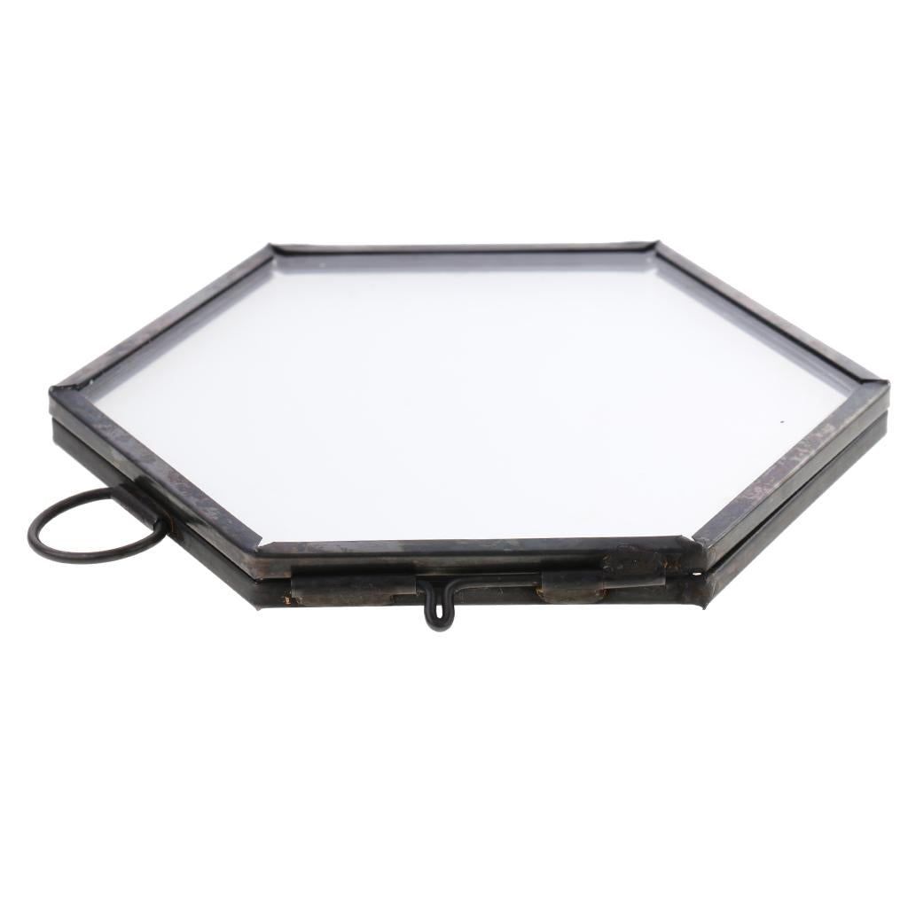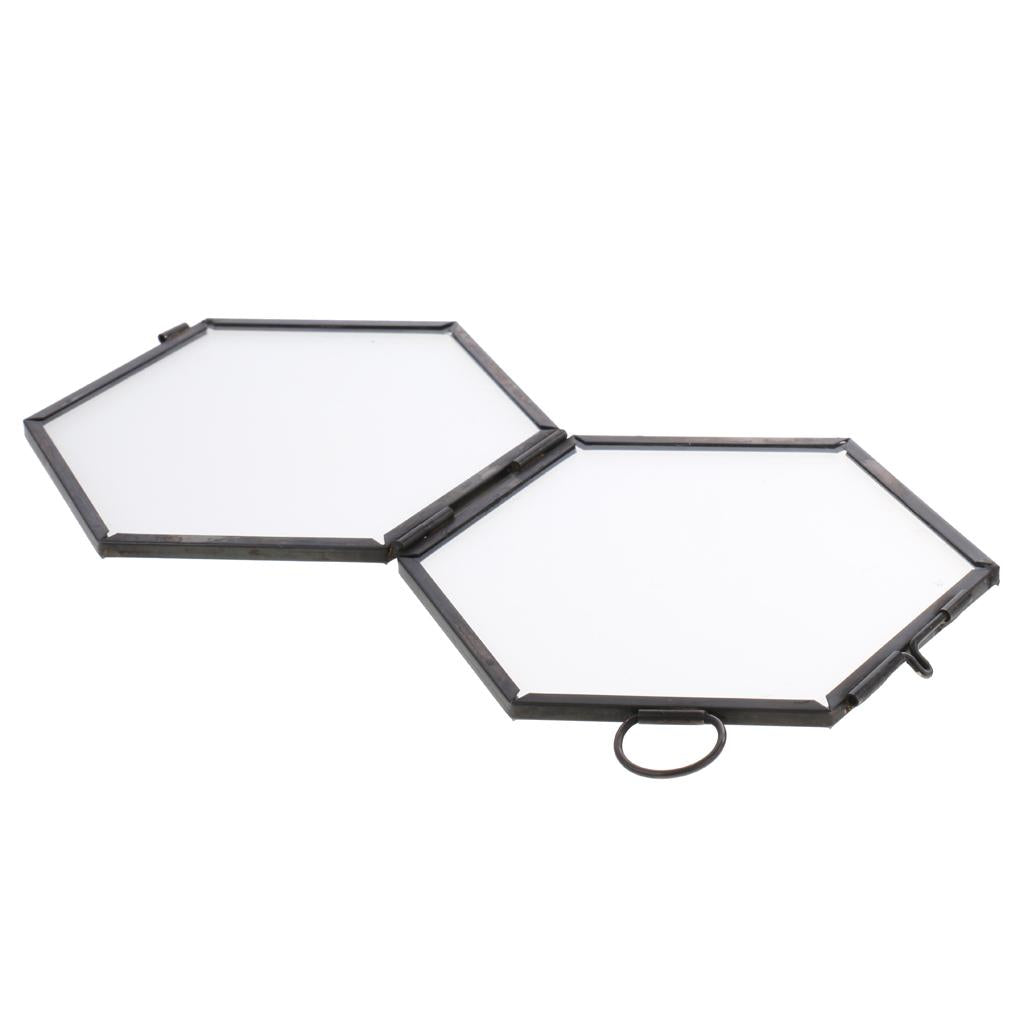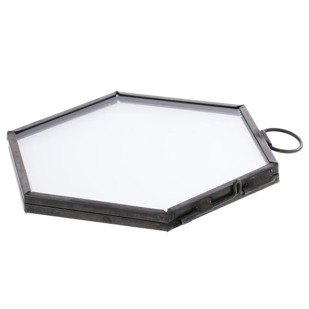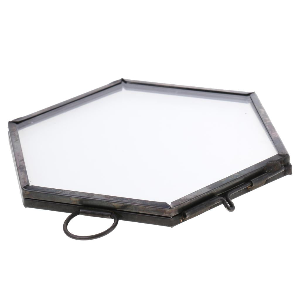 Vintage Hexagon Metal & Glass Picture Photo Frame Hanging Frame black