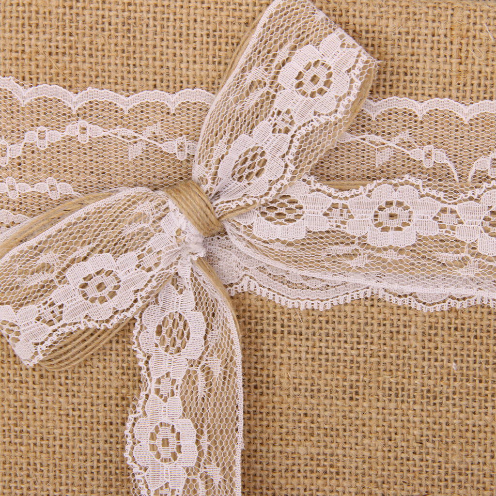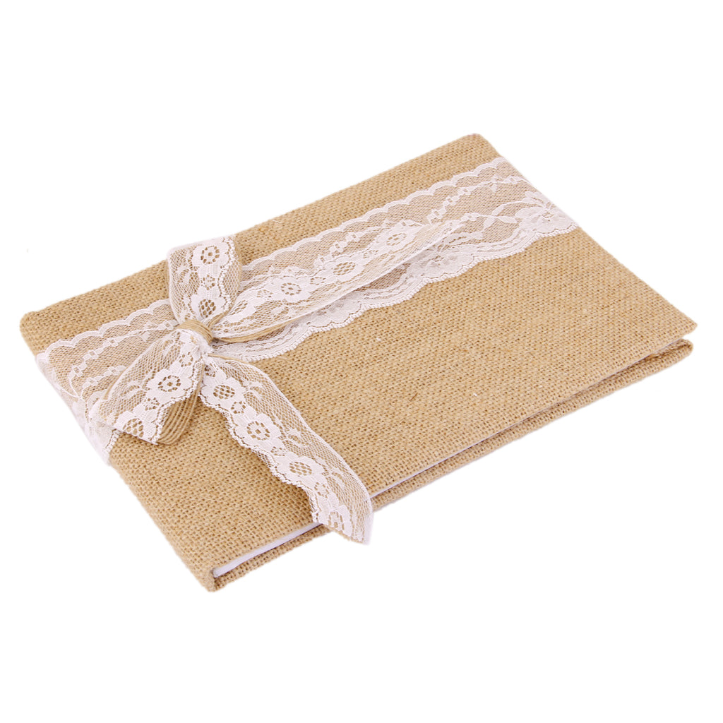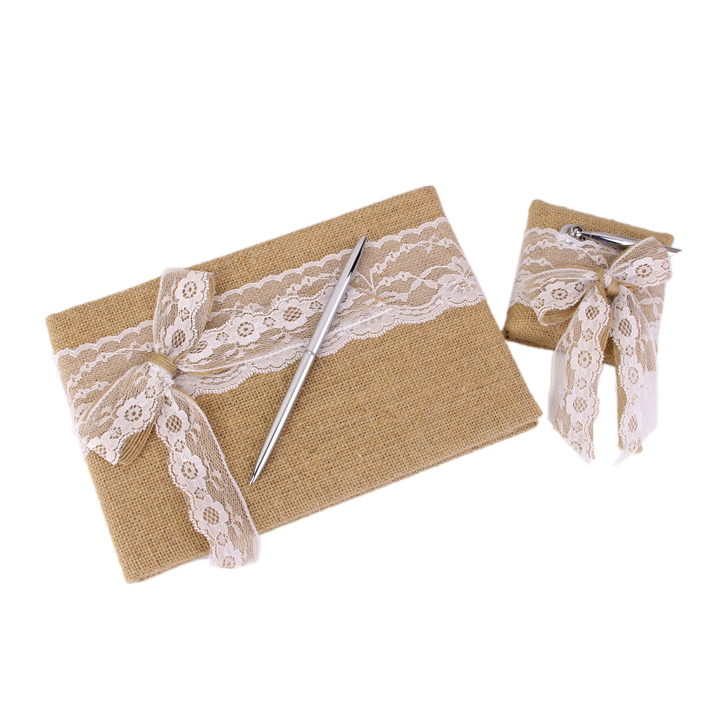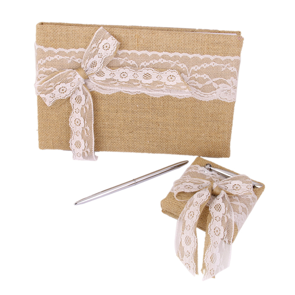 Vintage Wedding Burlap Hessian Lace Bowknot Guest Book Pen Set