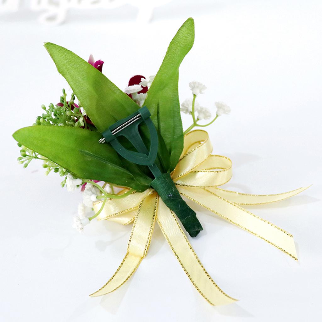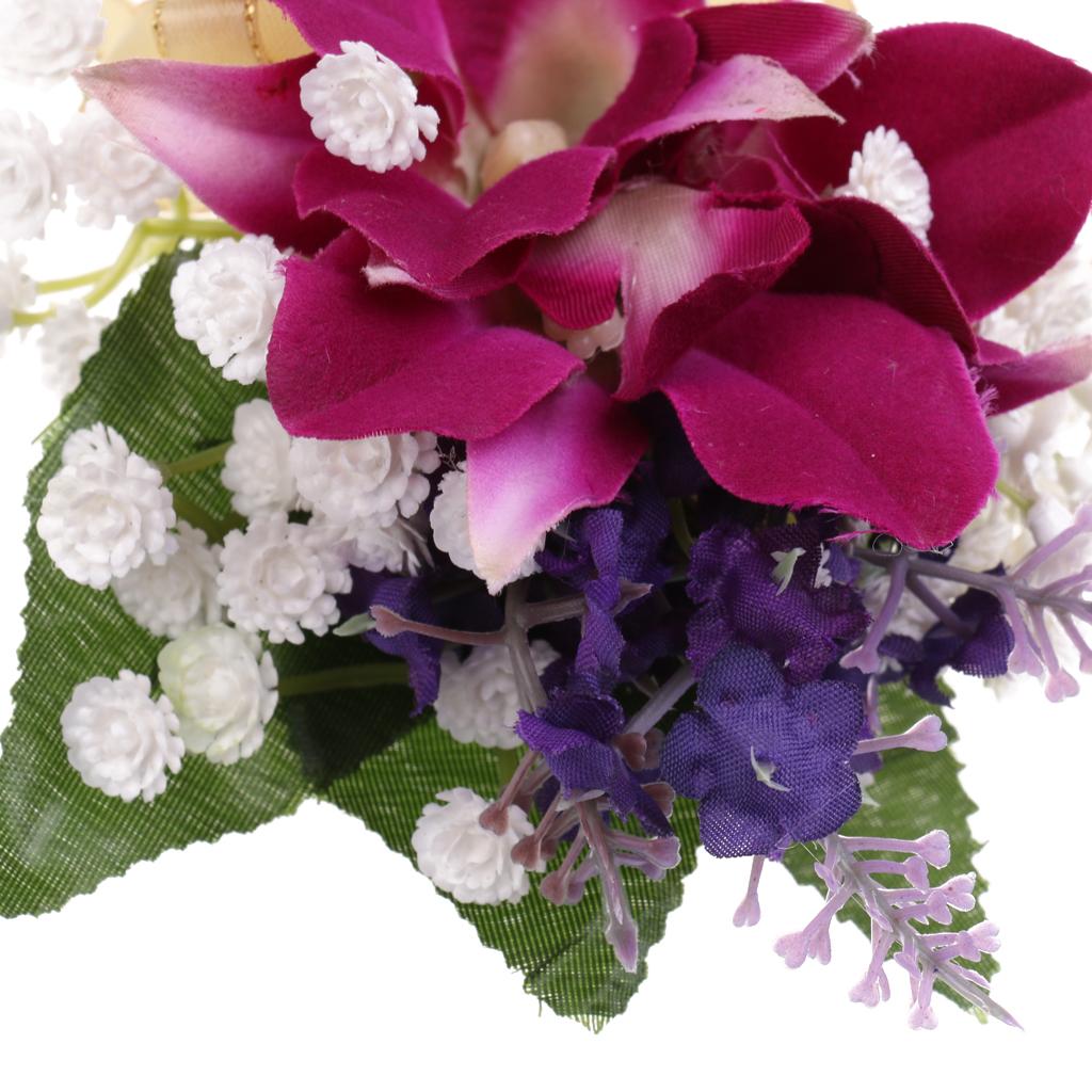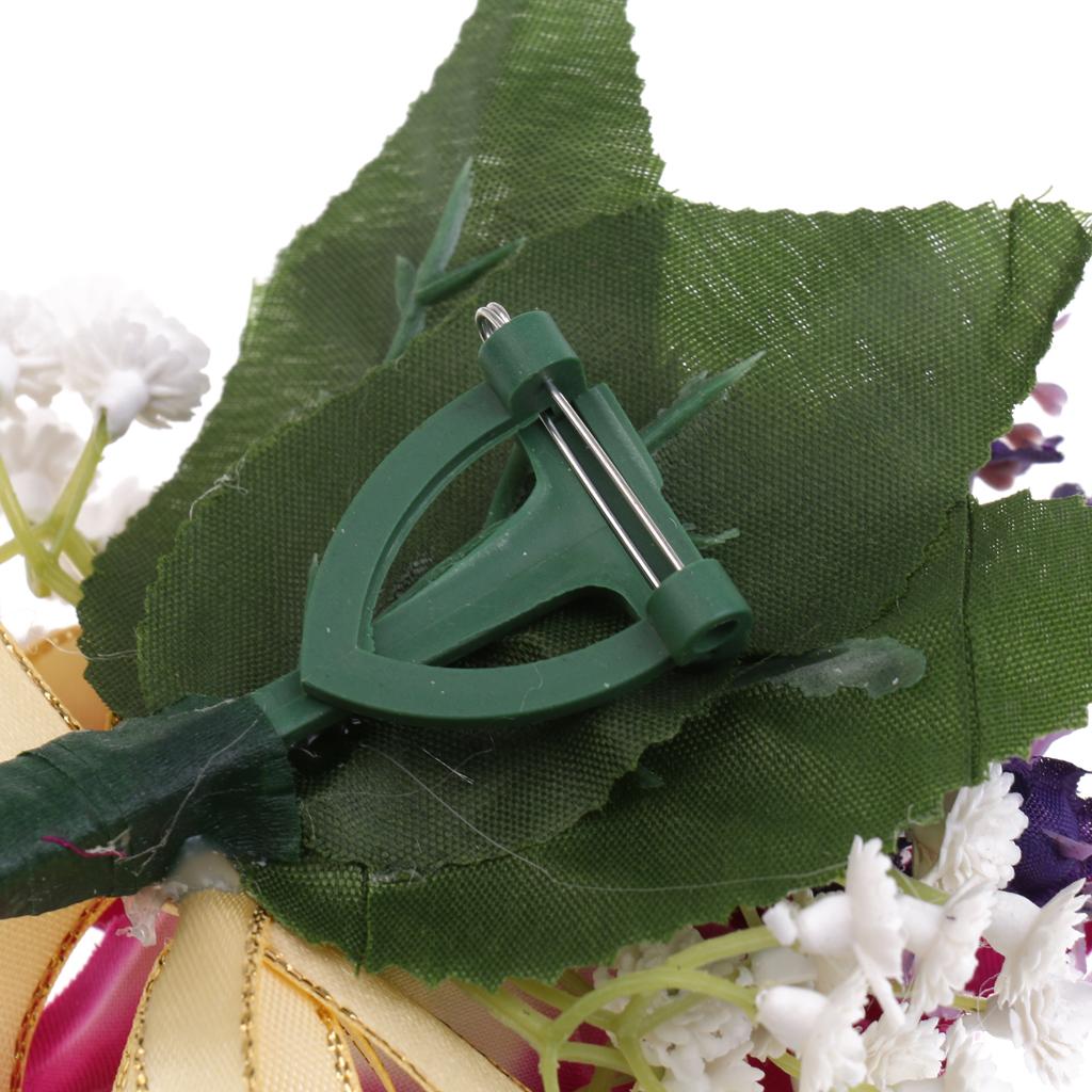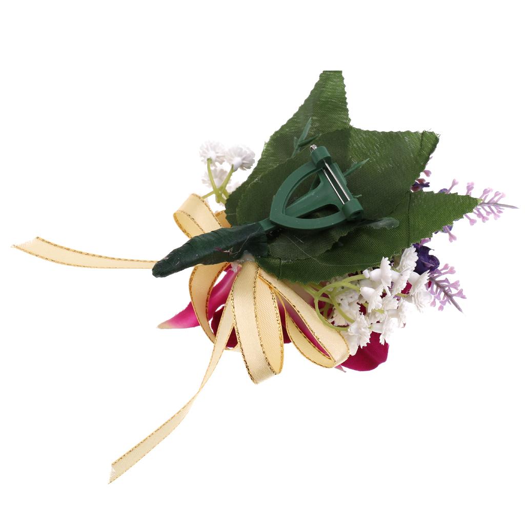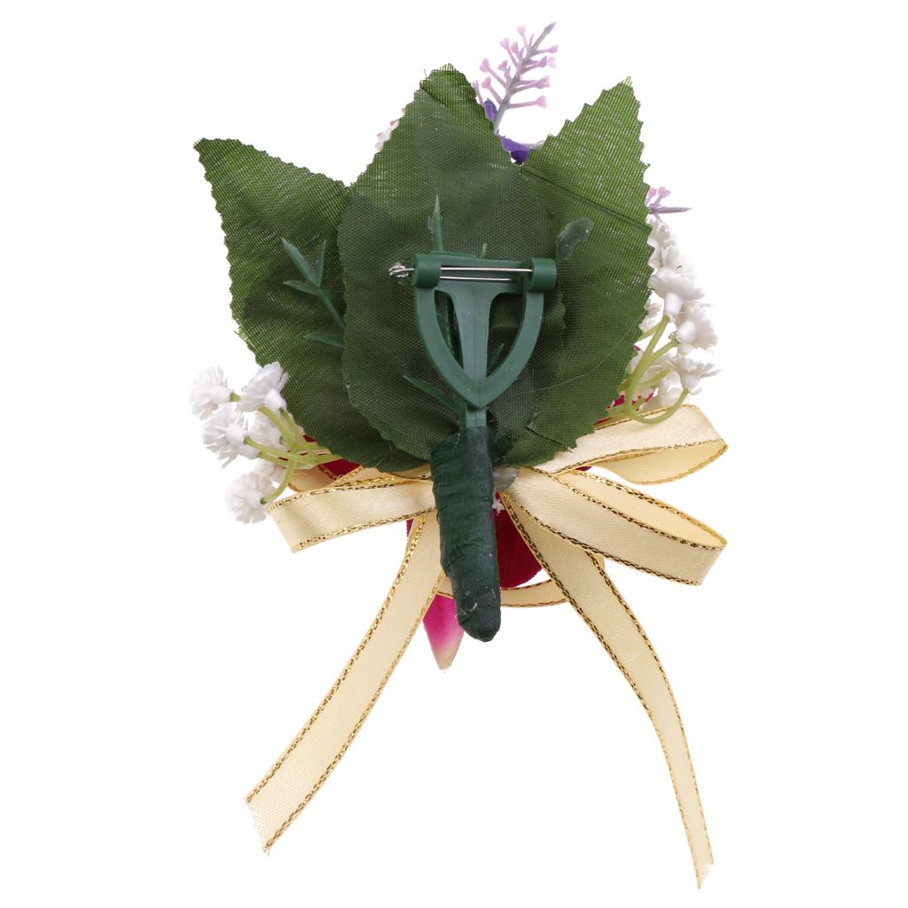 Artificial flower and leaf brooch corsage with ribbon bowknot decoration.