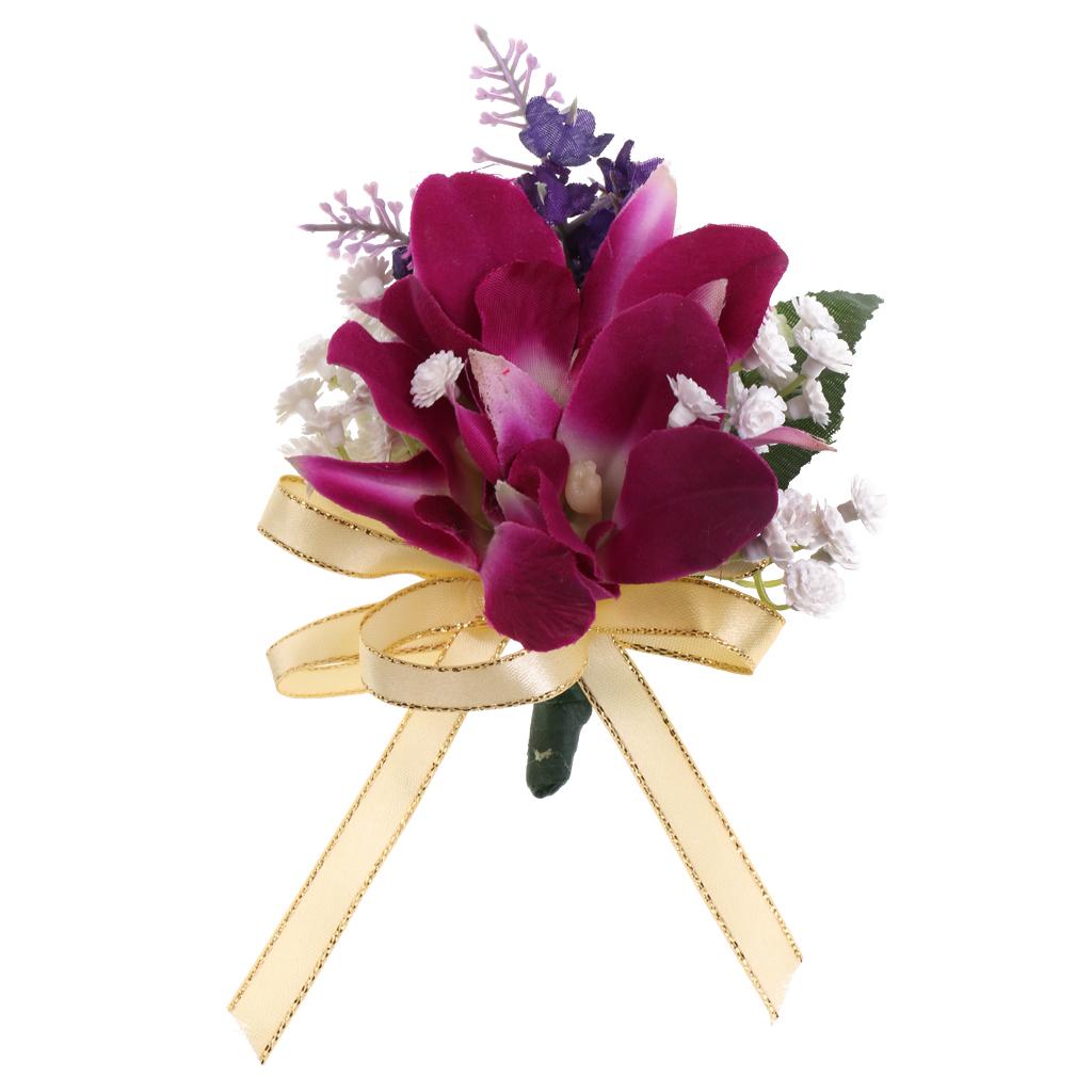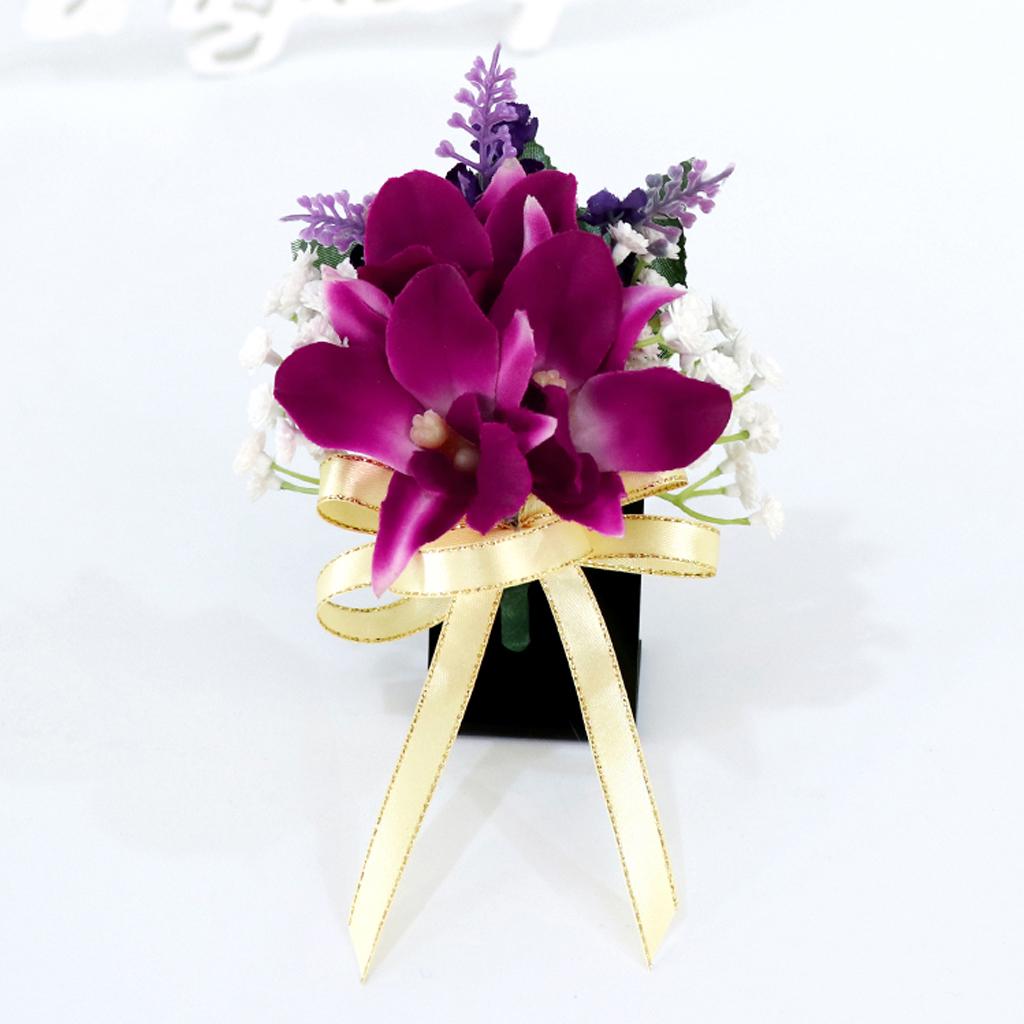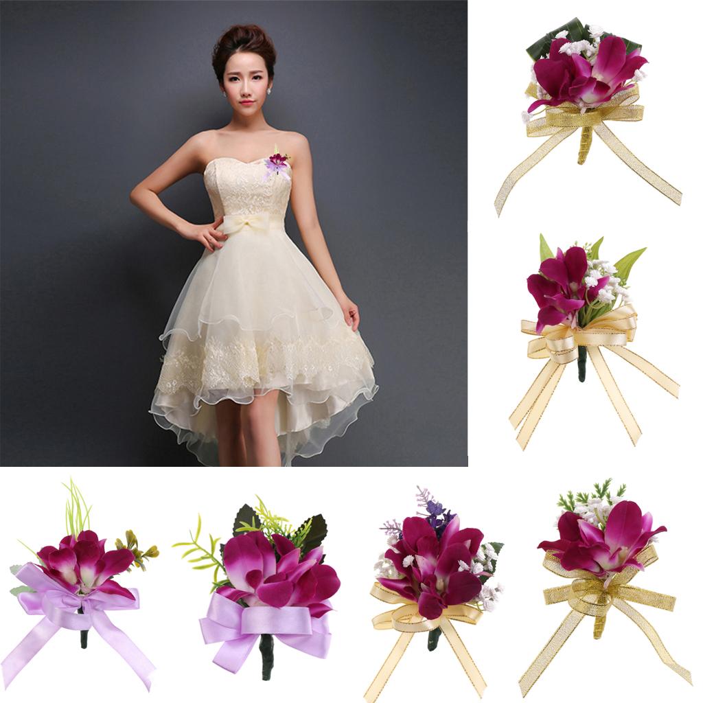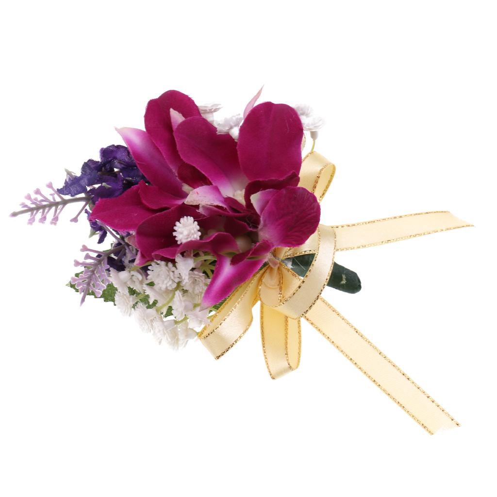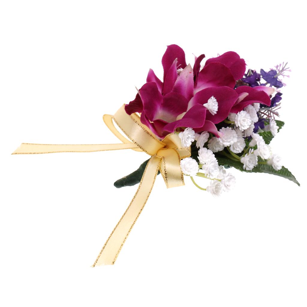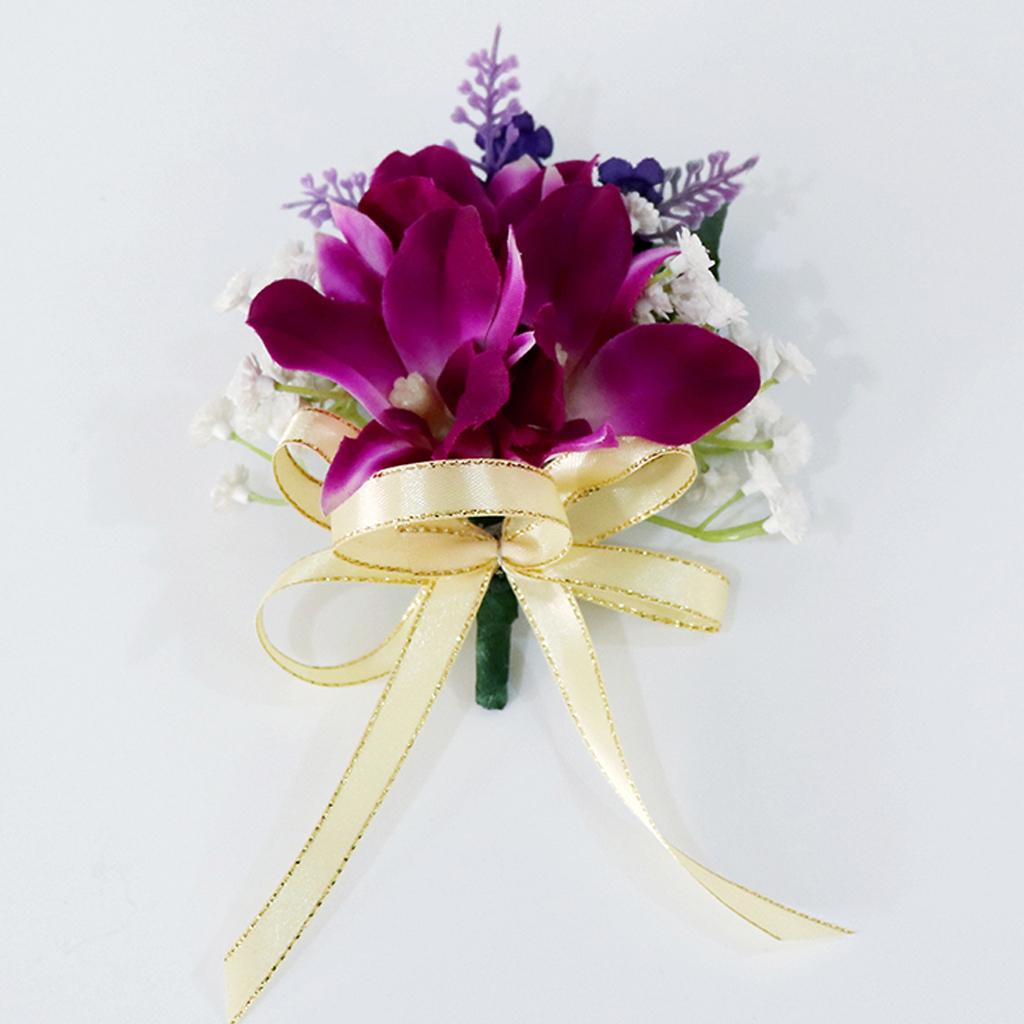 Artificial flower and leaf brooch corsage with ribbon bowknot decoration.