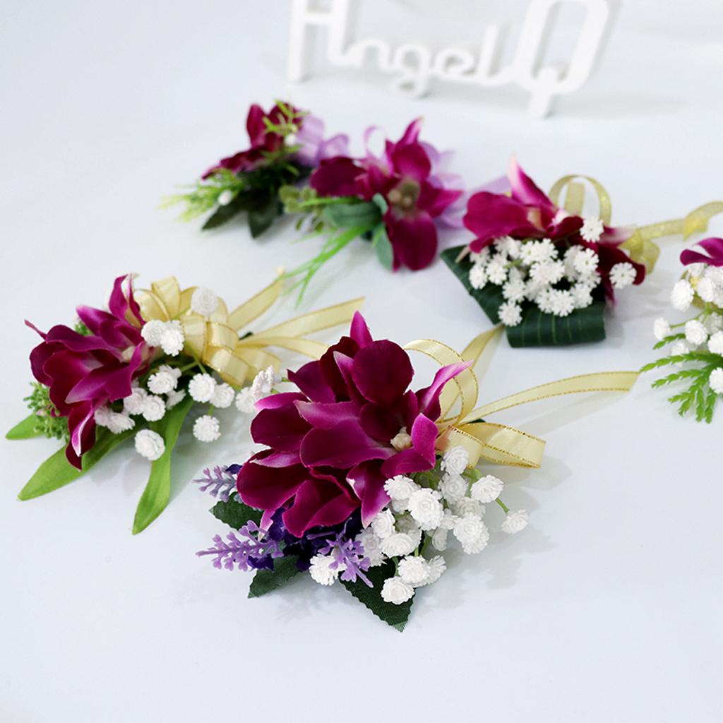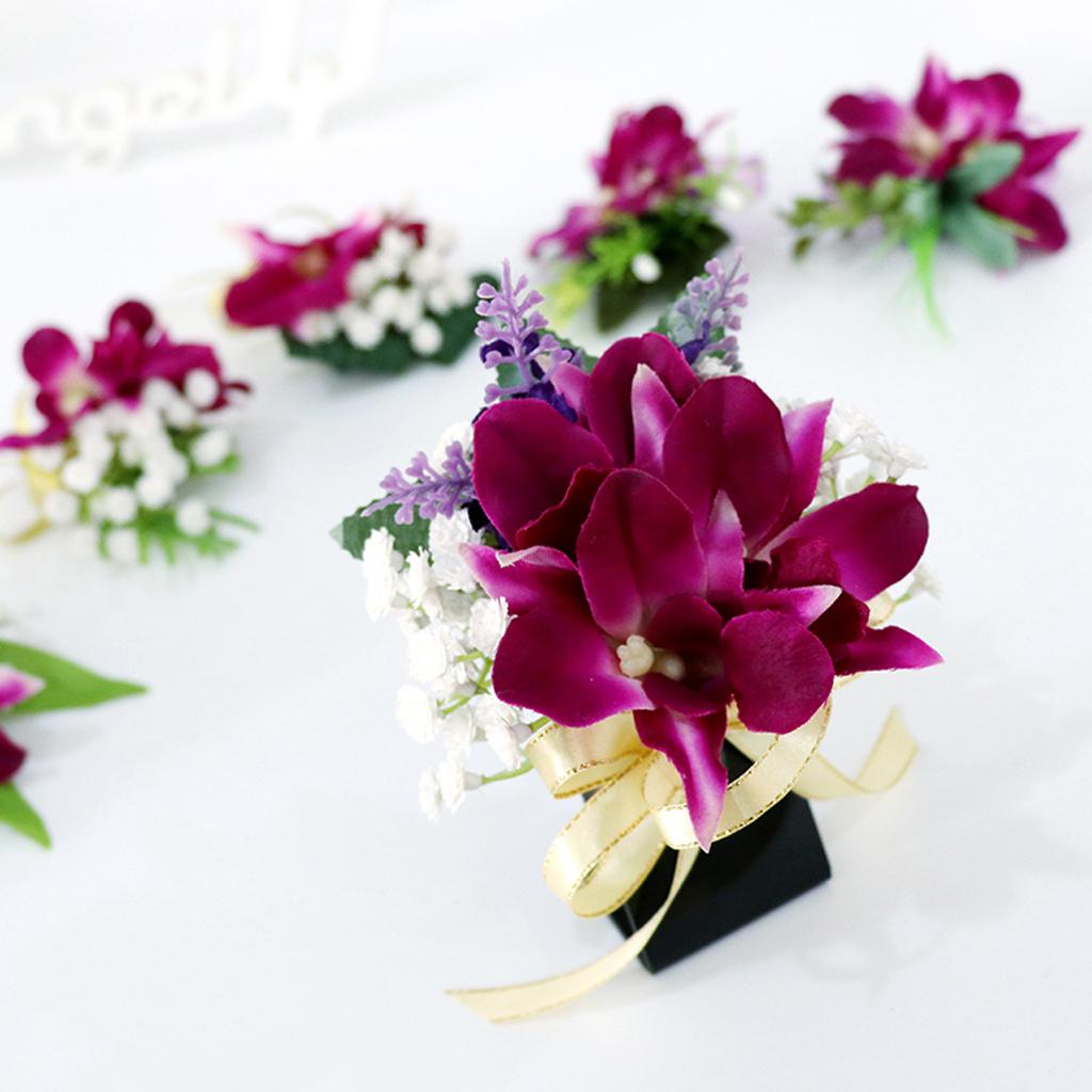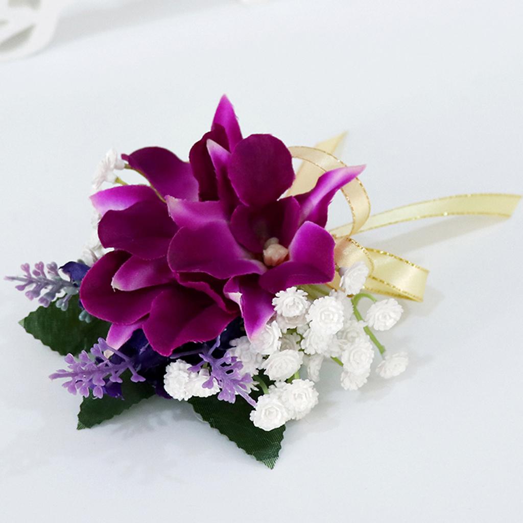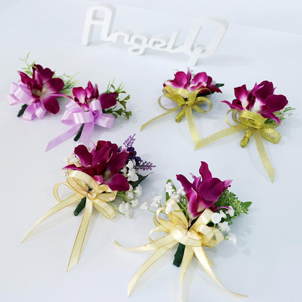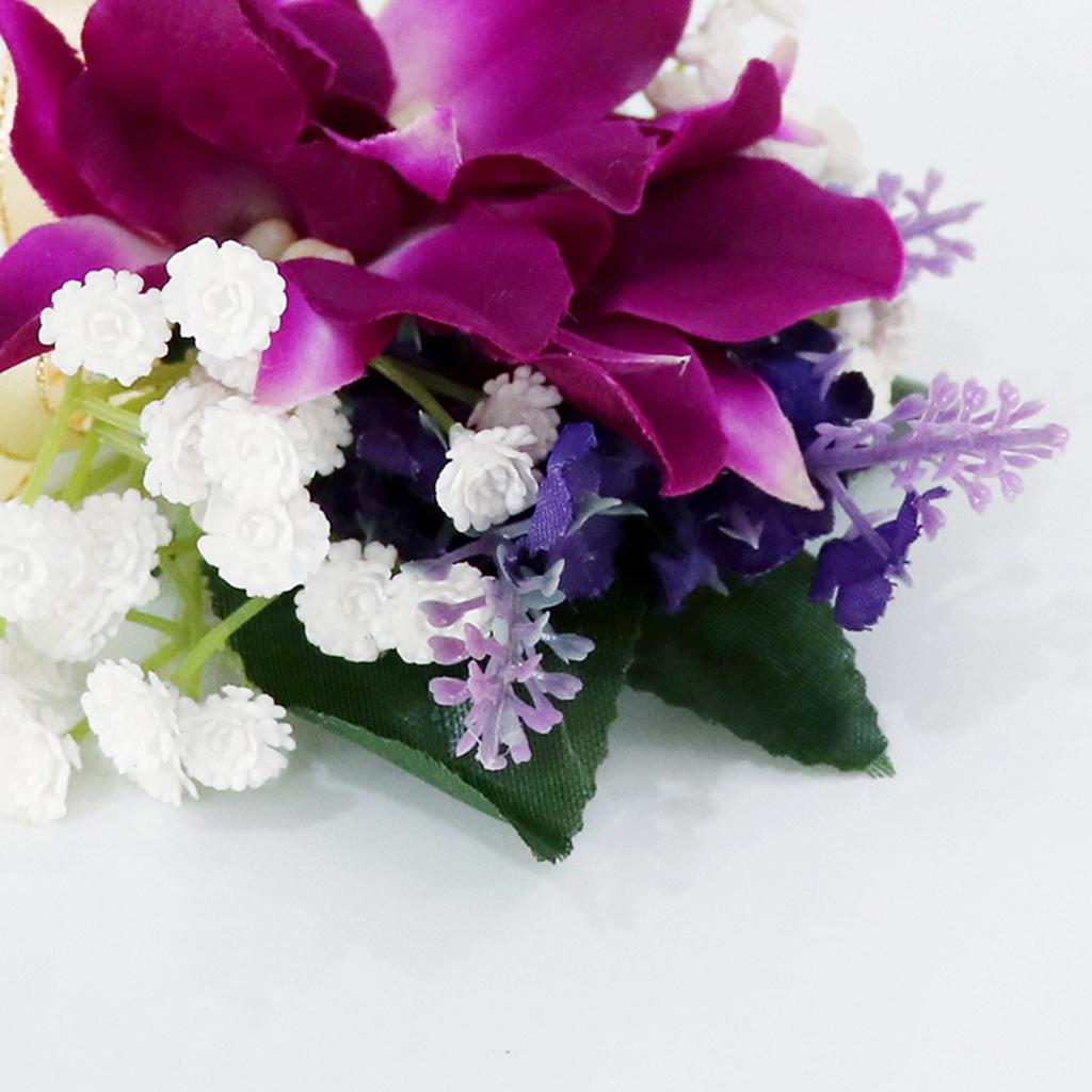 Artificial flower and leaf brooch corsage with ribbon bowknot decoration.