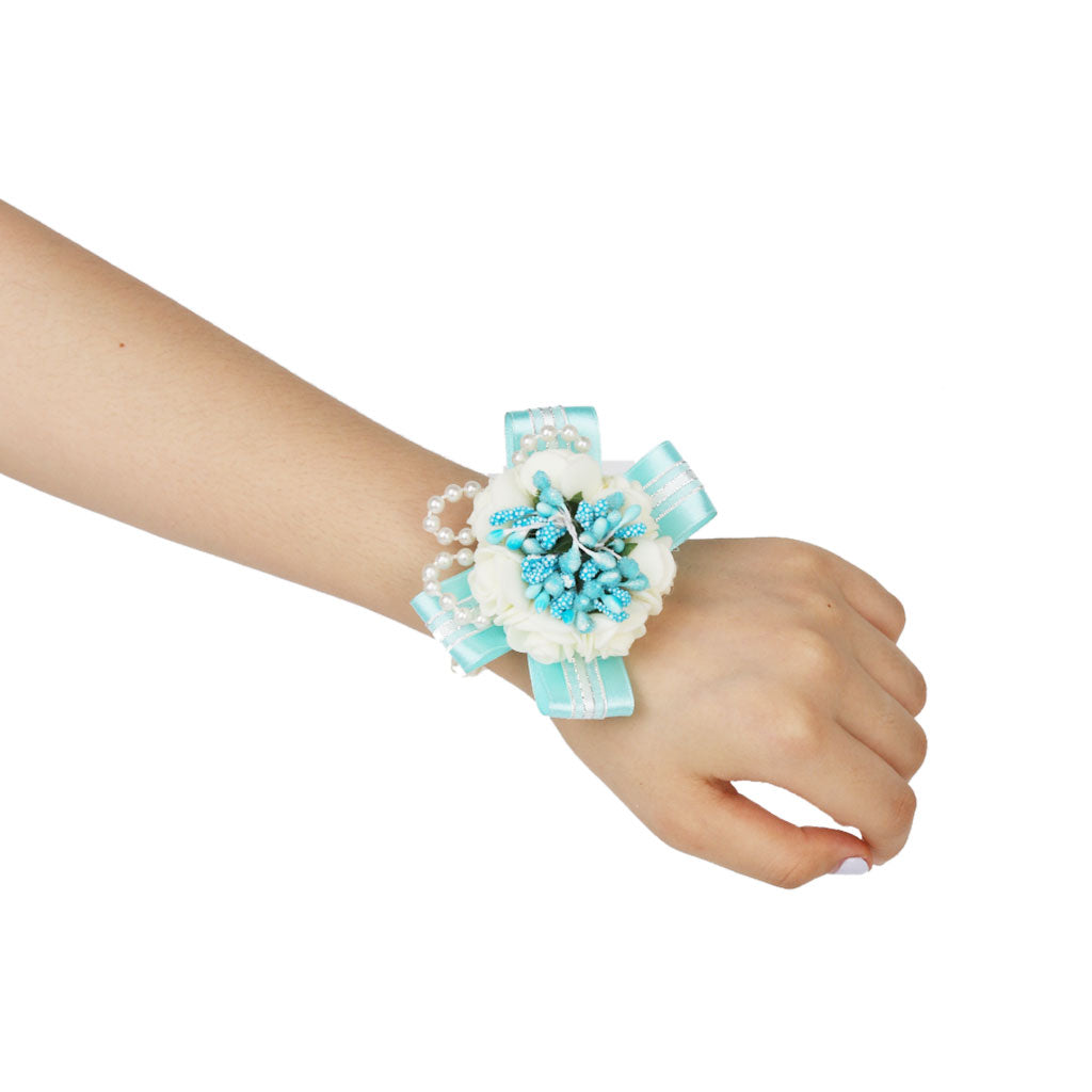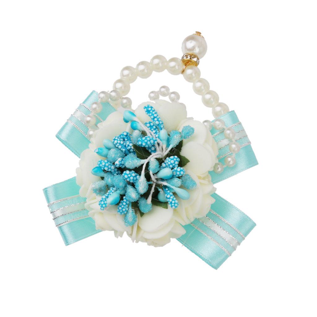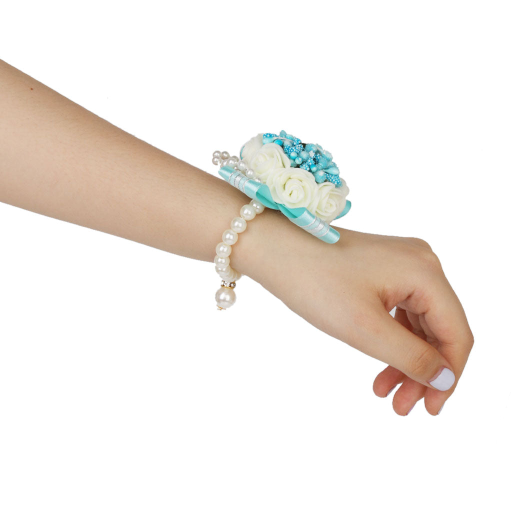 Wedding Bridal Bridemaid Pearl Blue Wrist Corsage Bracelet Hand Flower Decor