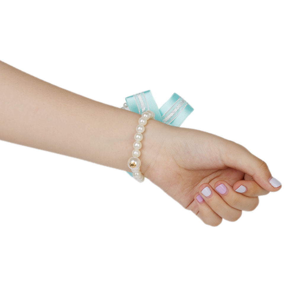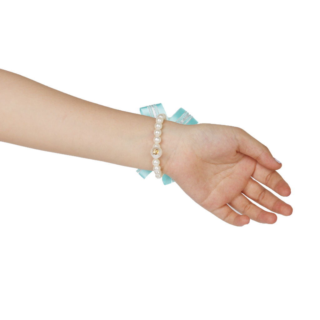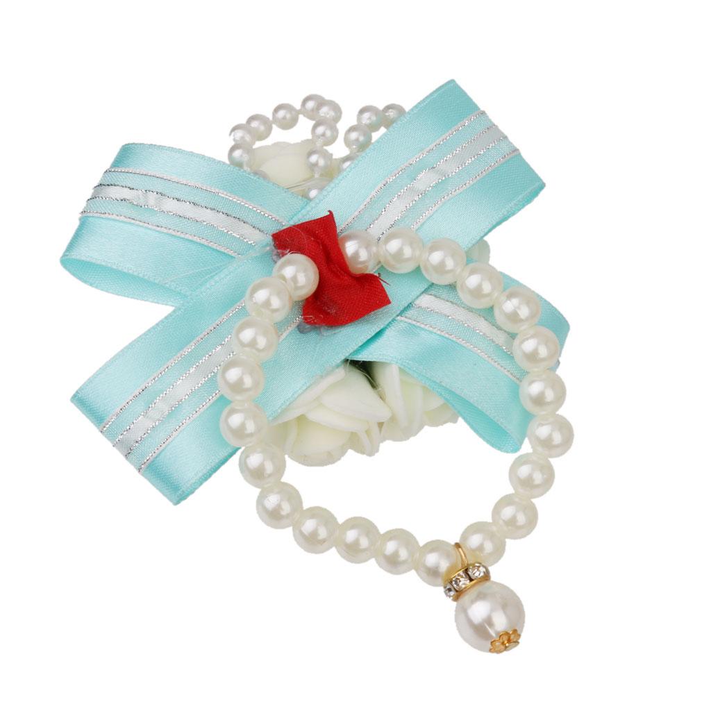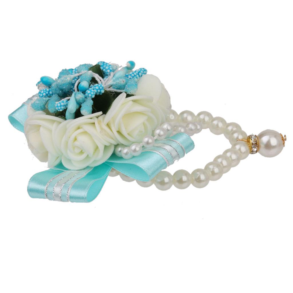 Wedding Bridal Bridemaid Pearl Blue Wrist Corsage Bracelet Hand Flower Decor