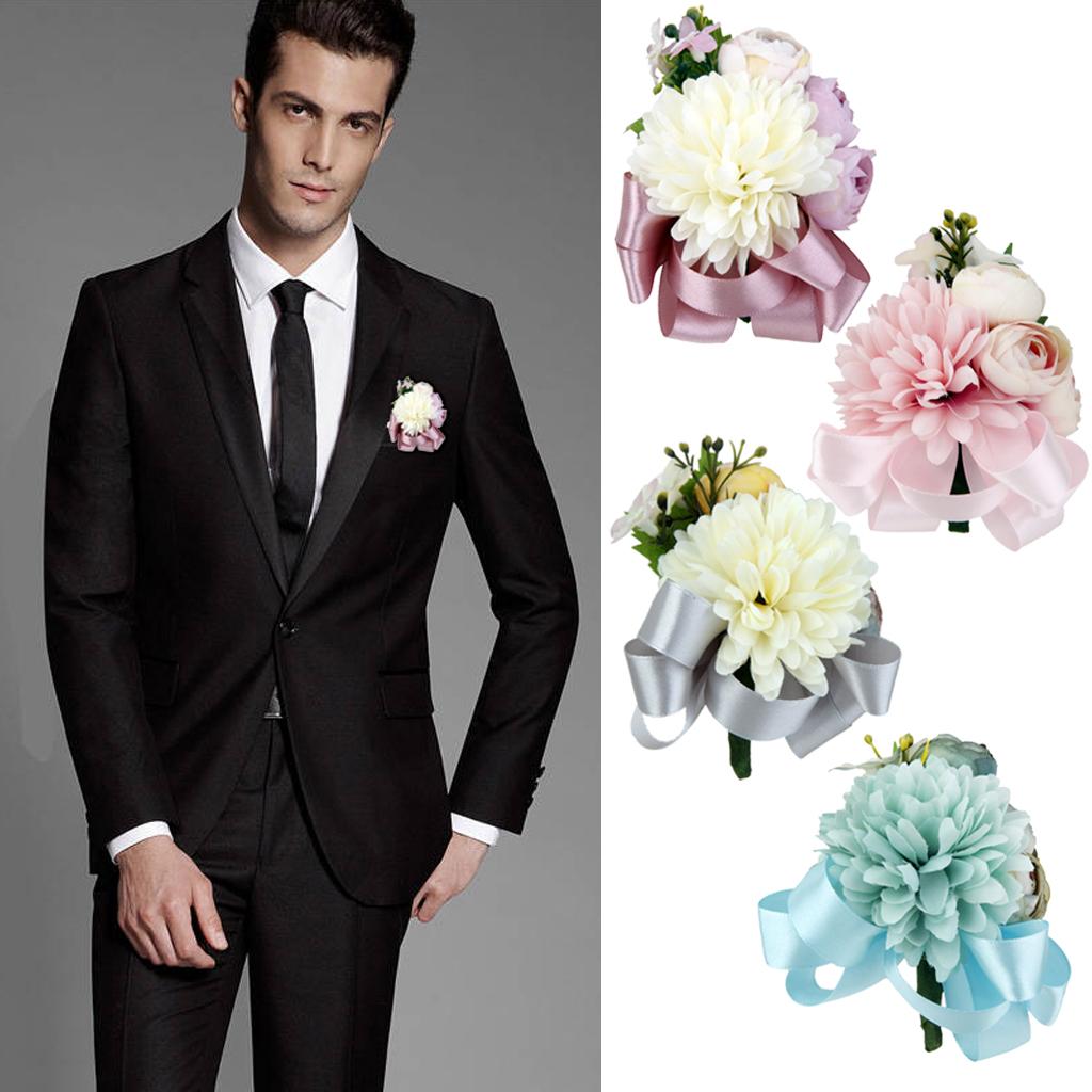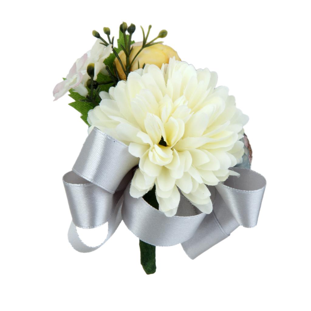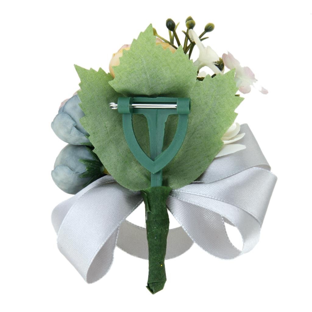 Wedding Bridal Groom Men Tuxedo Boutonniere Corsage Flower Brooch Grey Satin