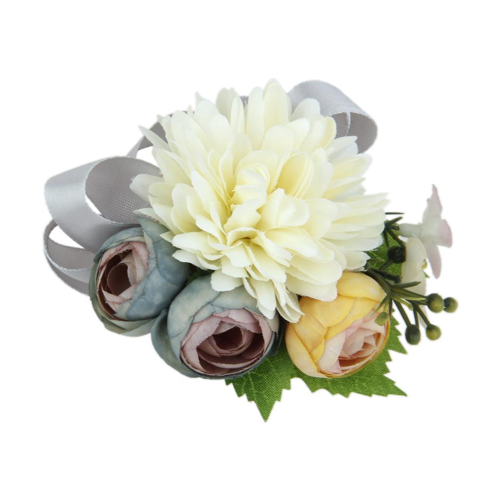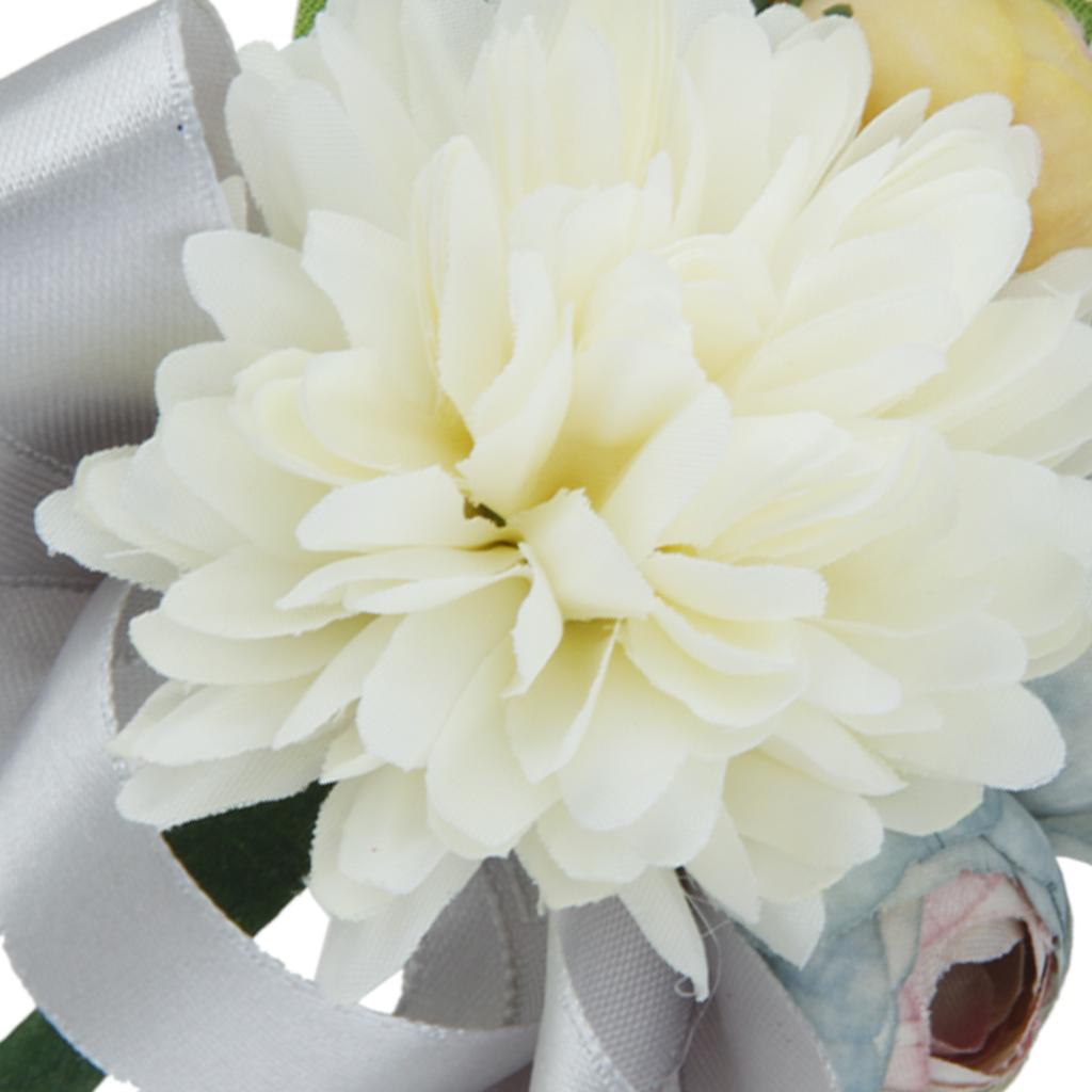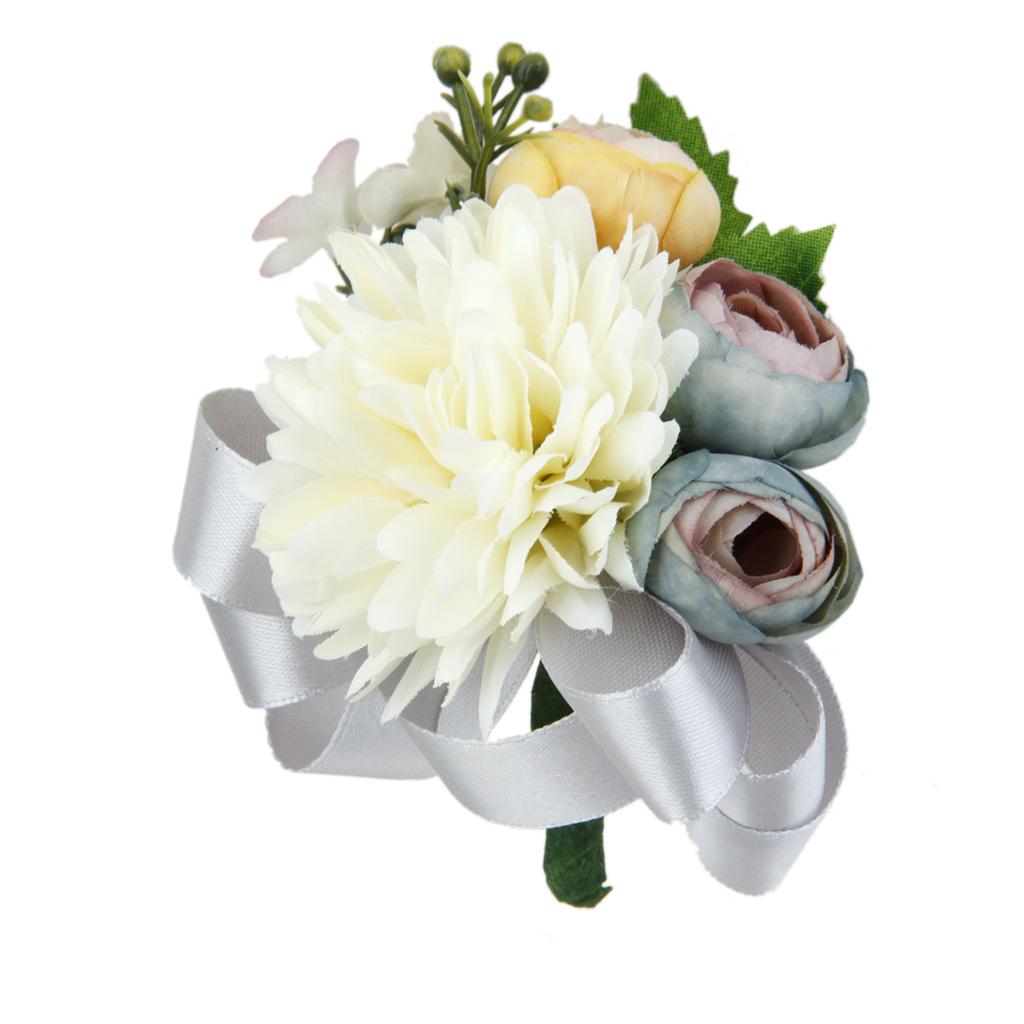 Wedding Bridal Groom Men Tuxedo Boutonniere Corsage Flower Brooch Grey Satin