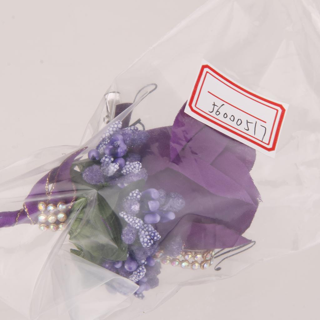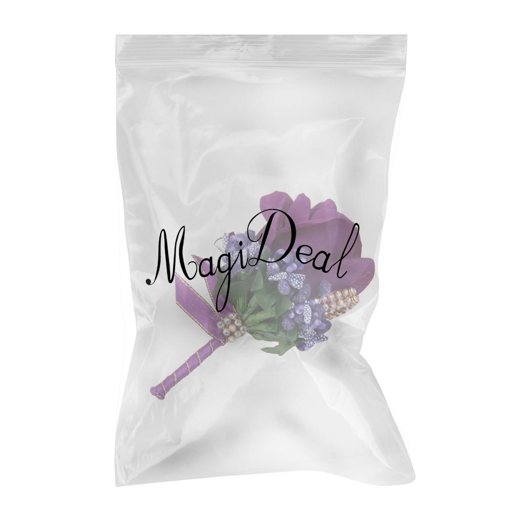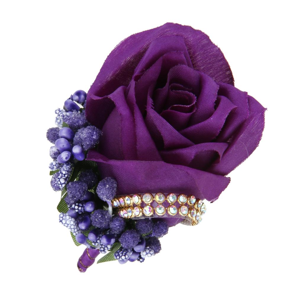Wedding Bridal Men Groom Crystal Boutonniere Corsage Rose Silk Flower Purple