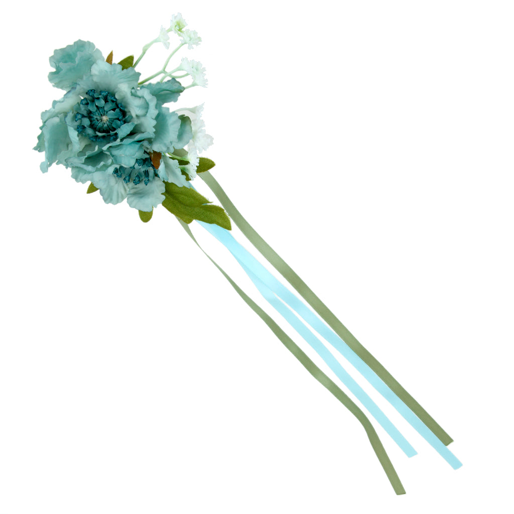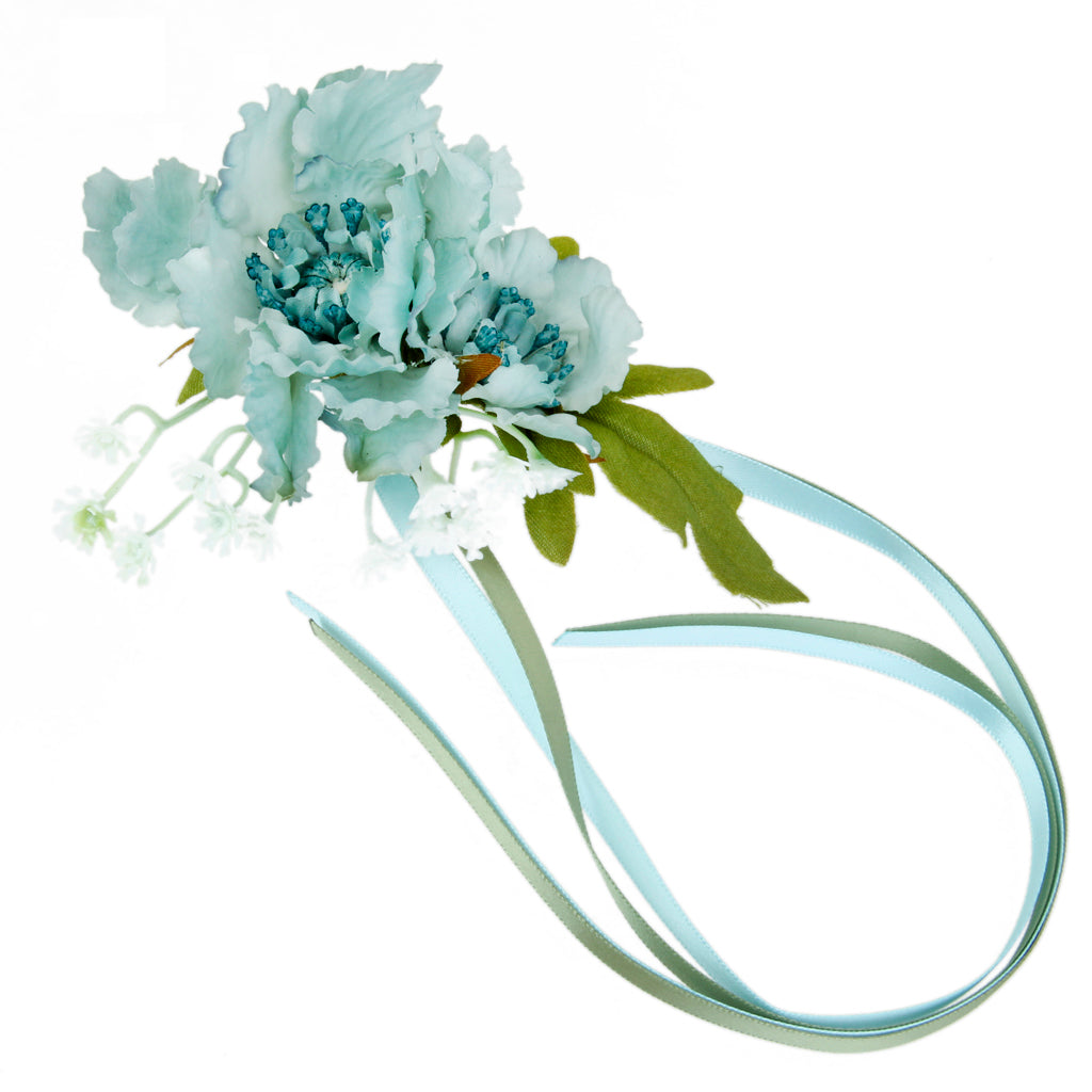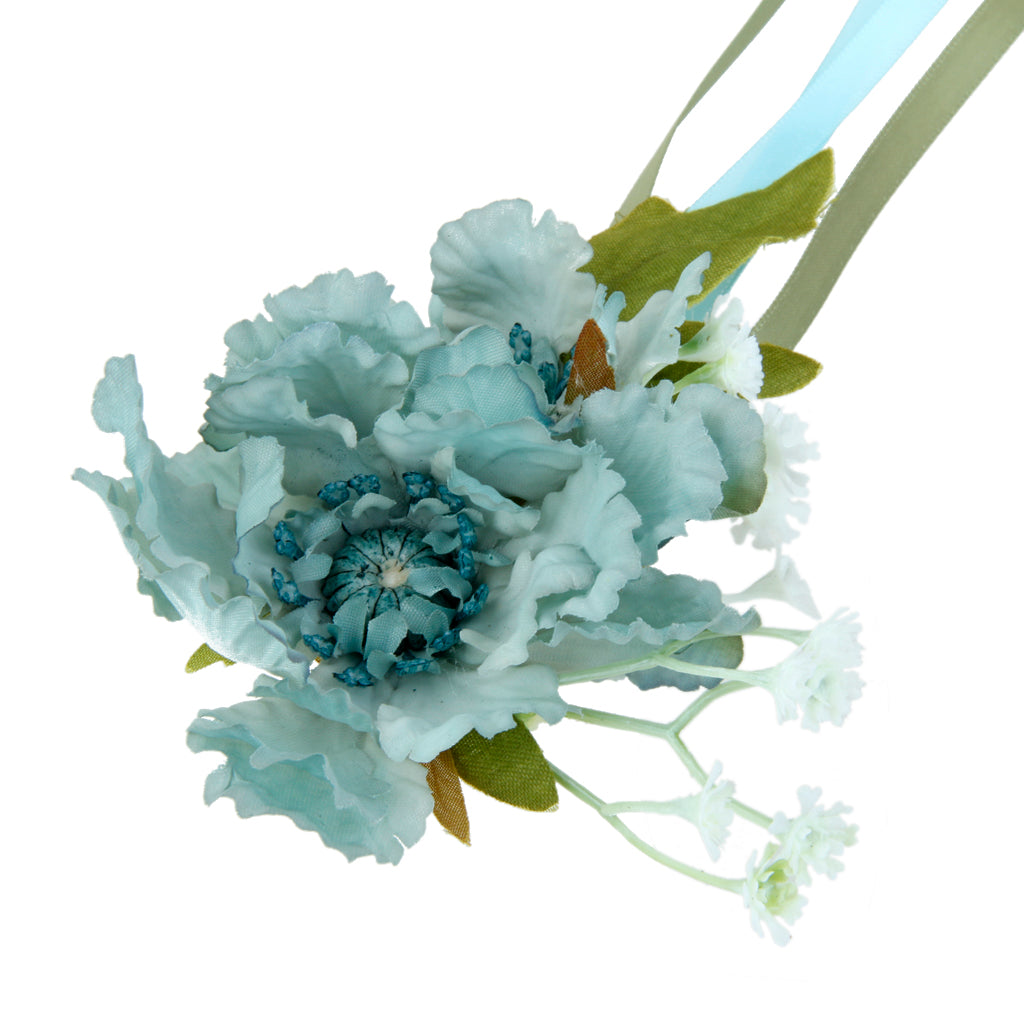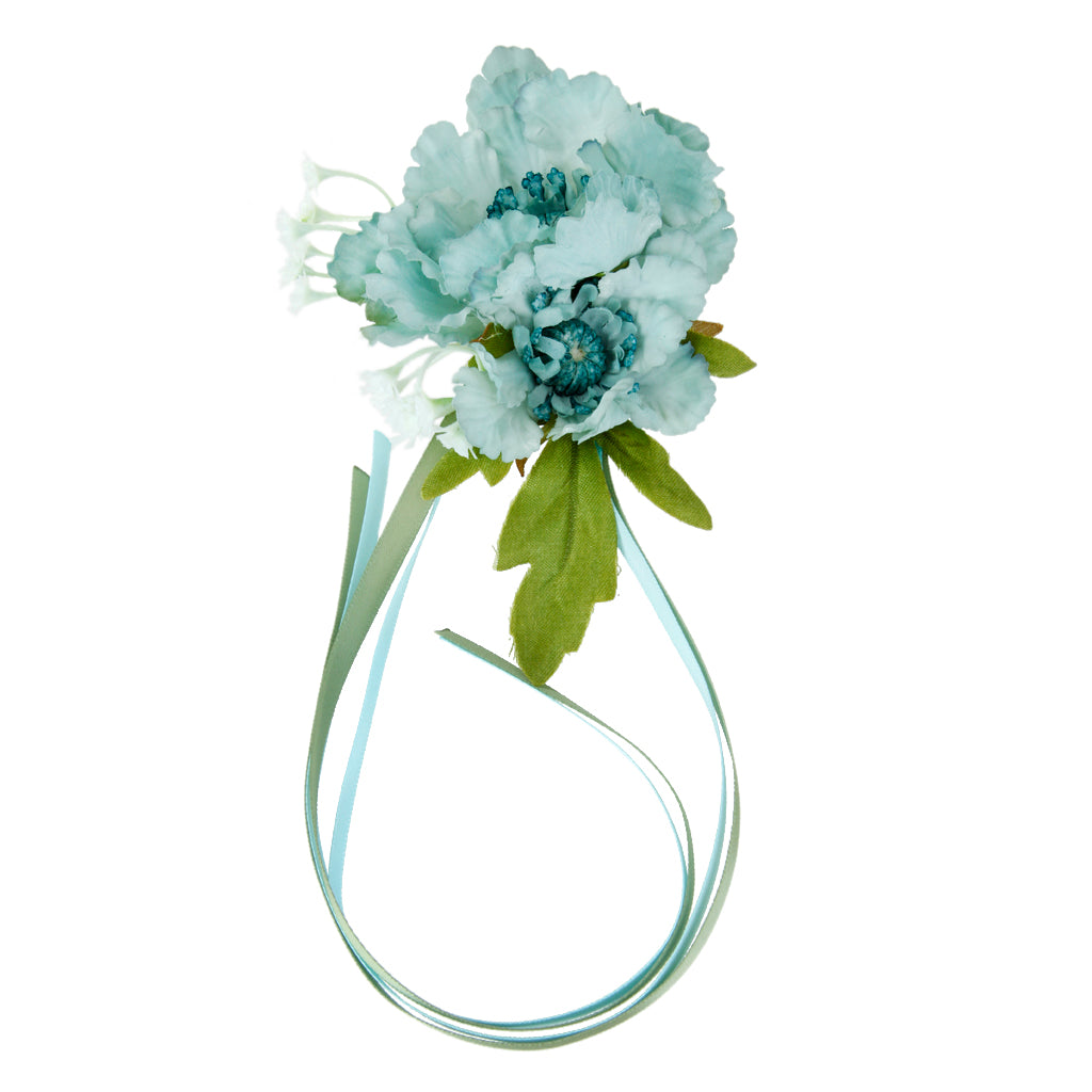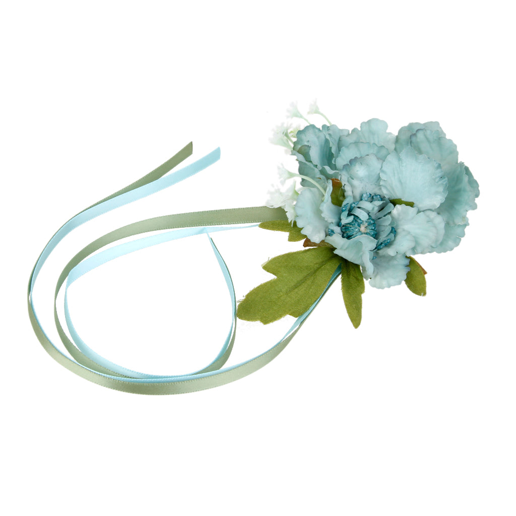 Wedding Bride Bridesmaid Wrist Corsage Artificial Sky Blue Penoy Flower