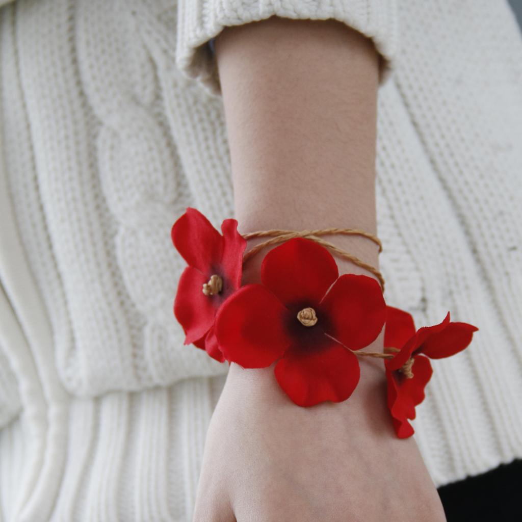 Wedding Bridemaid Flower Girl Wrist Flower Red