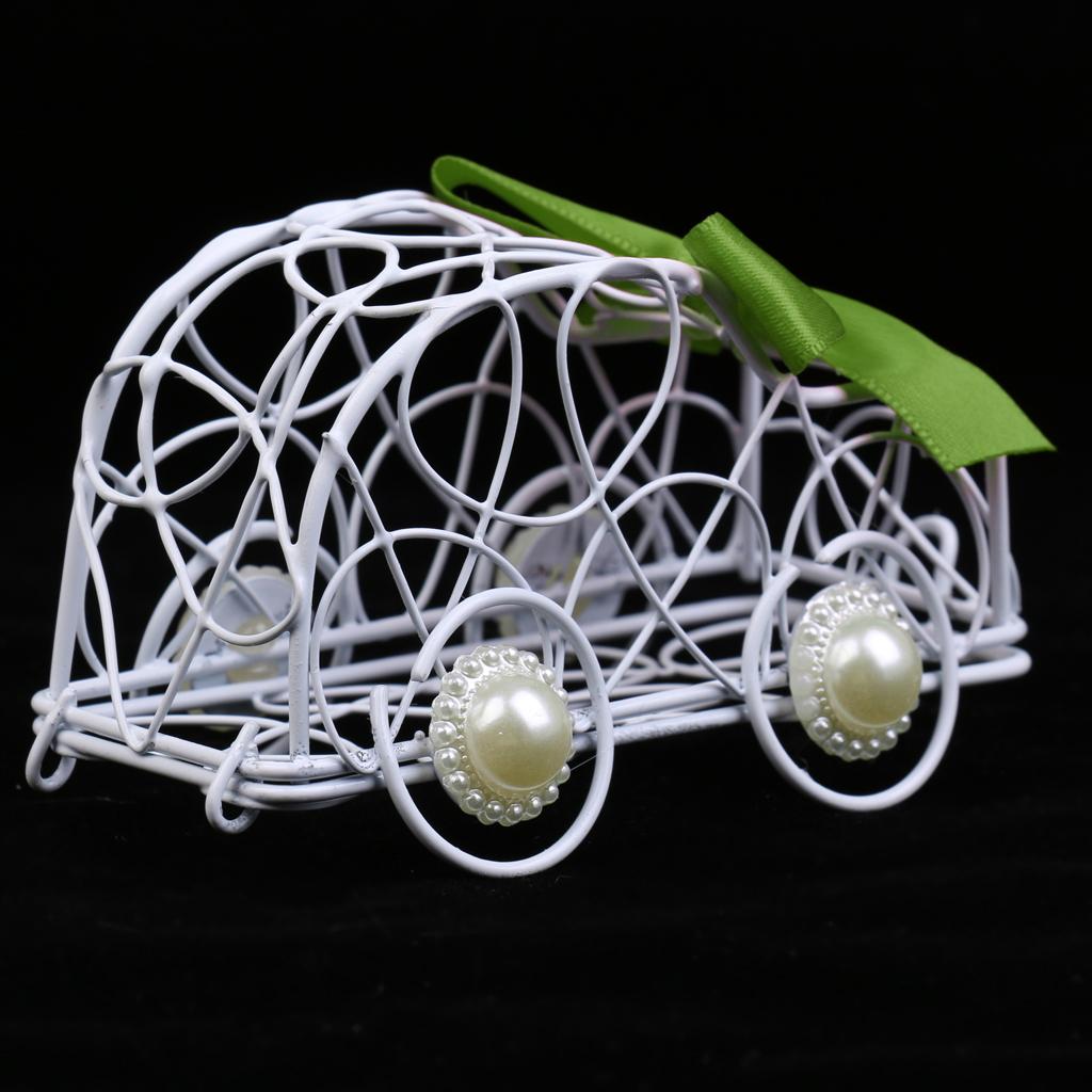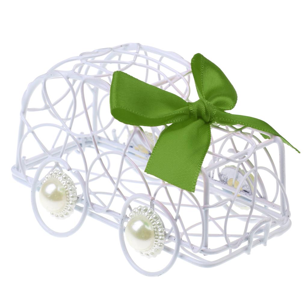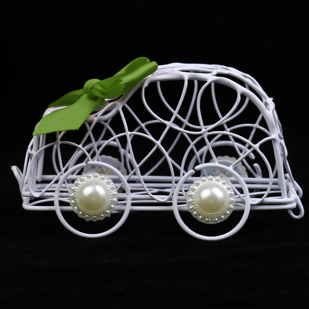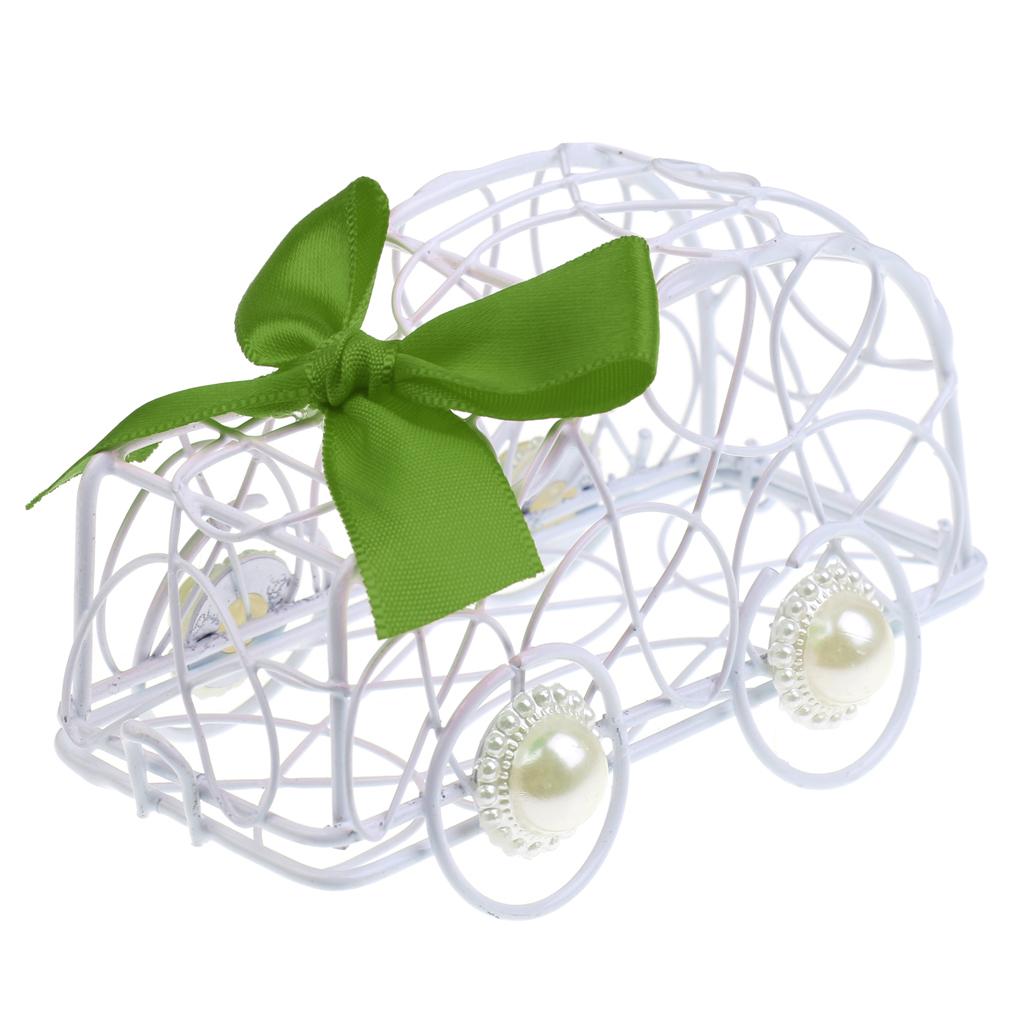 Novelty metal wedding car shape candy box with pearl wheels and ribbon bowknot