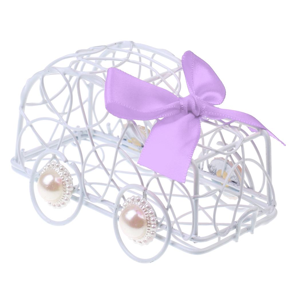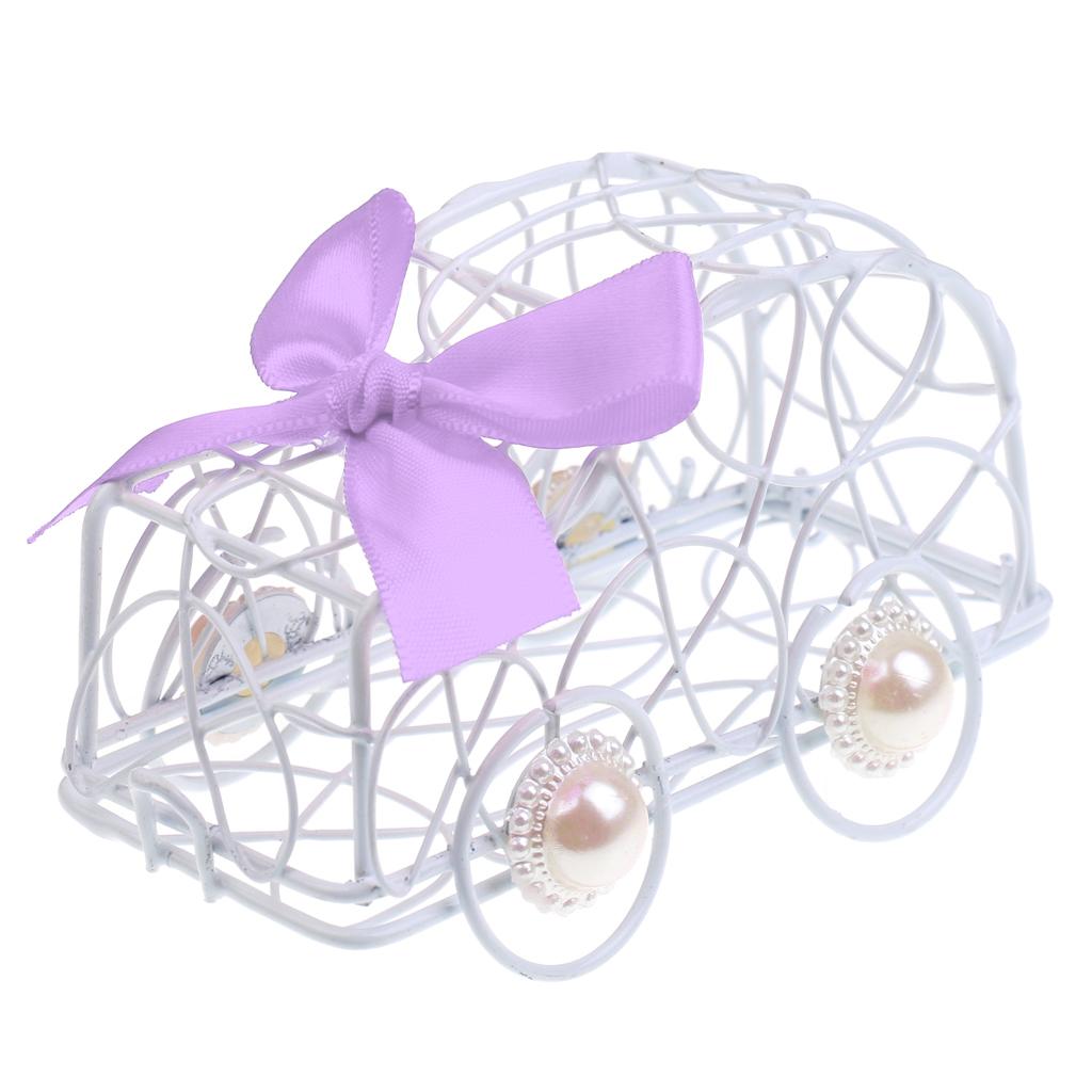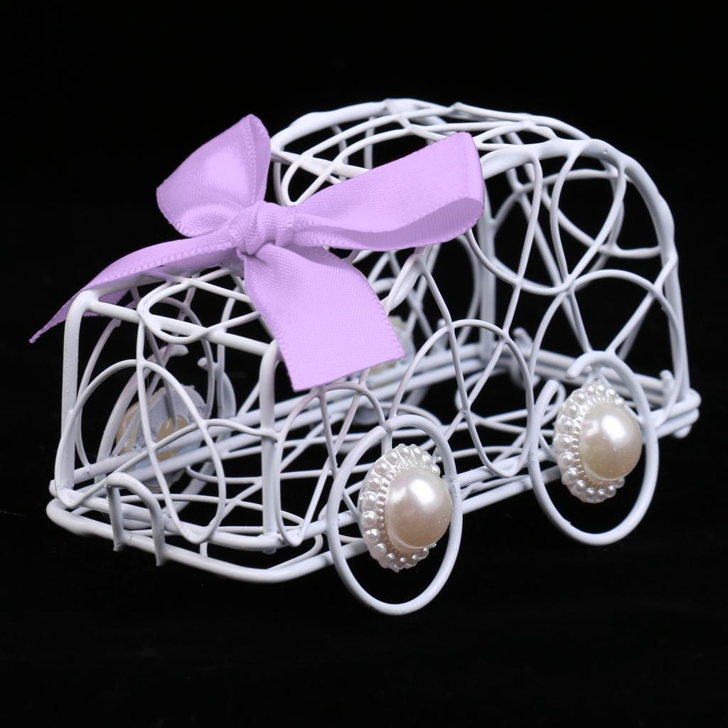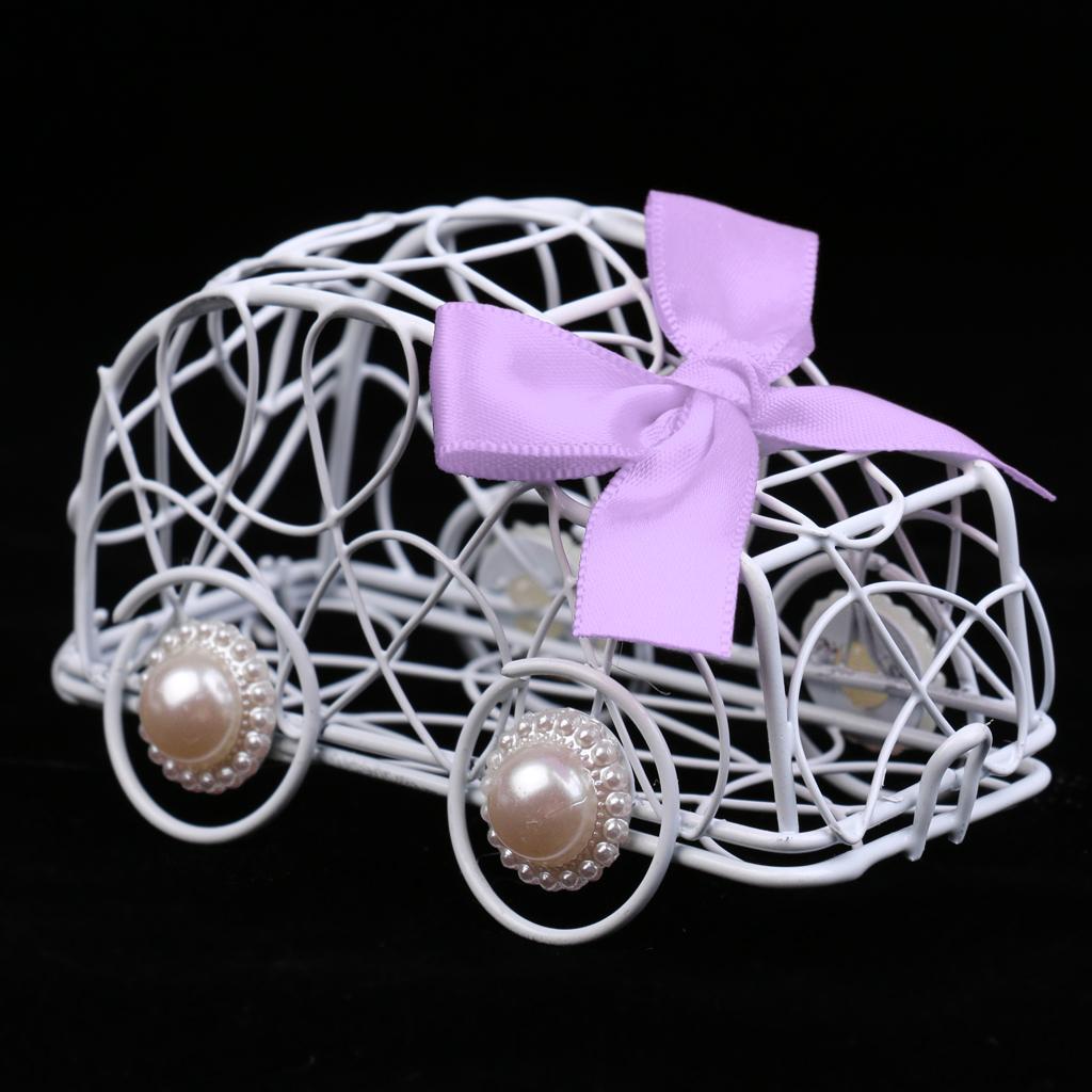 Novelty metal wedding car shape candy box with pearl wheels and ribbon bowknot