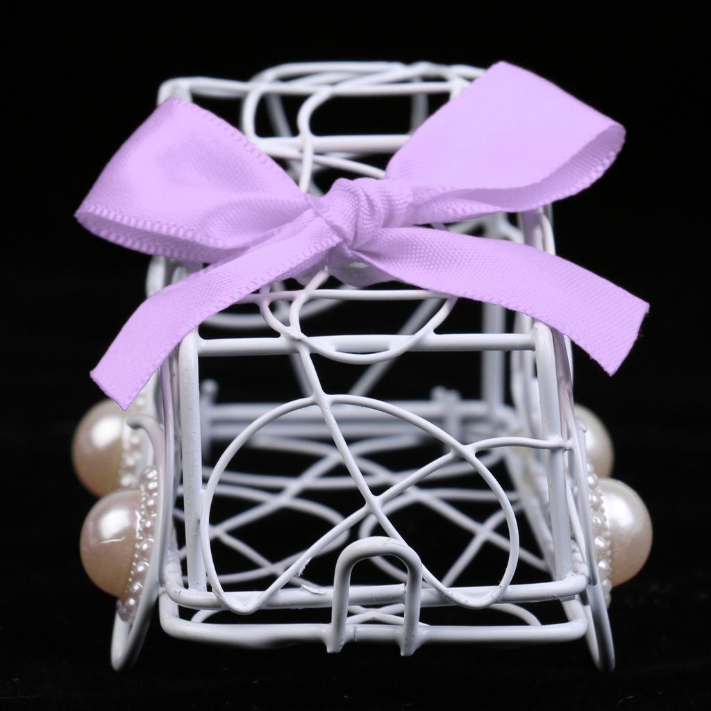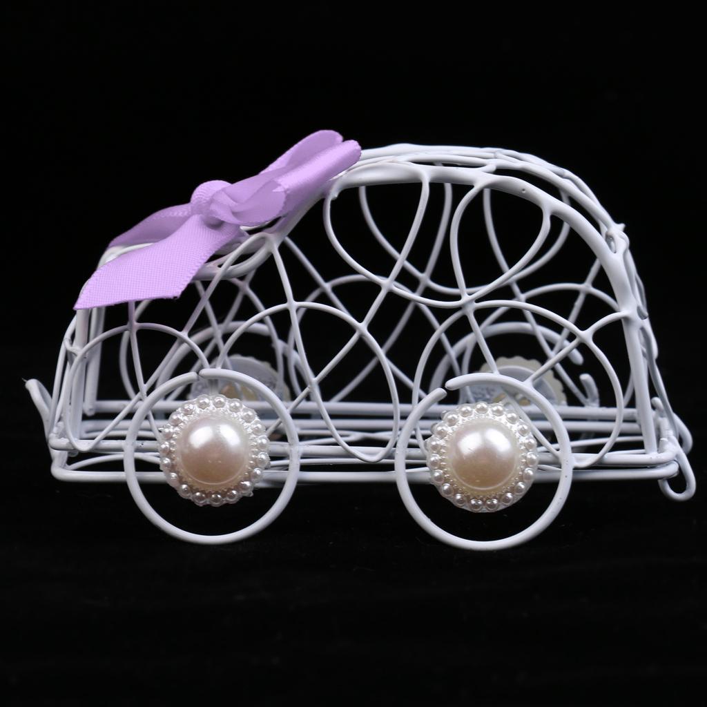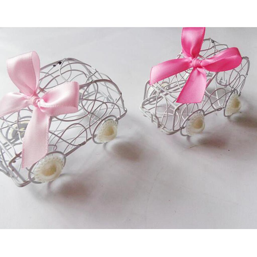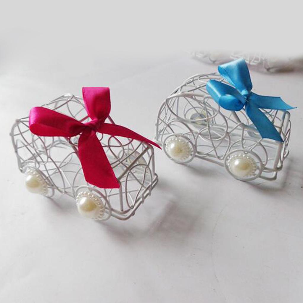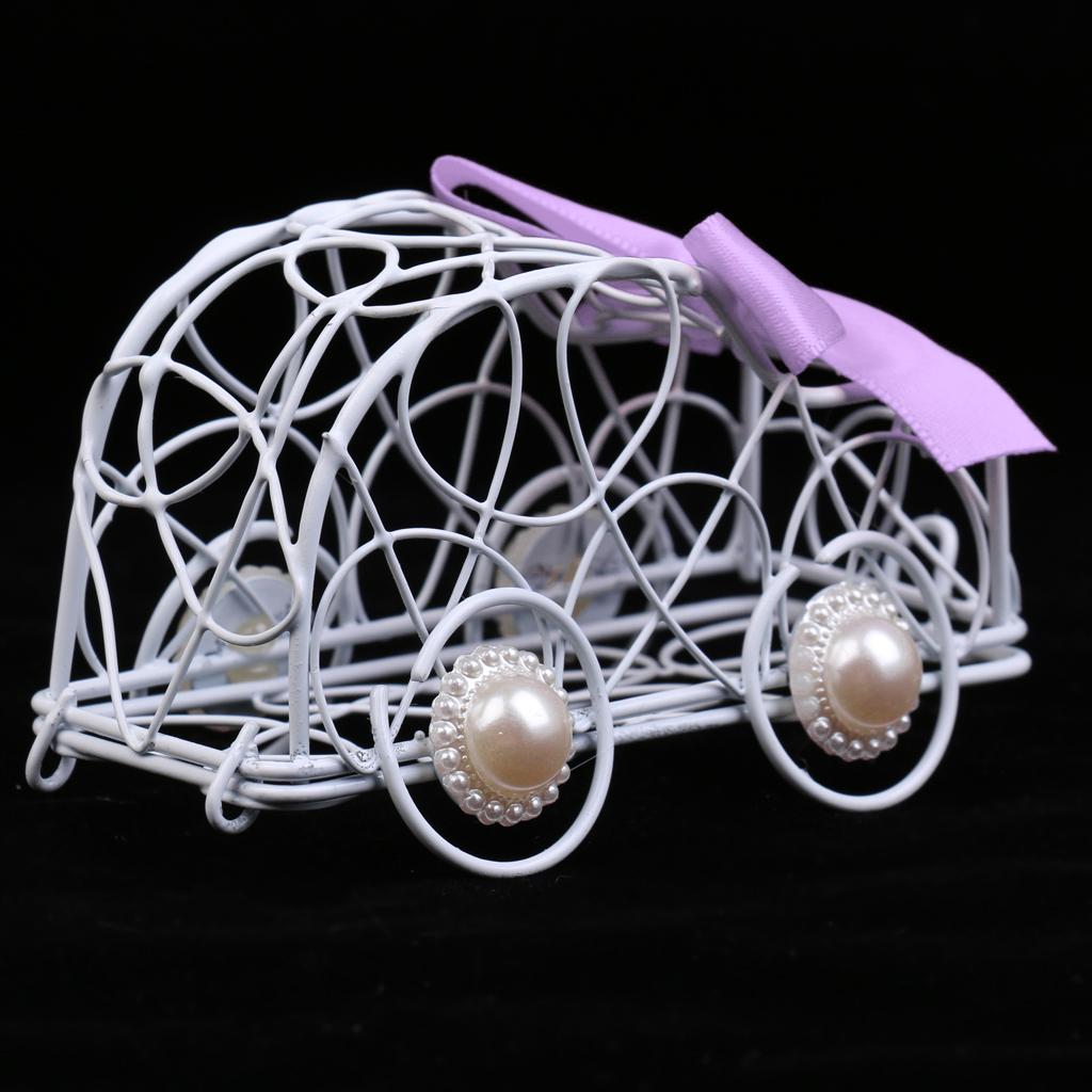Novelty metal wedding car shape candy box with pearl wheels and ribbon bowknot