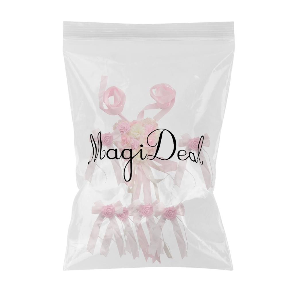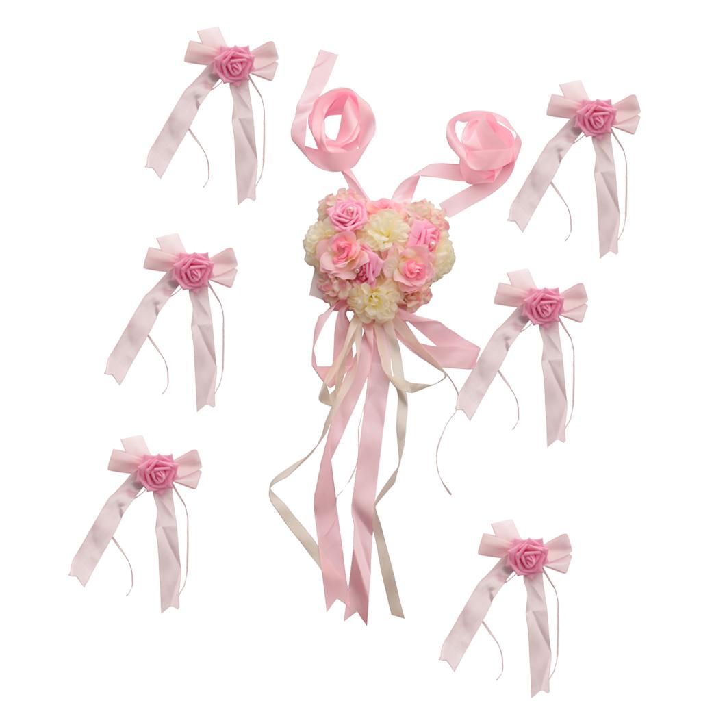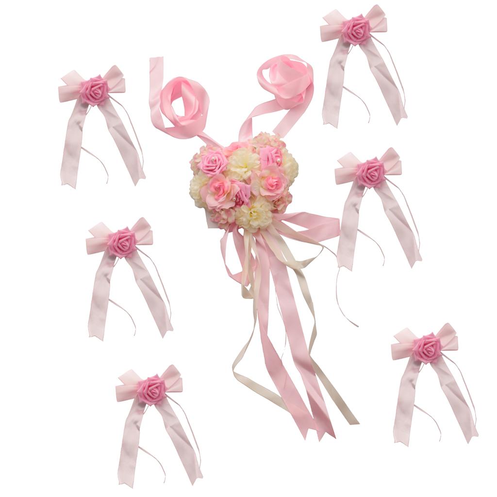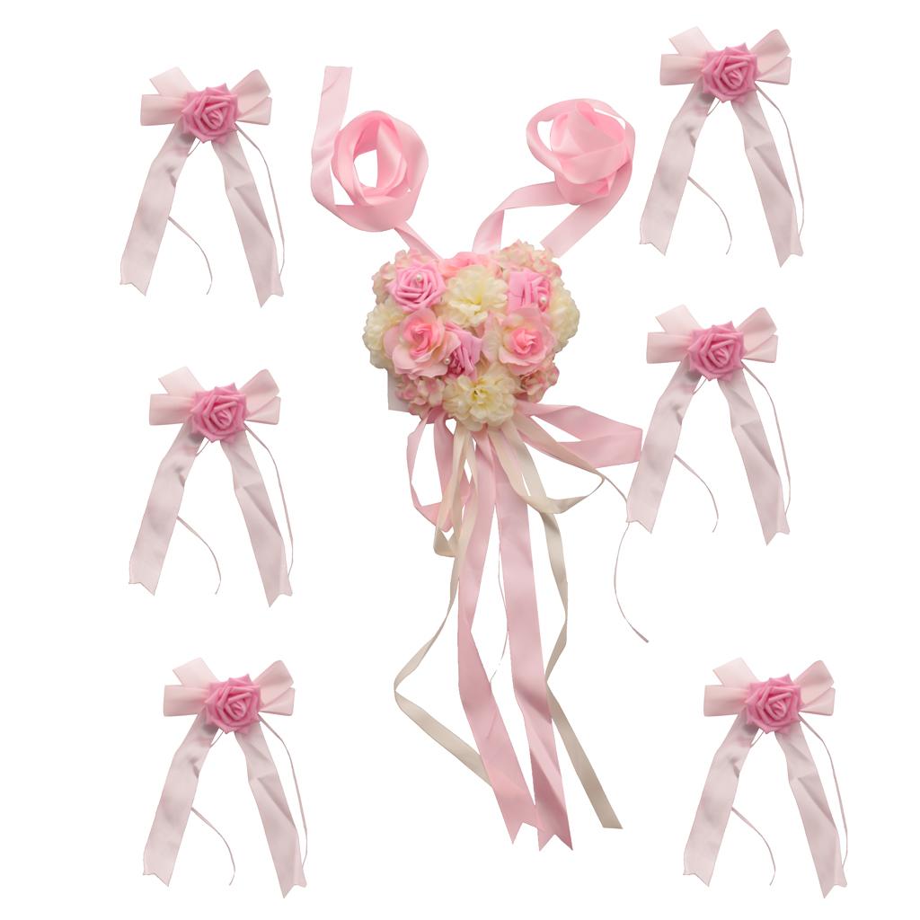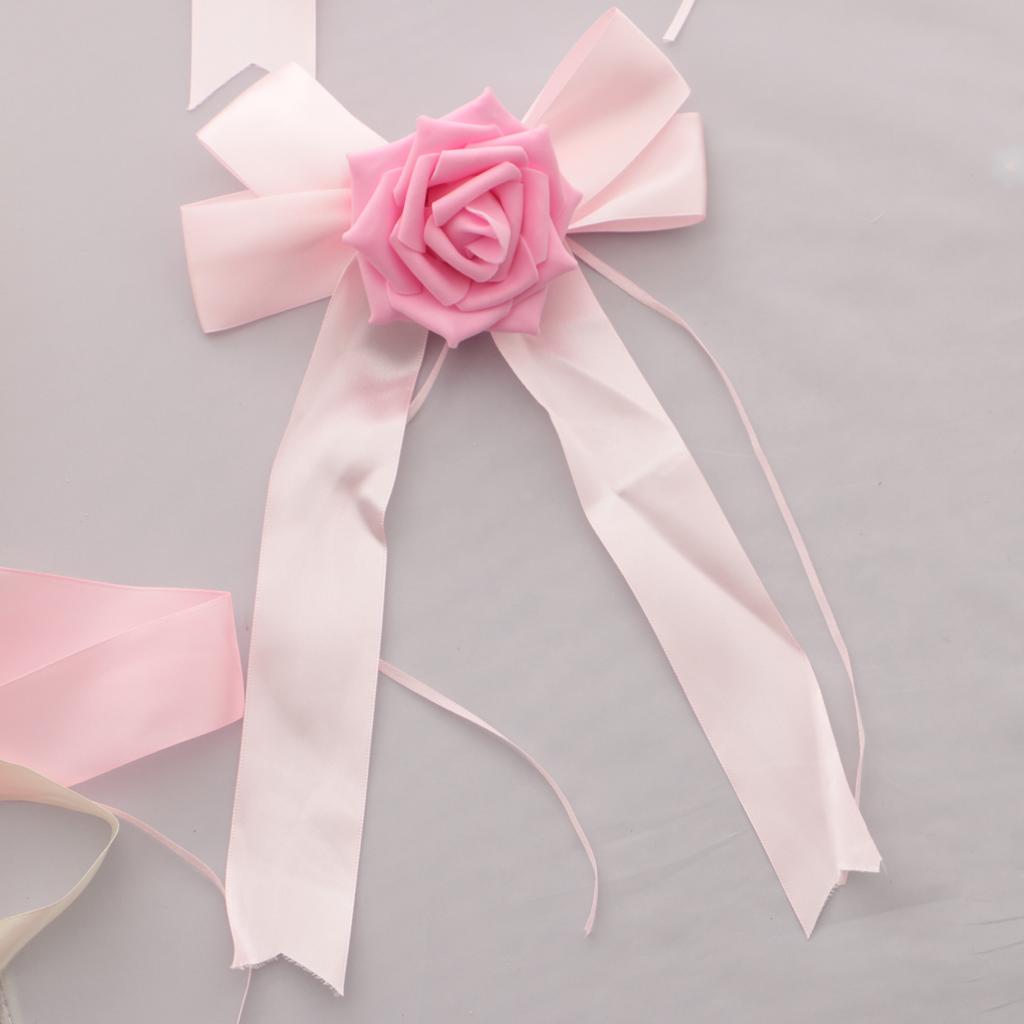 Wedding Car Decoration Kits 5 Meters Ribbons & 6 Large Flower Bow Light Pink