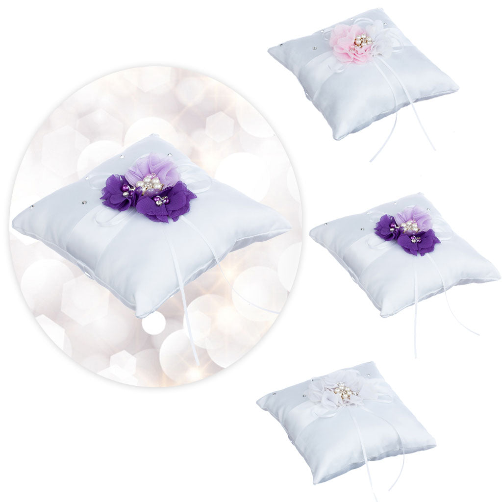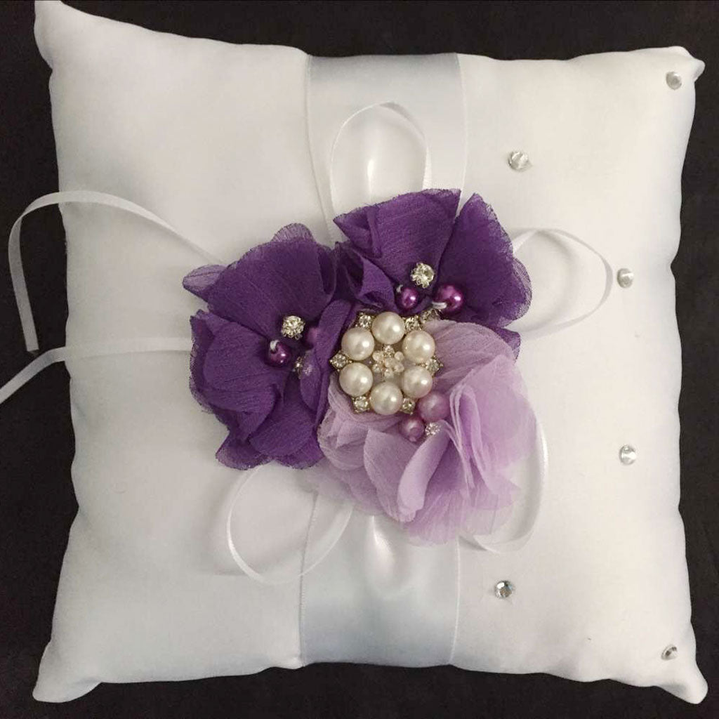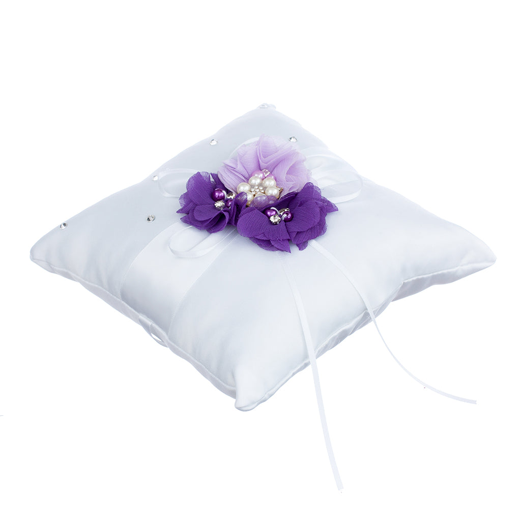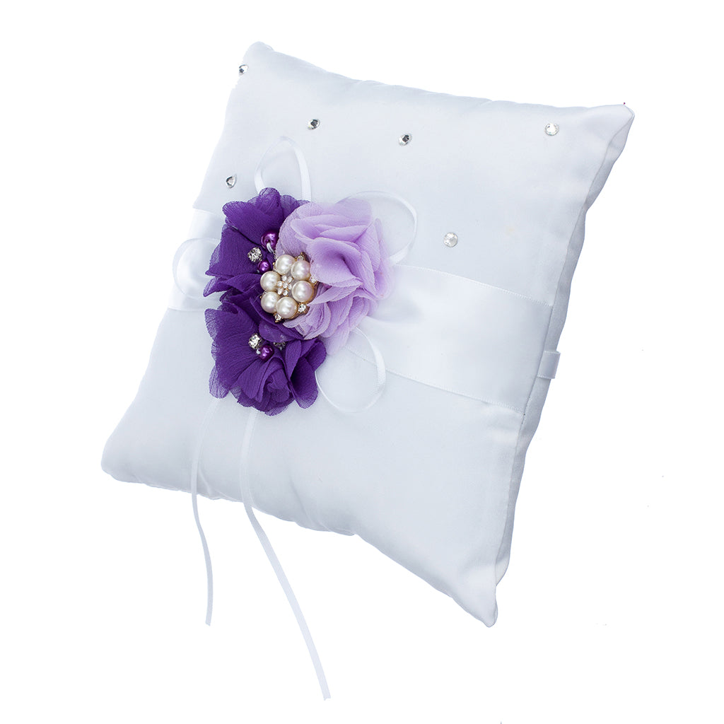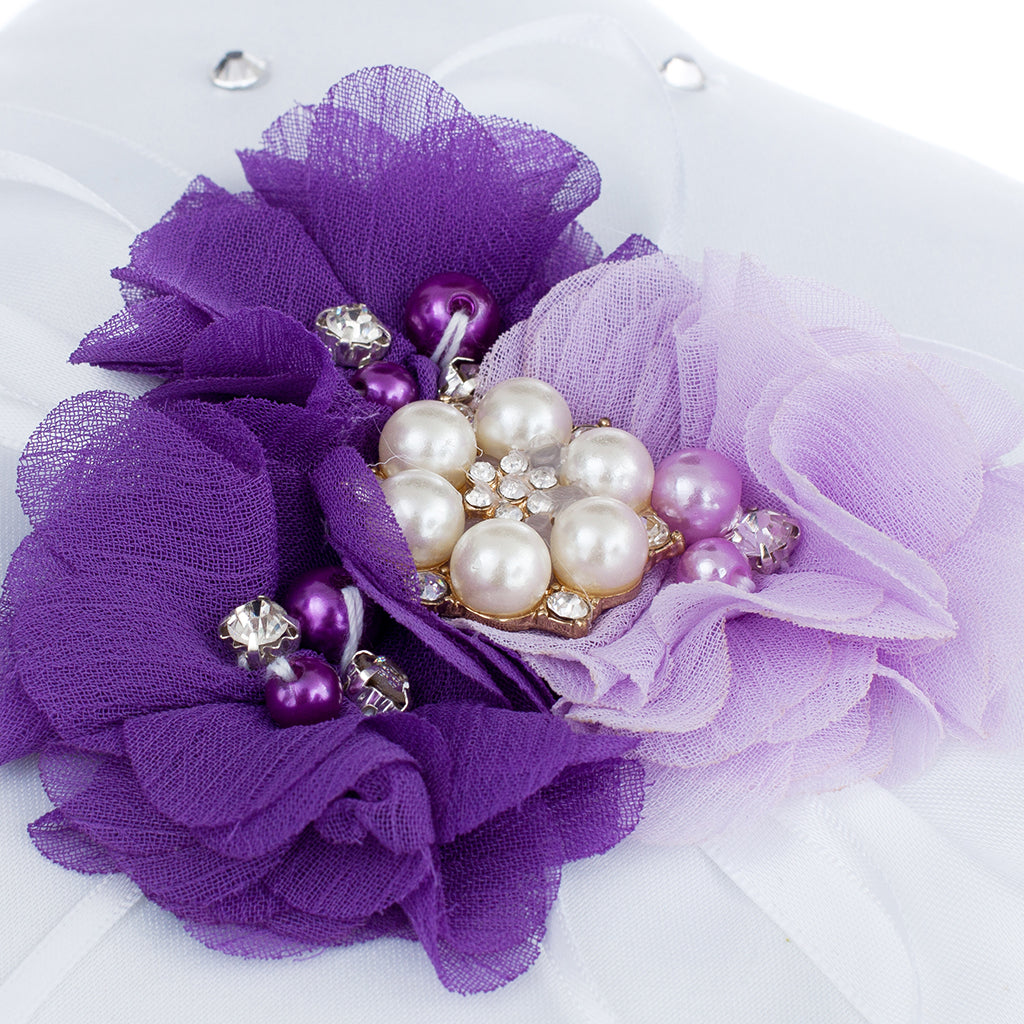 Wedding Ceremony Ring Pillow Cushion Bearer Crystal Pearl Purple Flower