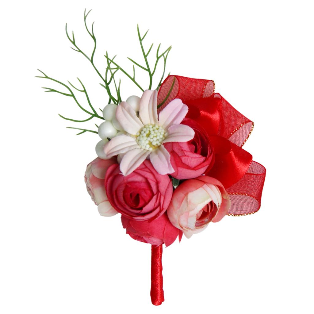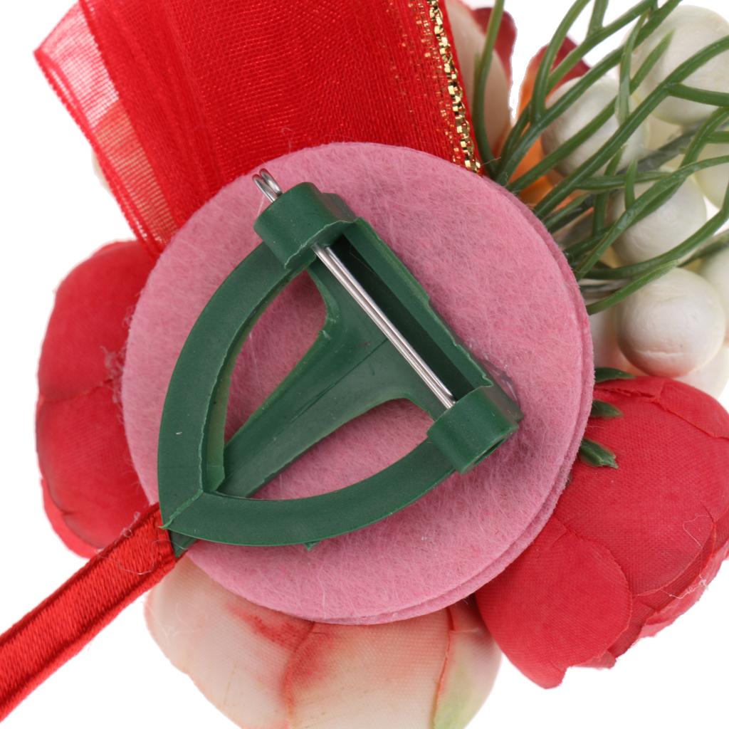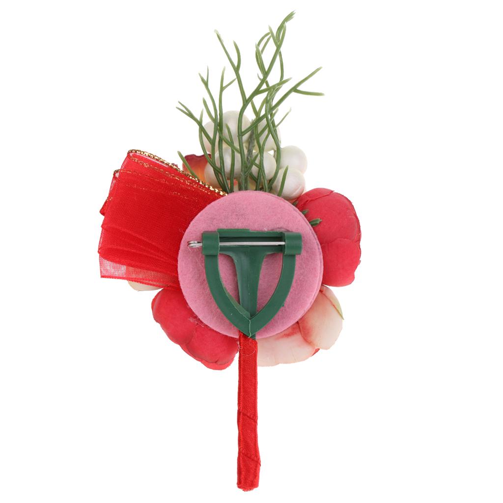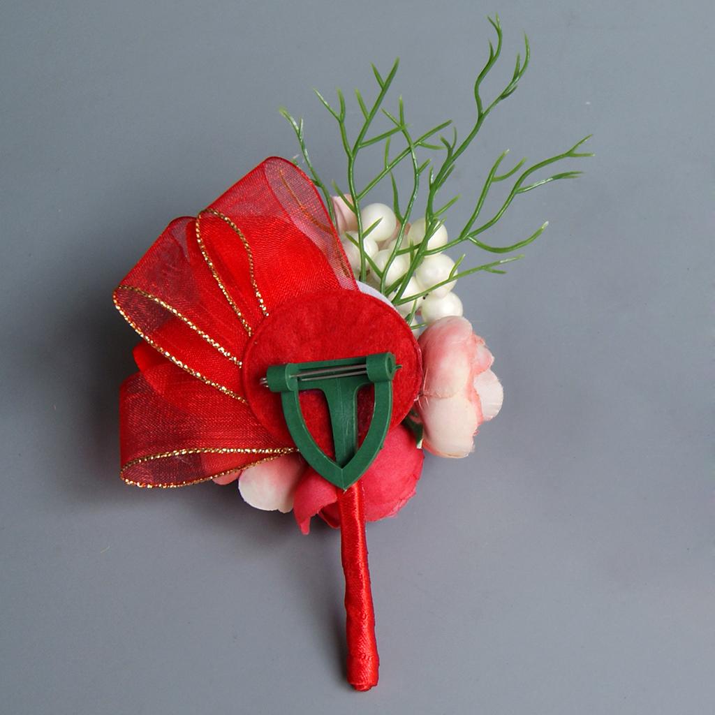 Wedding Groom Bride Boutonniere Corsage Flower Brooch Pin Ribbon Red