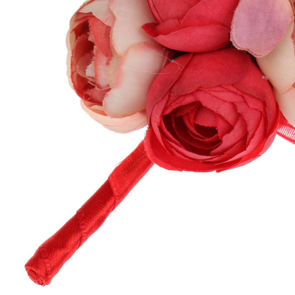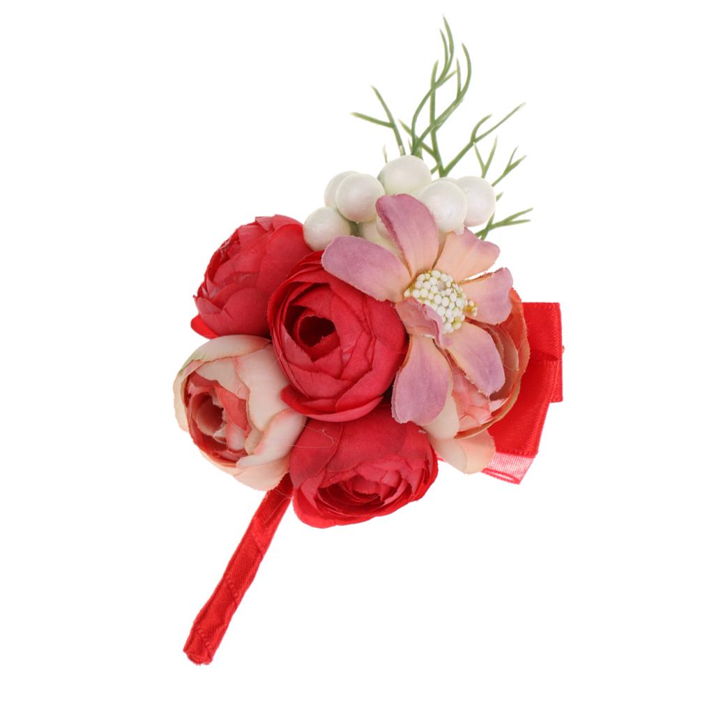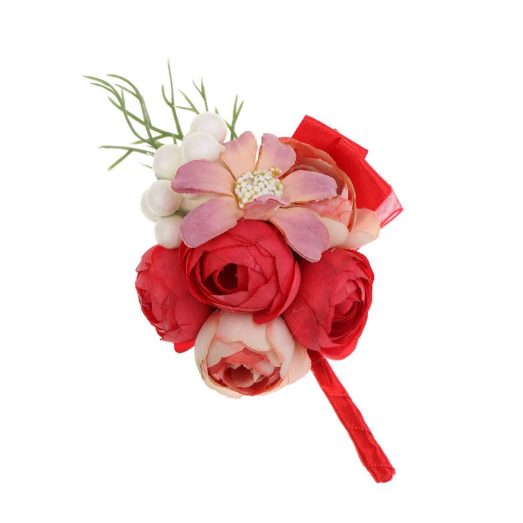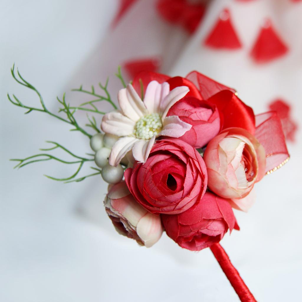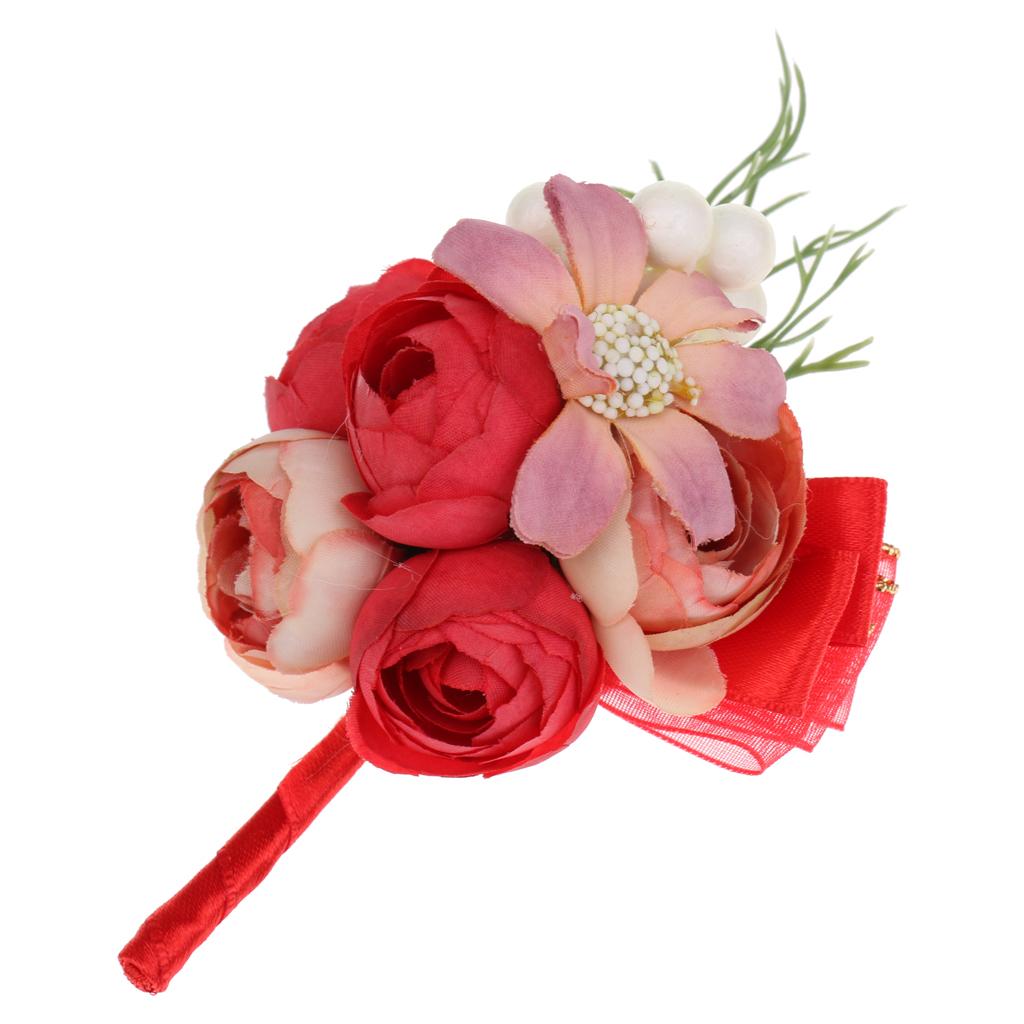 Wedding Groom Bride Boutonniere Corsage Flower Brooch Pin Ribbon Red