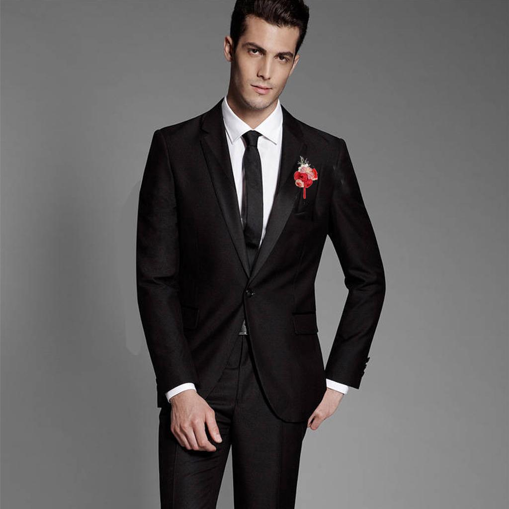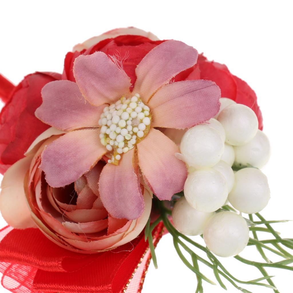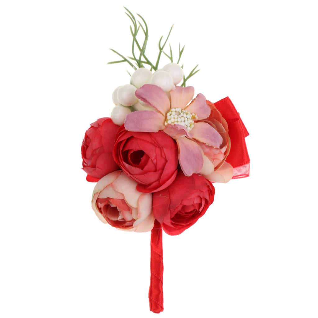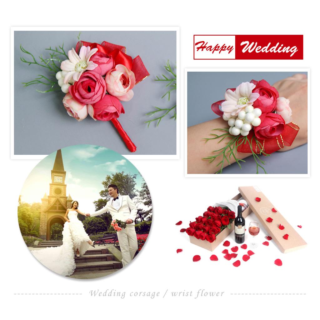 Wedding Groom Bride Boutonniere Corsage Flower Brooch Pin Ribbon Red