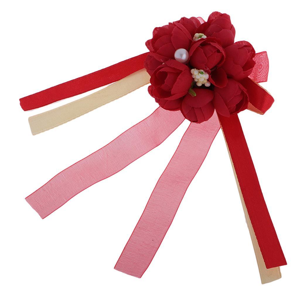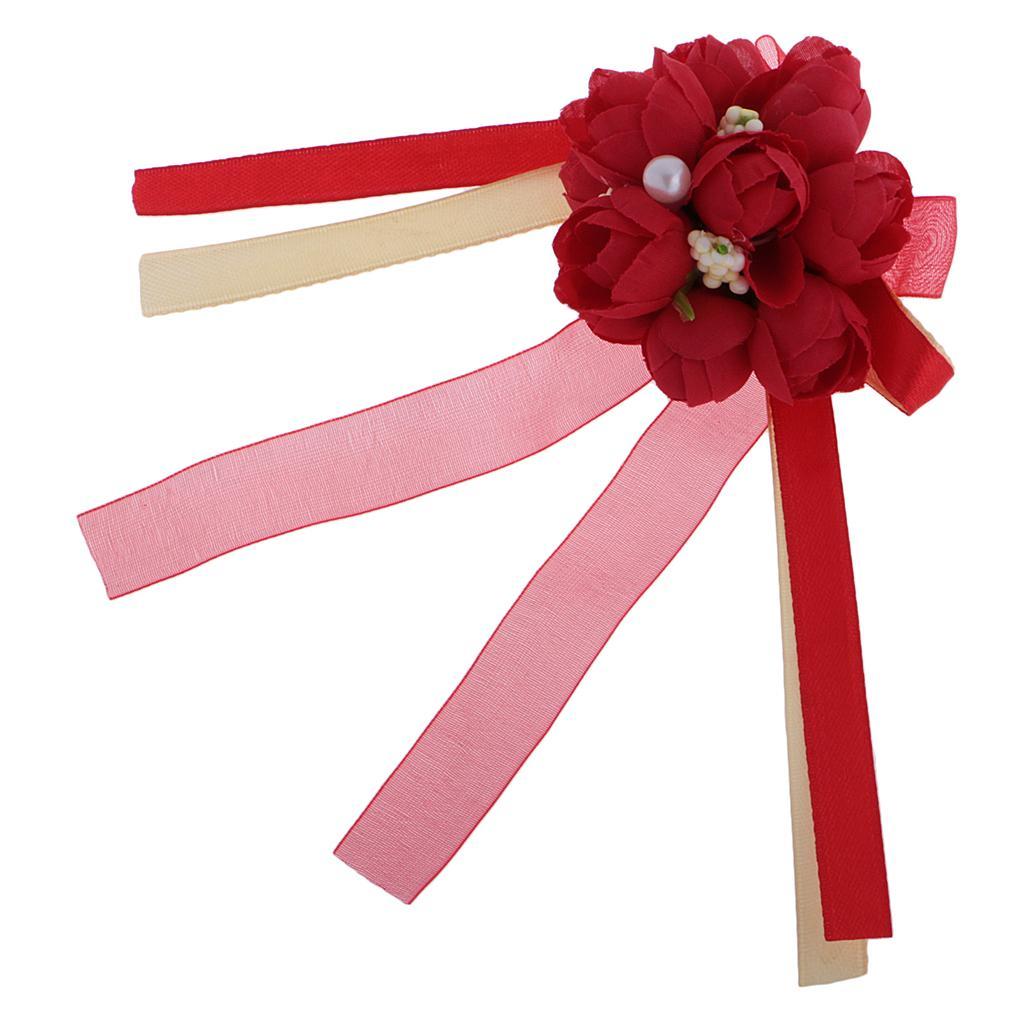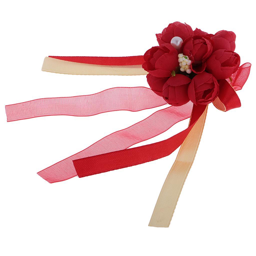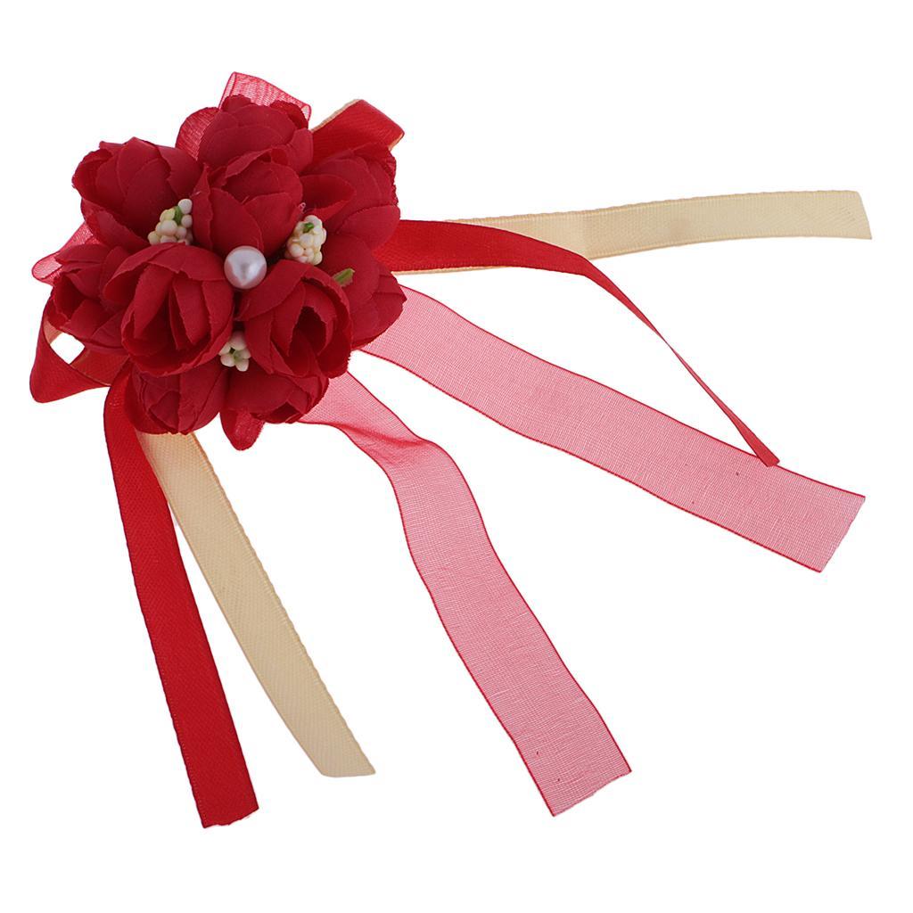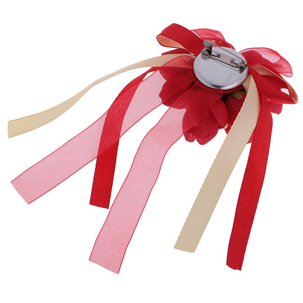 Wedding Groom Bride Boutonniere Corsage Flower Brooch Pin Ribbon Red