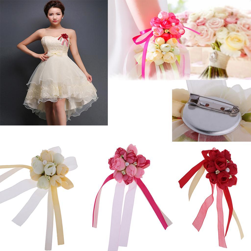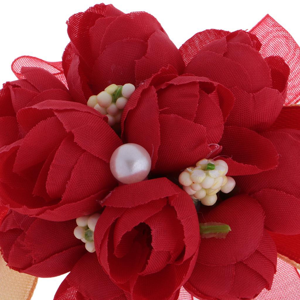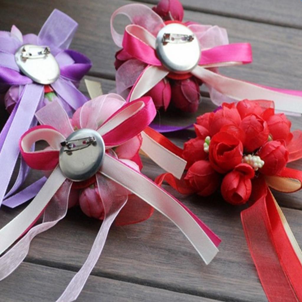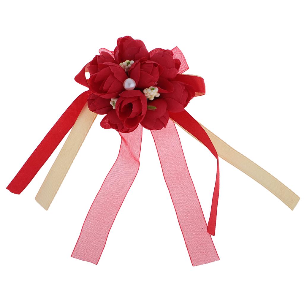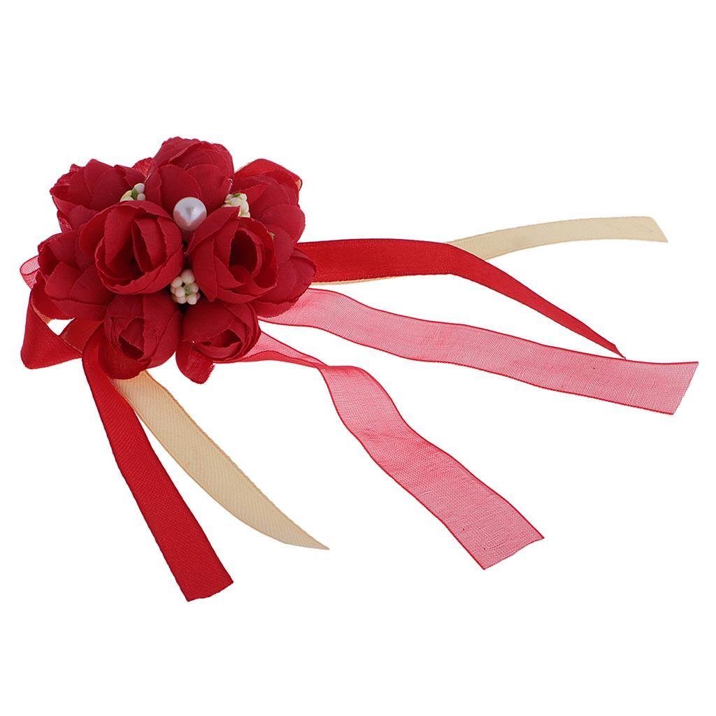 Wedding Groom Bride Boutonniere Corsage Flower Brooch Pin Ribbon Red