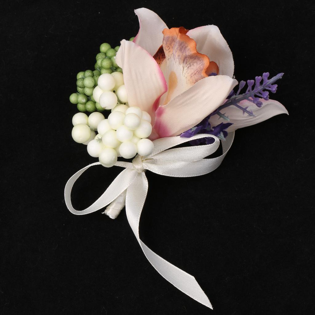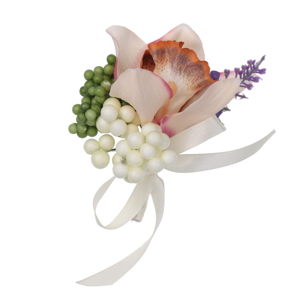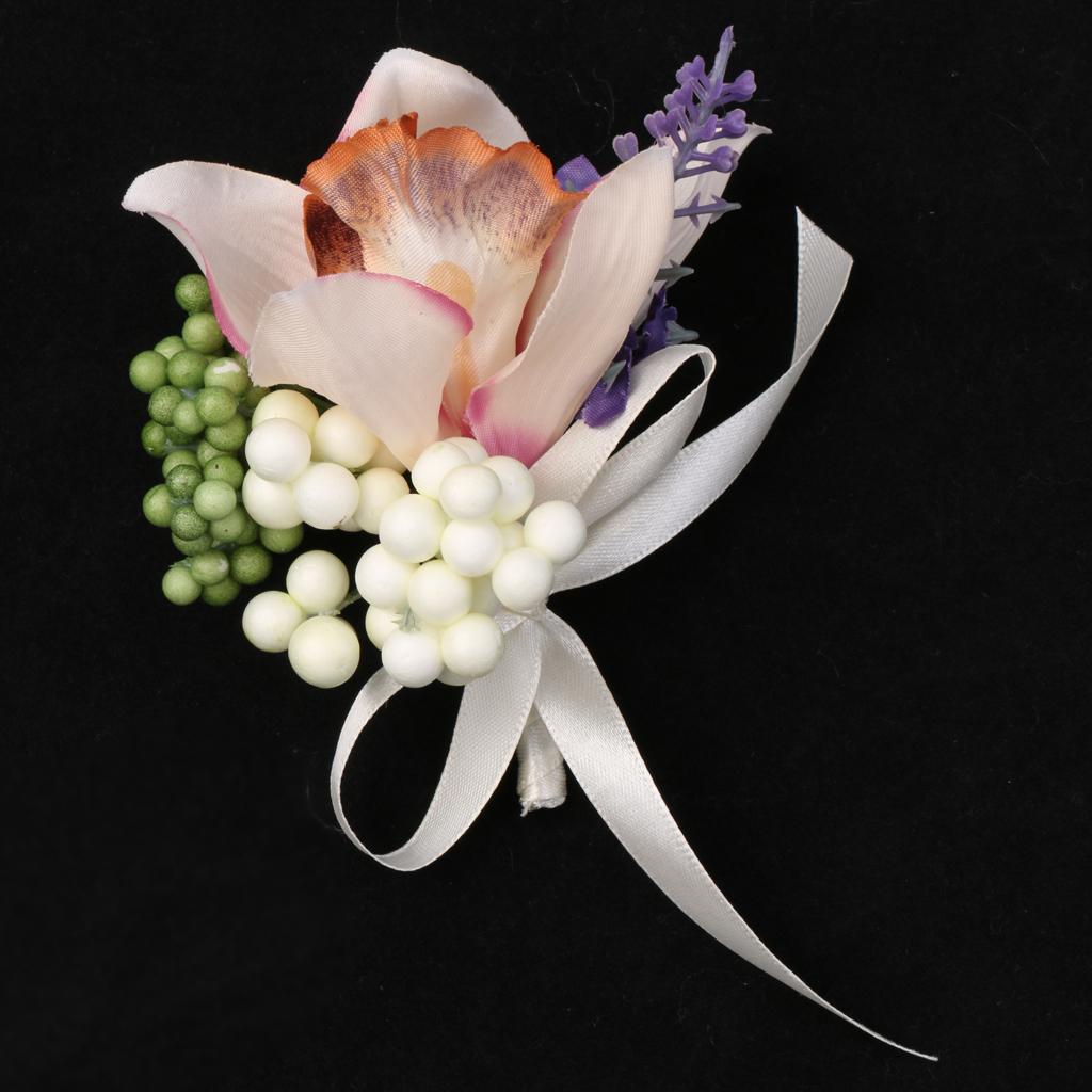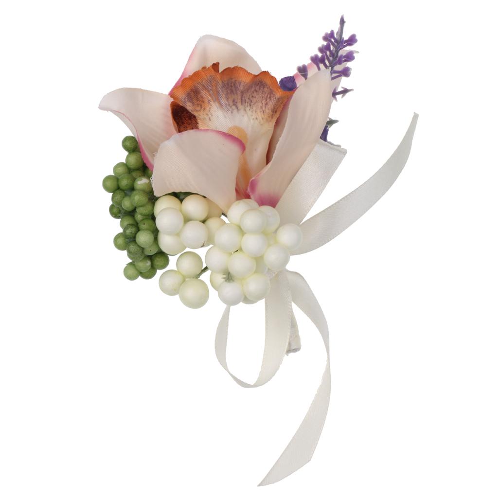 Wedding Groom Bride Bridesmaid Boutonniere Corsage Flower Wrist Flower Brooch Pin Ribbon Charms #8