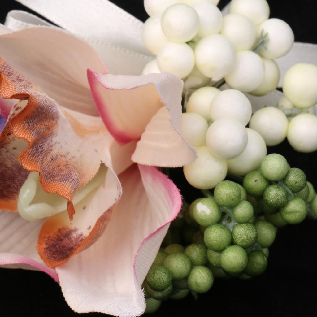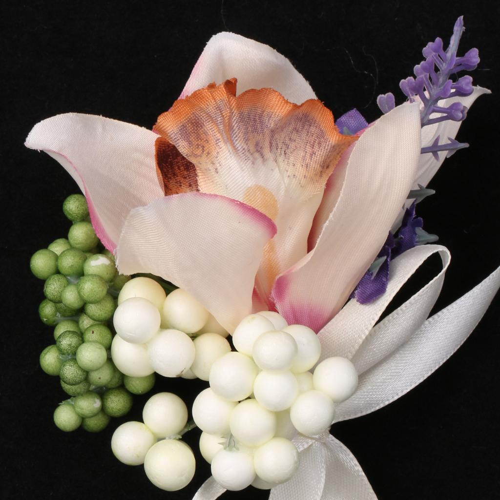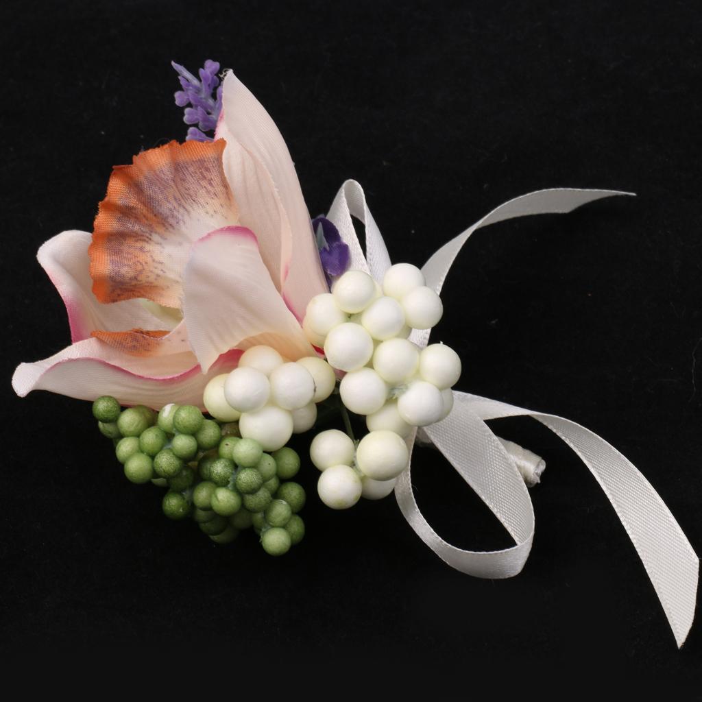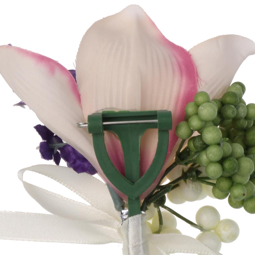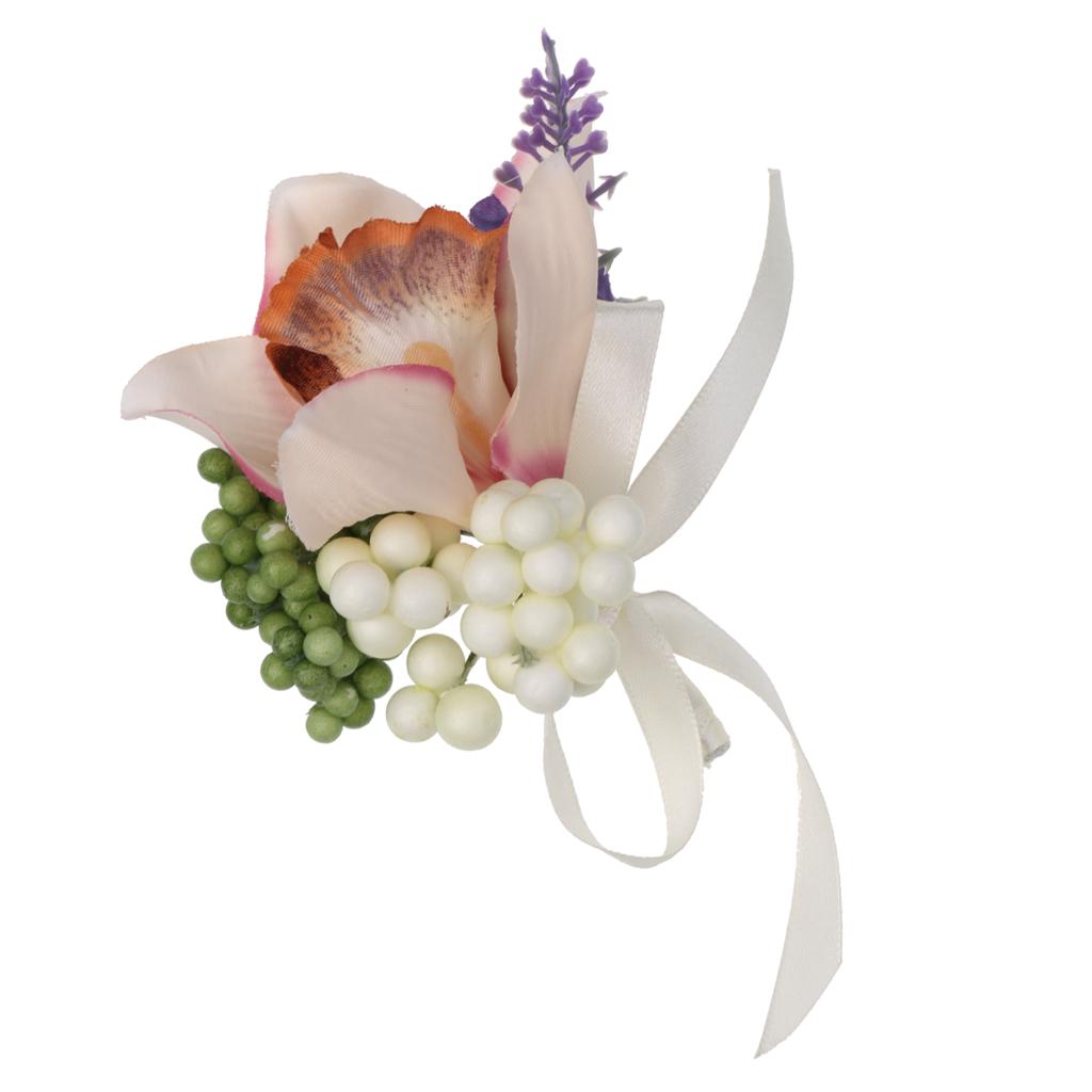 Wedding Groom Bride Bridesmaid Boutonniere Corsage Flower Wrist Flower Brooch Pin Ribbon Charms #8